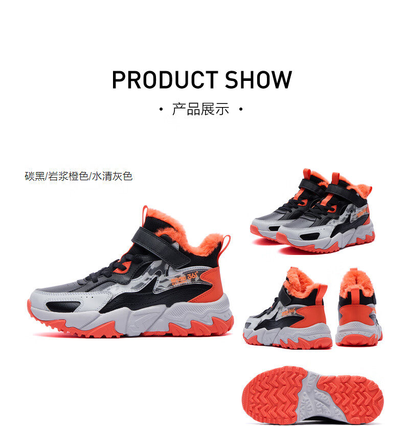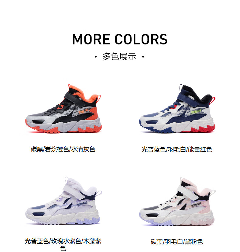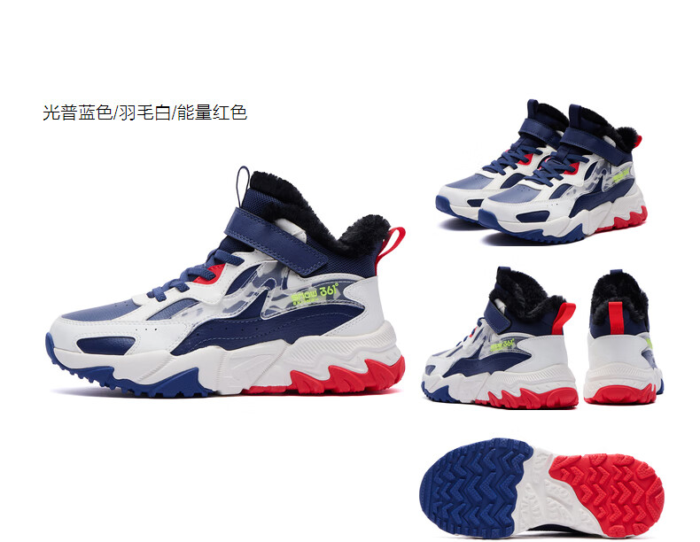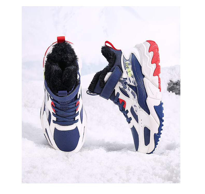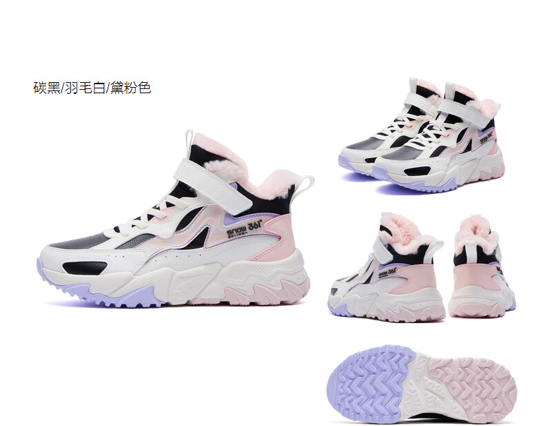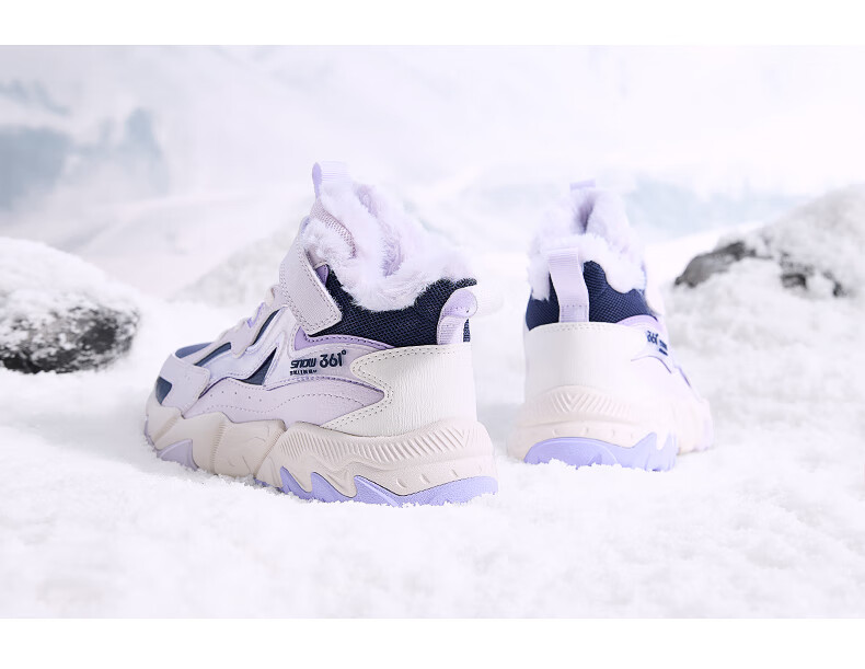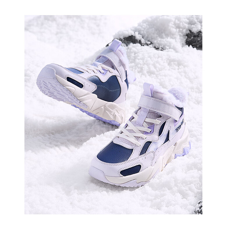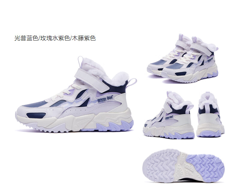 361°童鞋男童加绒保暖儿童棉鞋冬季新品中大童女童大棉鞋防滑冬鞋 光普蓝色/玫瑰水紫色/木藤紫色 33