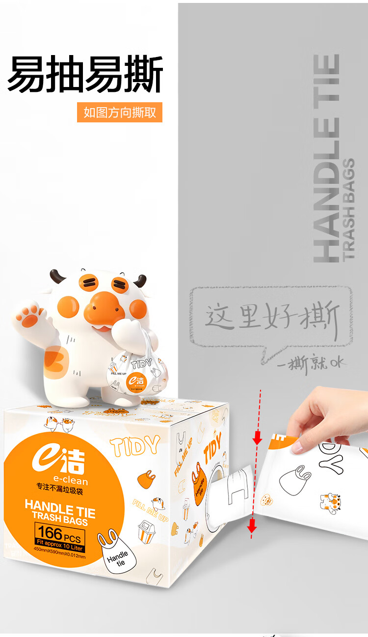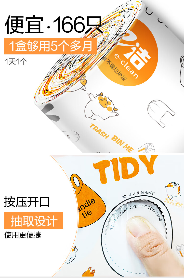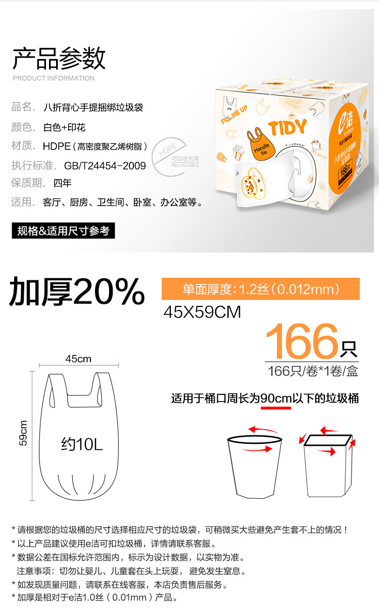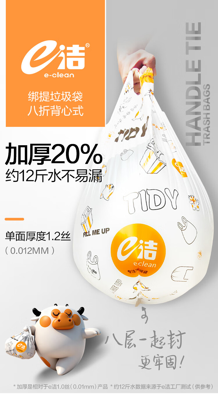 e洁 一次性方便袋卫生垃圾袋加厚家用酒店塑料袋 共208只 45x59cm背心垃圾袋108只【+100只保鲜】