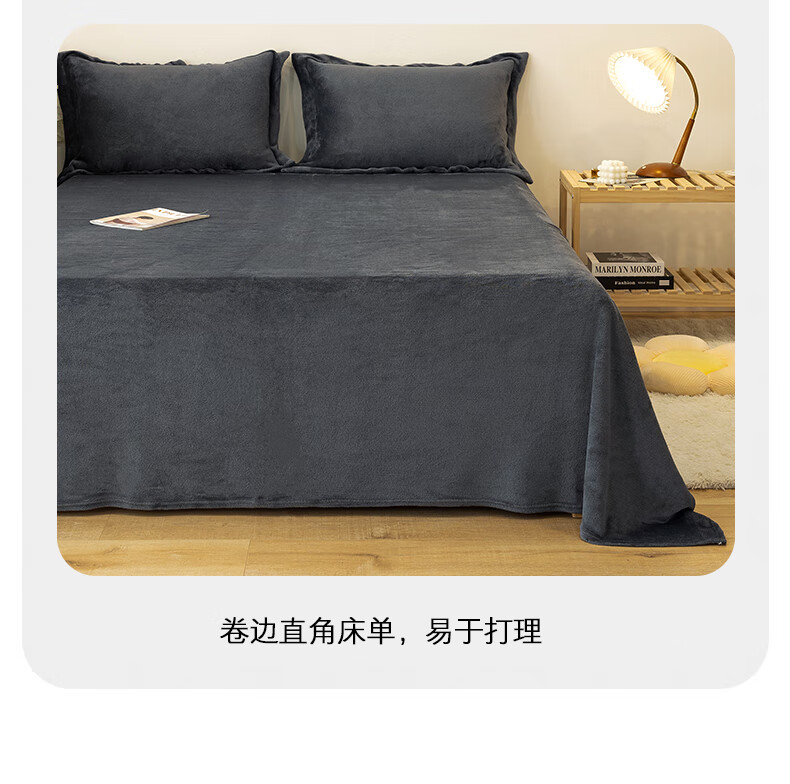 匹鲁简约风奶酥绒床笠A类可水洗机洗加厚加绒保暖床单 蔚蓝色(仅床笠) 120*200cm