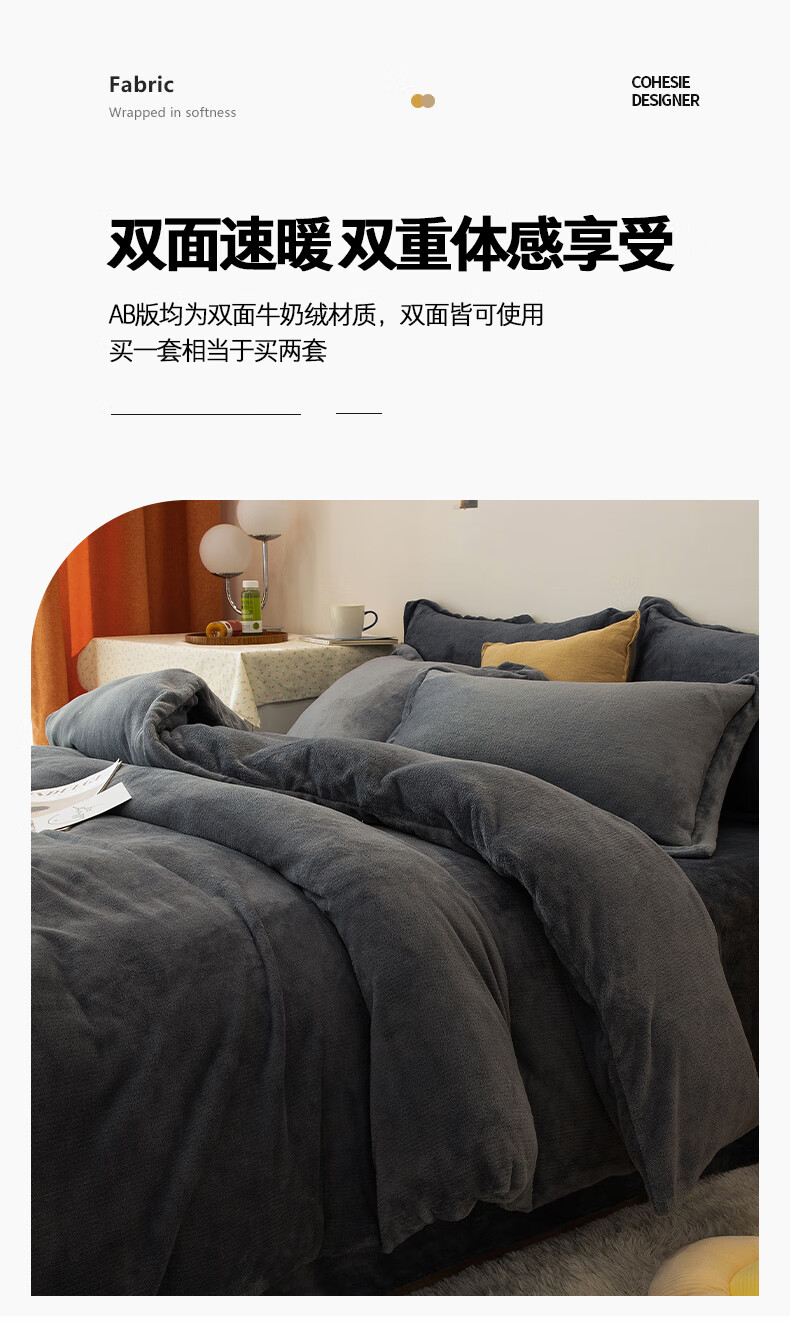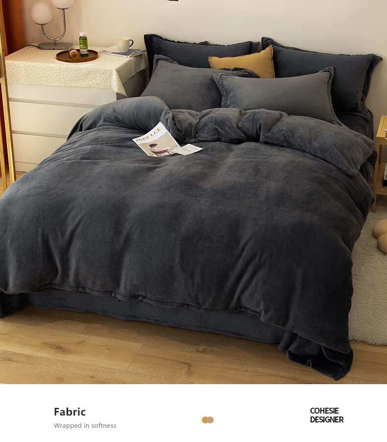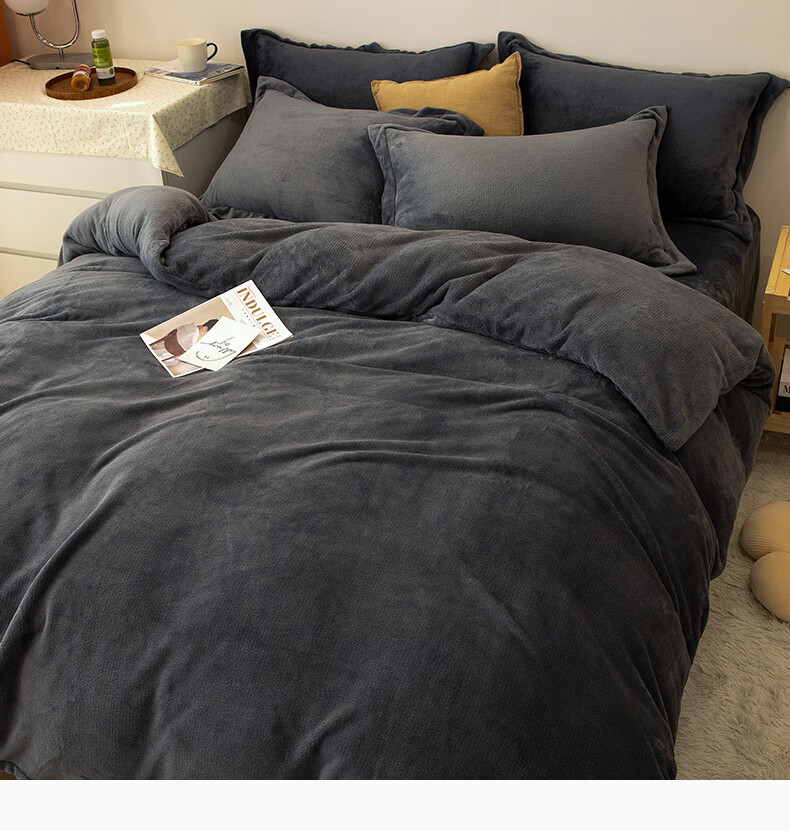 一默四件套冬季牛奶绒被套床单枕套加厚双人保暖圣诞礼物姜饼人四件套 姜饼人 床单款 (被套200*230cm) 四件套