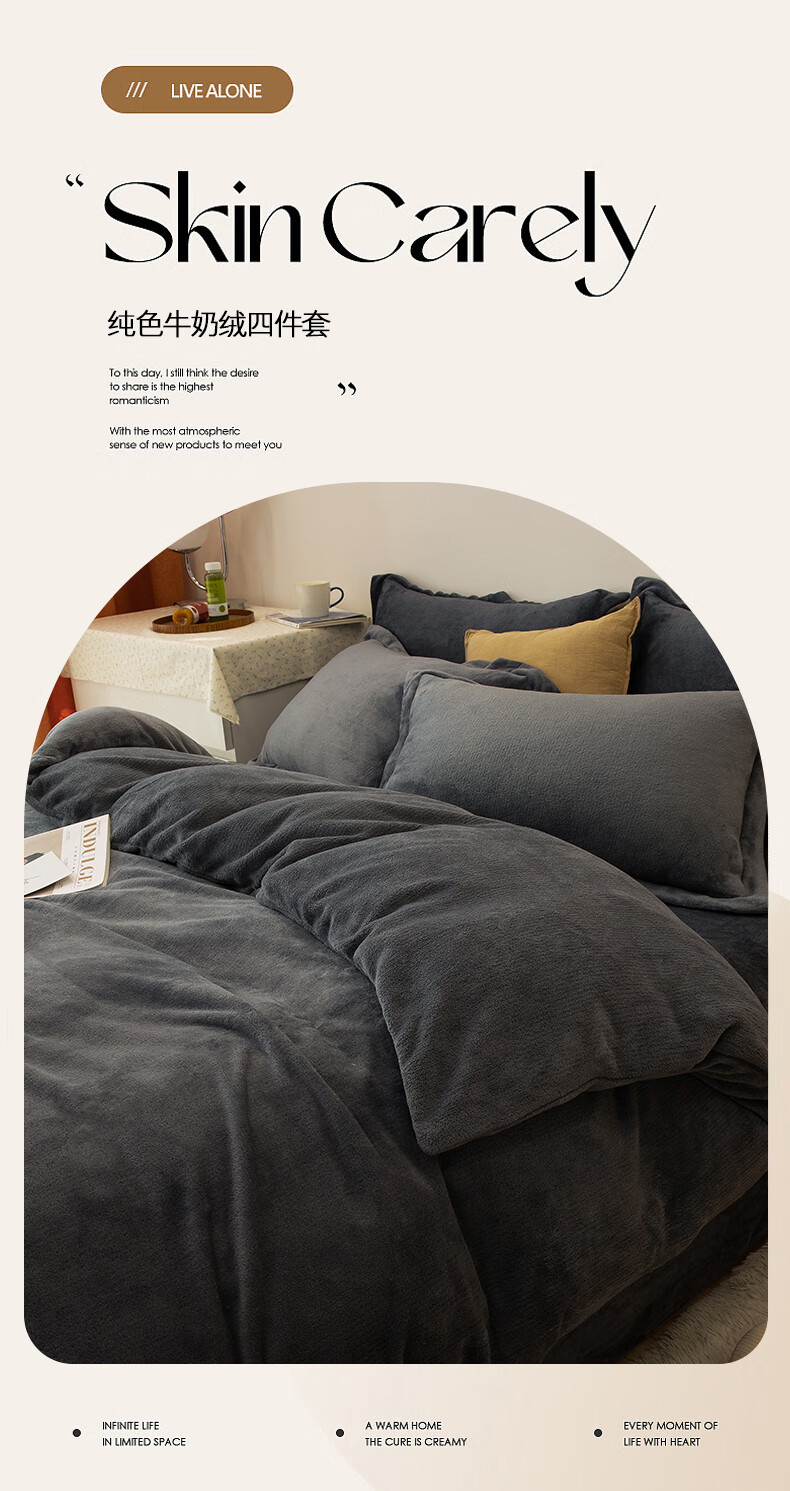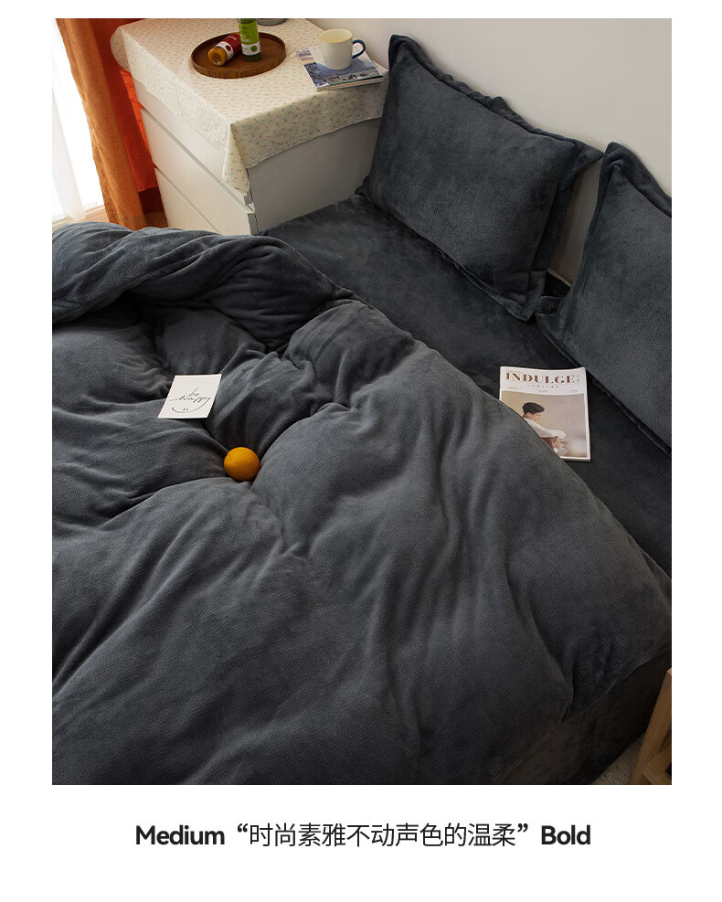 猫人(MiiOW)冬季纯色牛奶绒四件套简约加绒床单被套罩三件套加厚秋冬宿舍床品 浅粉【柔软亲肤】 1.8m 床笠款 四件套-200x230cm被套