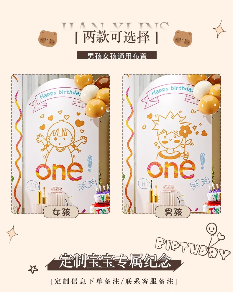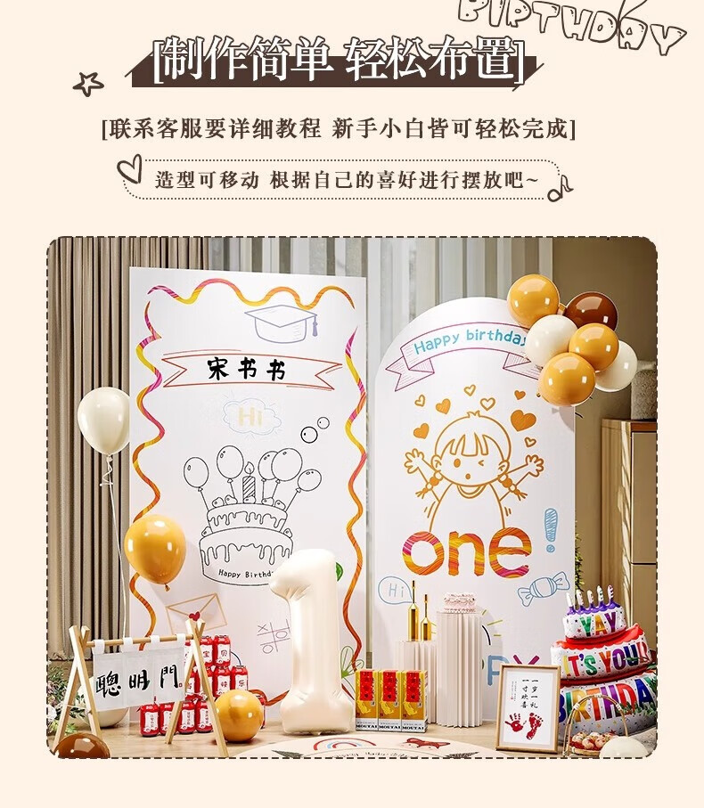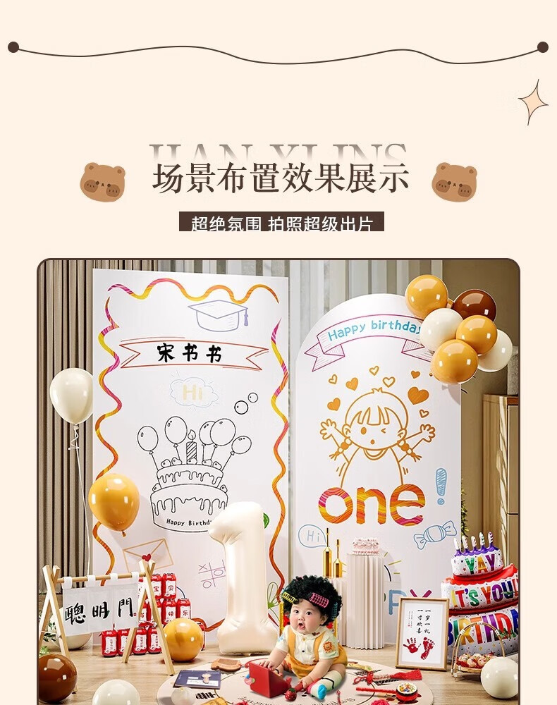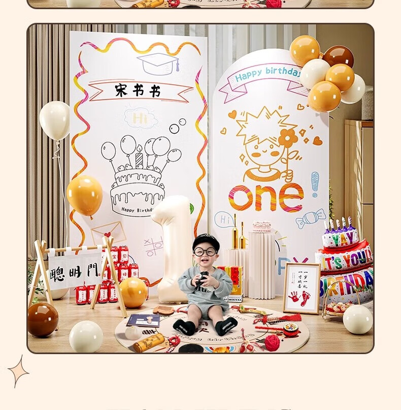 抓周ins风1周岁生日场景布置装饰韩系风女孩氛围感宝宝抓周kt板背景墙 ins男宝生日周岁礼单板