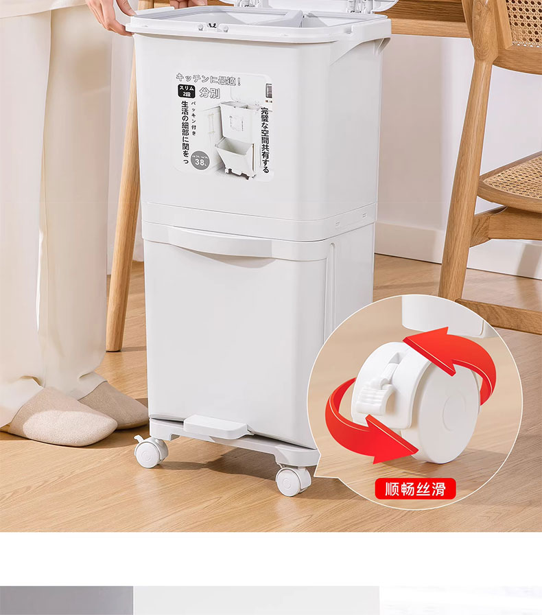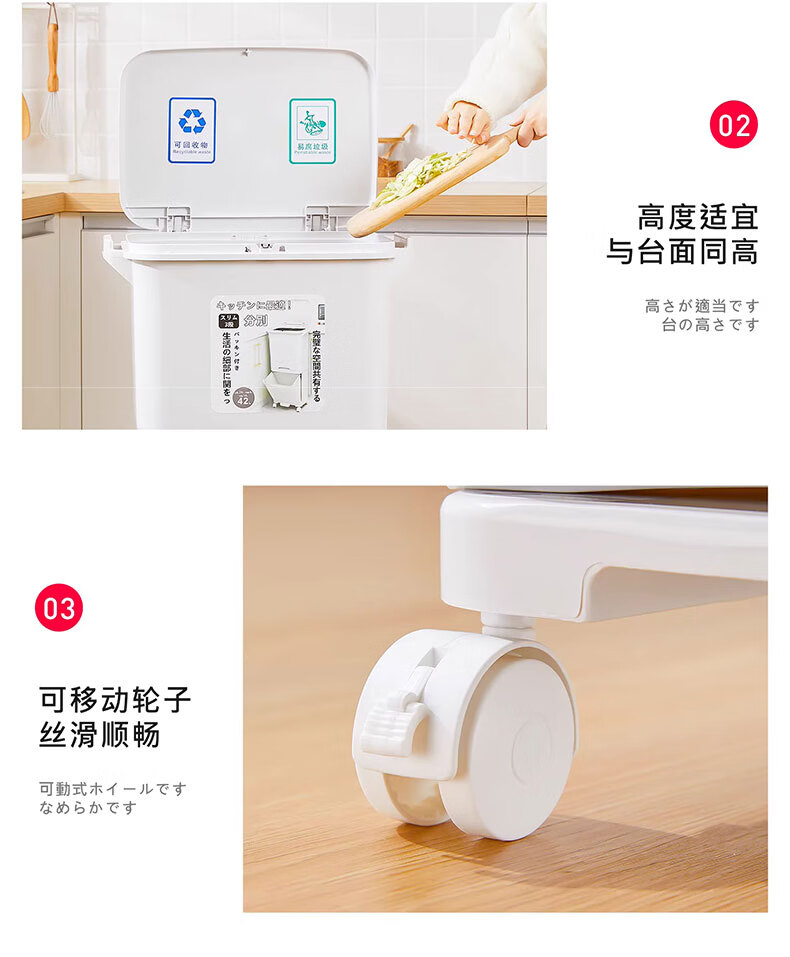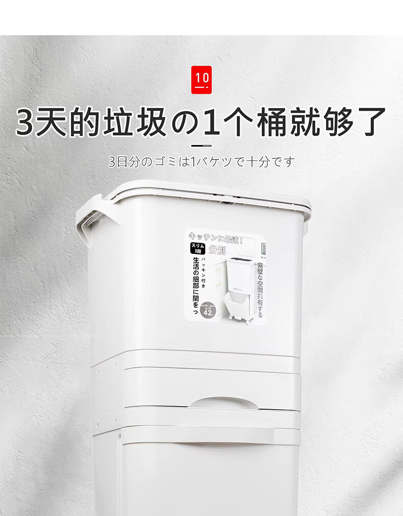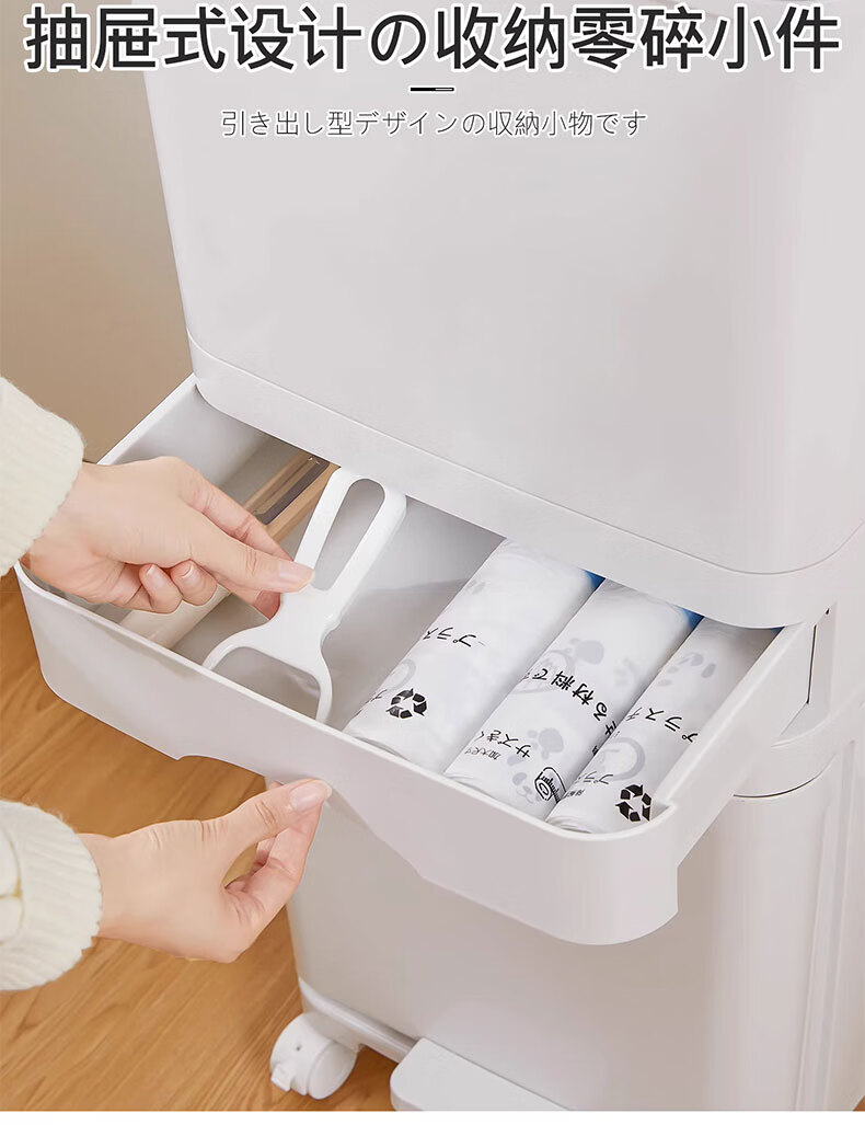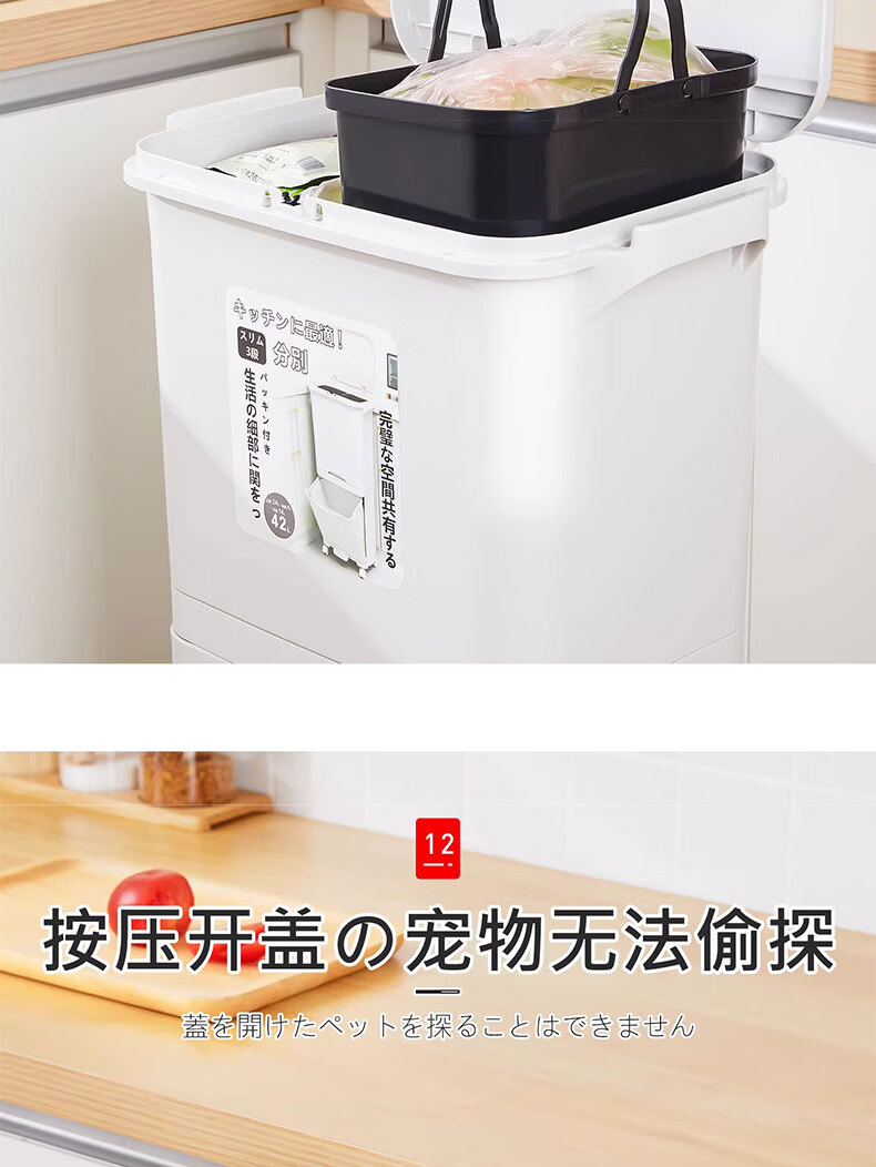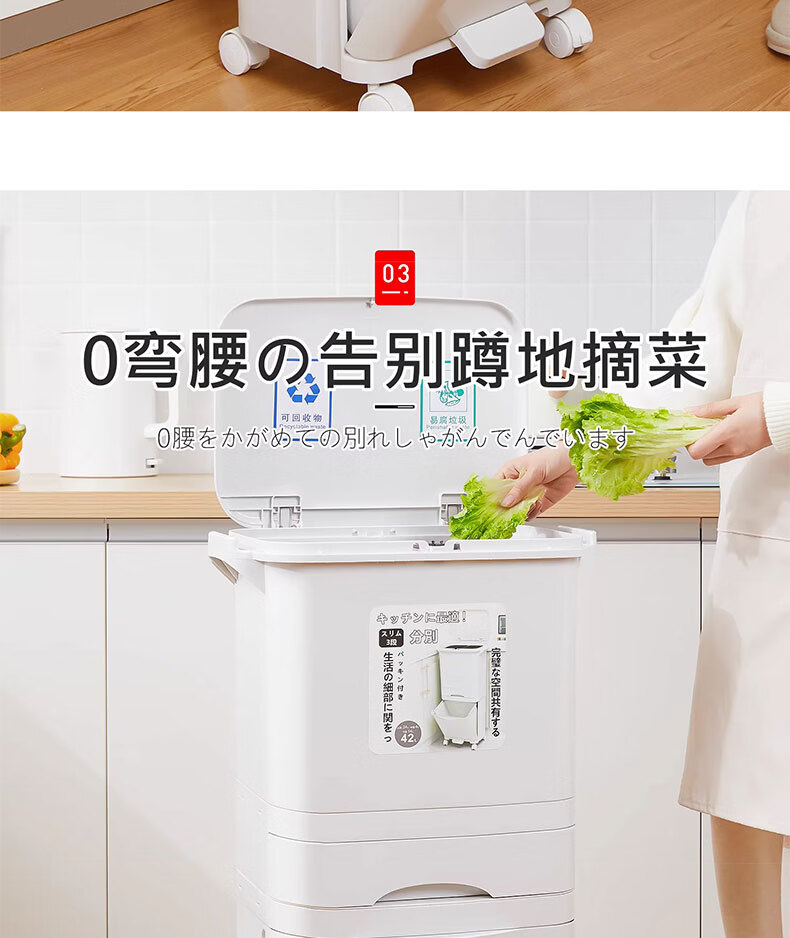 吱凡日本收纳厨房垃圾桶家用收纳专用2025新款加高可移动免弯腰 42L【三层-单盖-双内桶】+120只垃圾袋