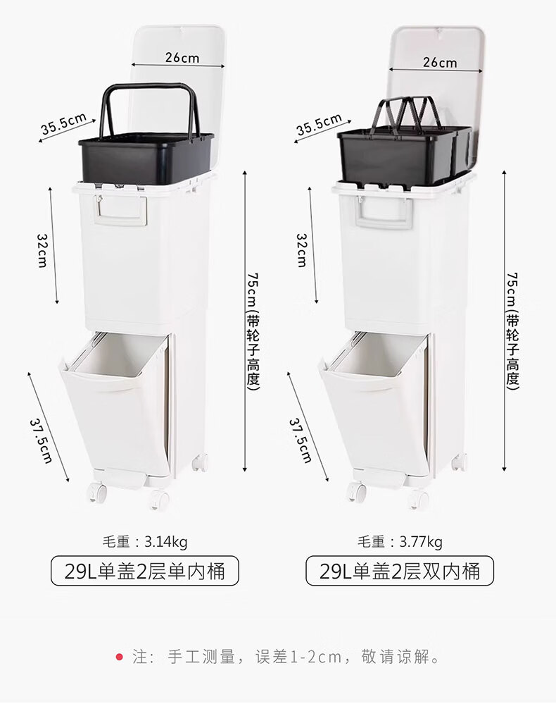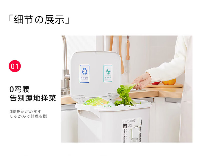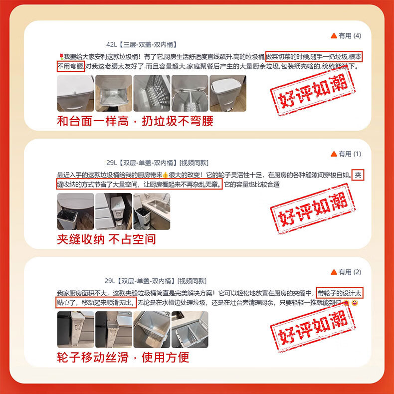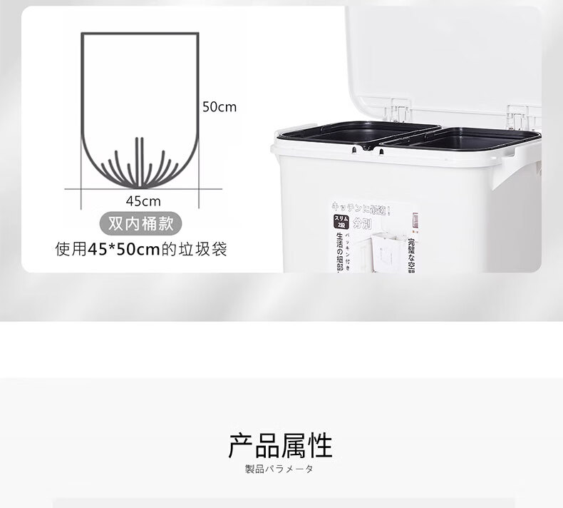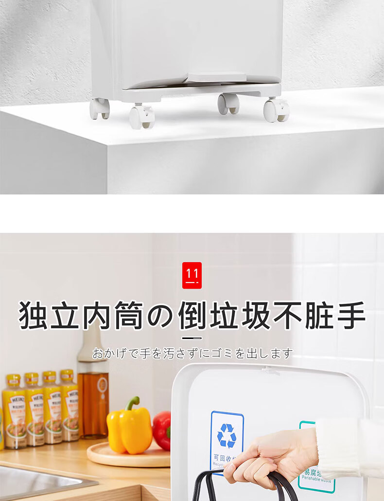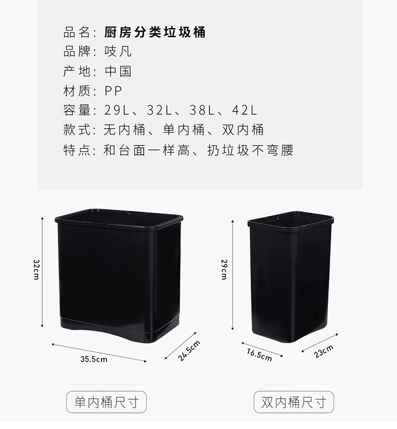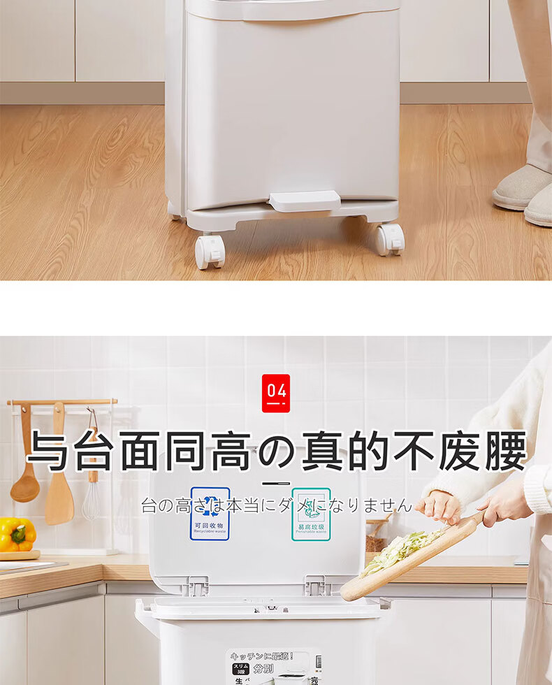 吱凡日本收纳厨房垃圾桶家用收纳专用2025新款加高可移动免弯腰 42L【三层-单盖-双内桶】+120只垃圾袋