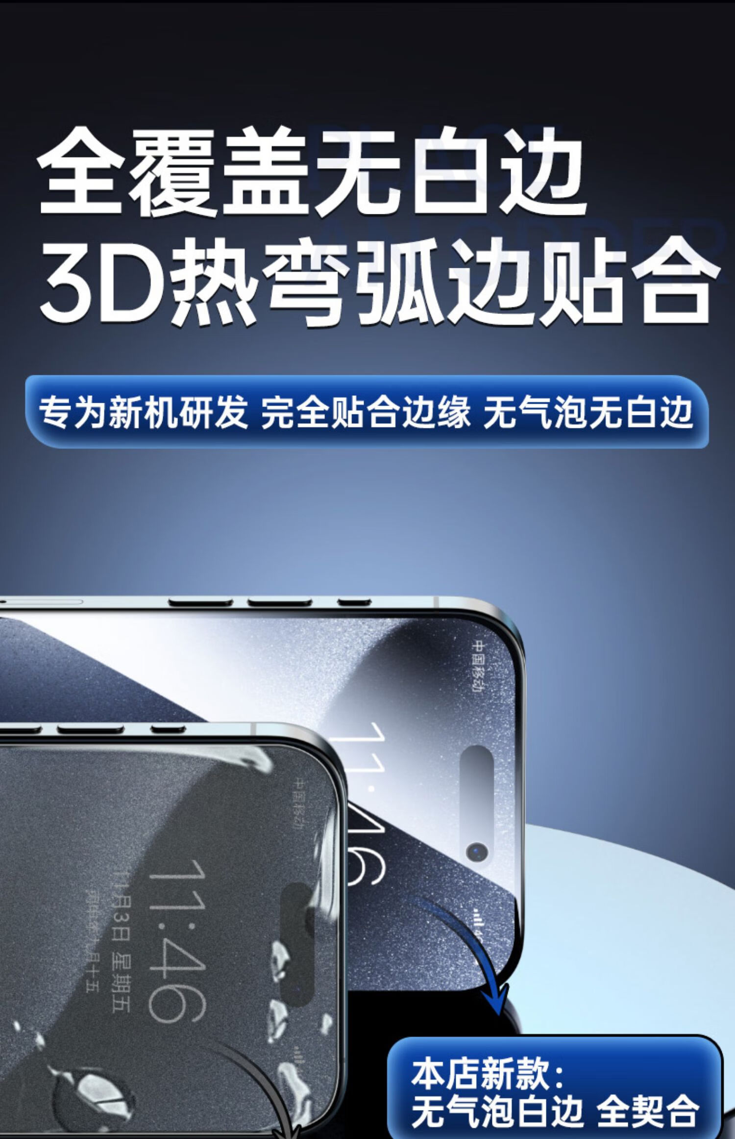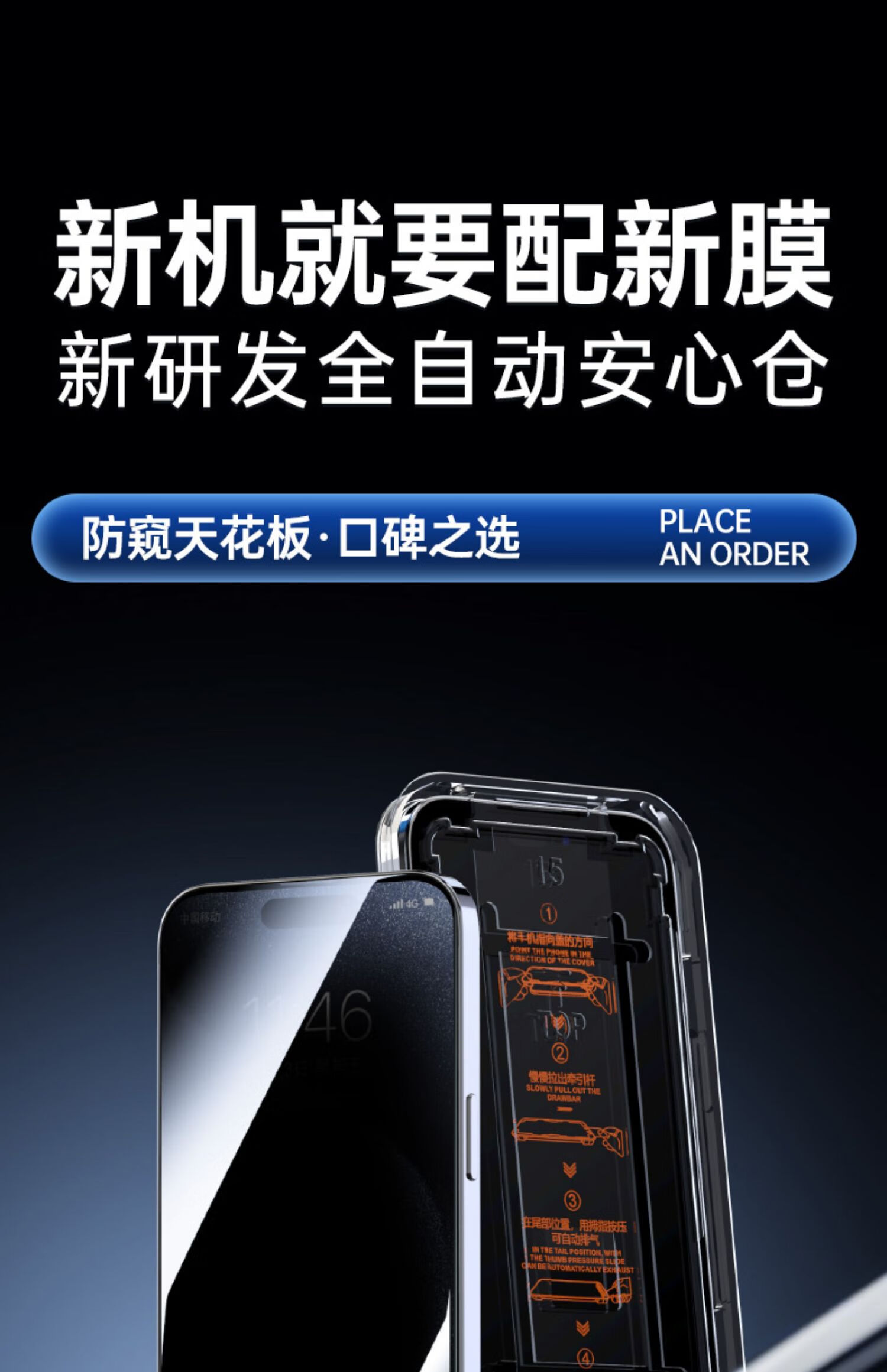 Smorss【贴坏包赔】适用苹果iPhone15pro防窥钢化膜手机膜无尘舱秒贴高清防偷窥电镀抗指纹全屏保护膜