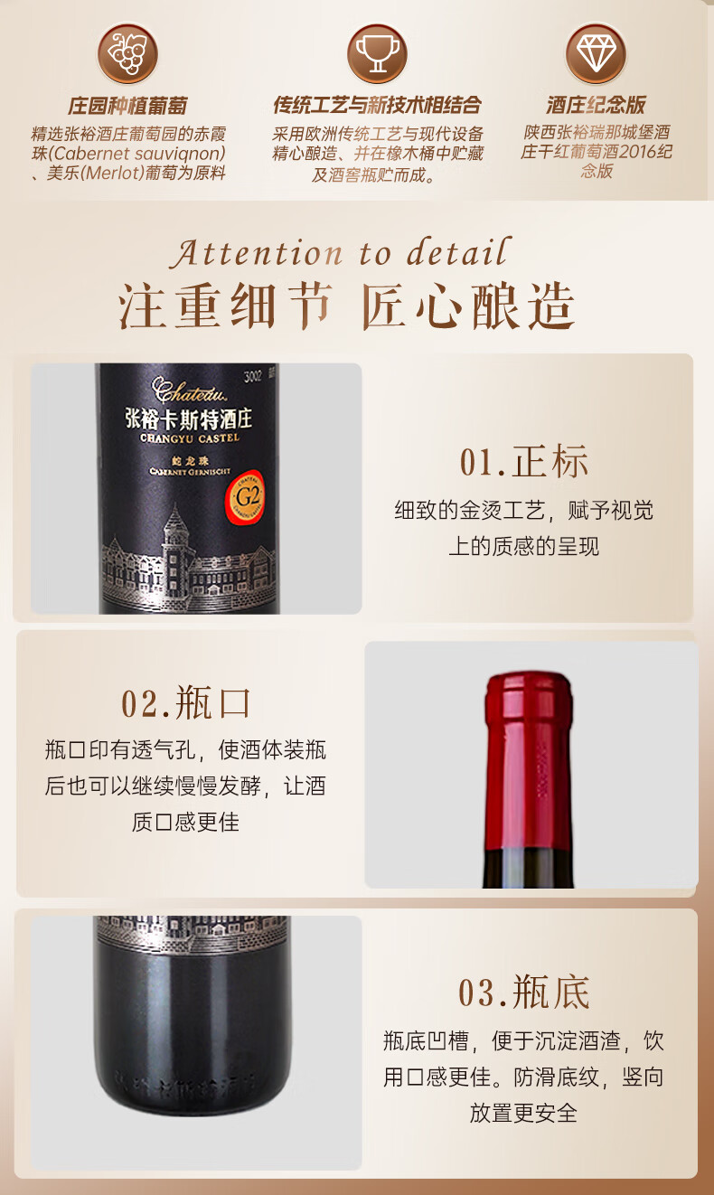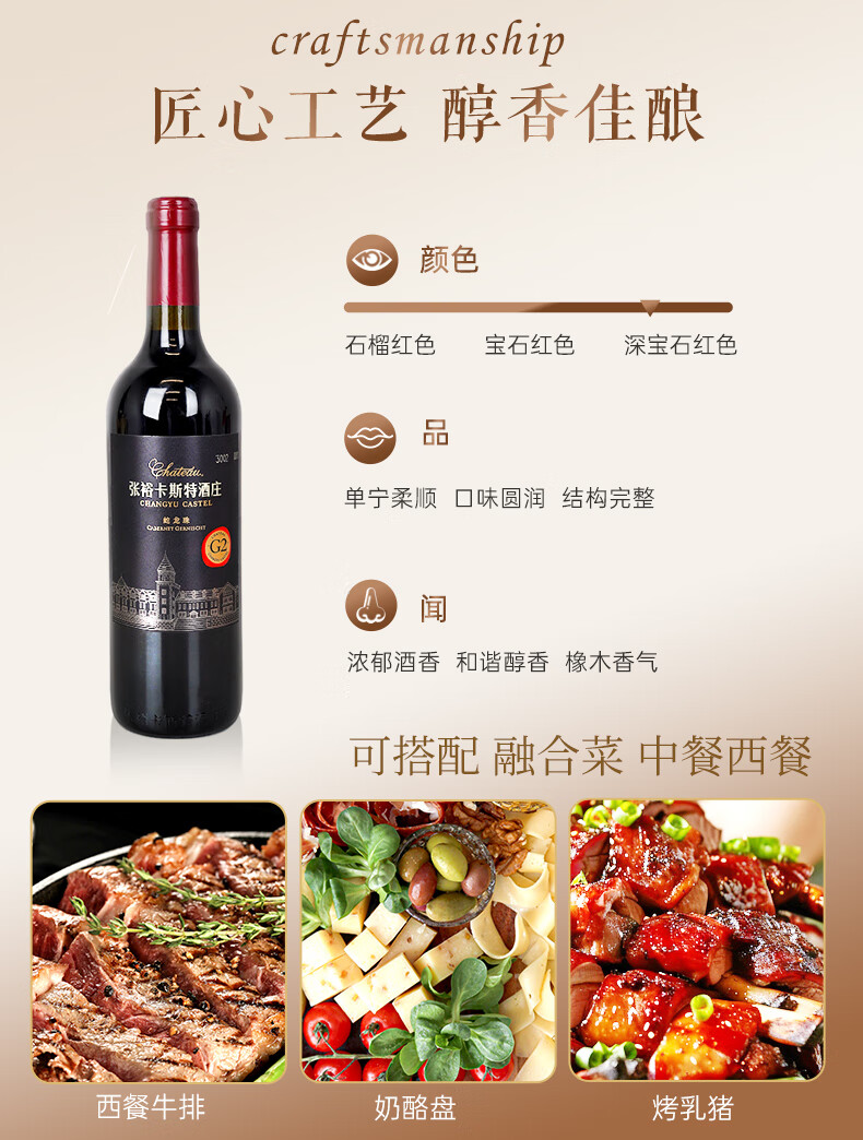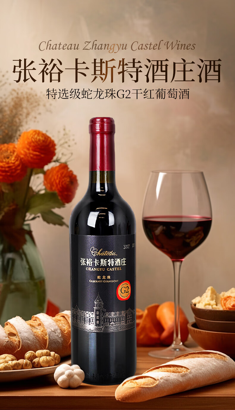张裕卡斯特酒庄G2特选蛇龙珠干红葡萄酒单瓶红酒精致礼盒中秋礼品自饮