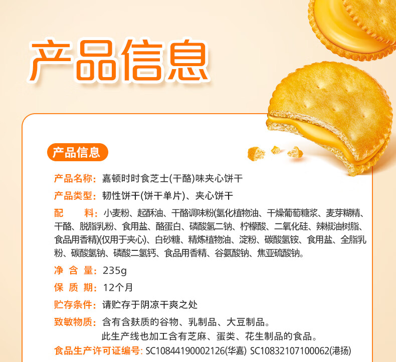 嘉顿(Garden)芝士味夹心饼干235g 5包独立小包早餐休闲零食办公室下午茶点心