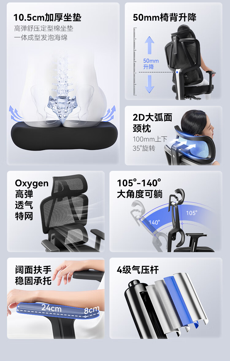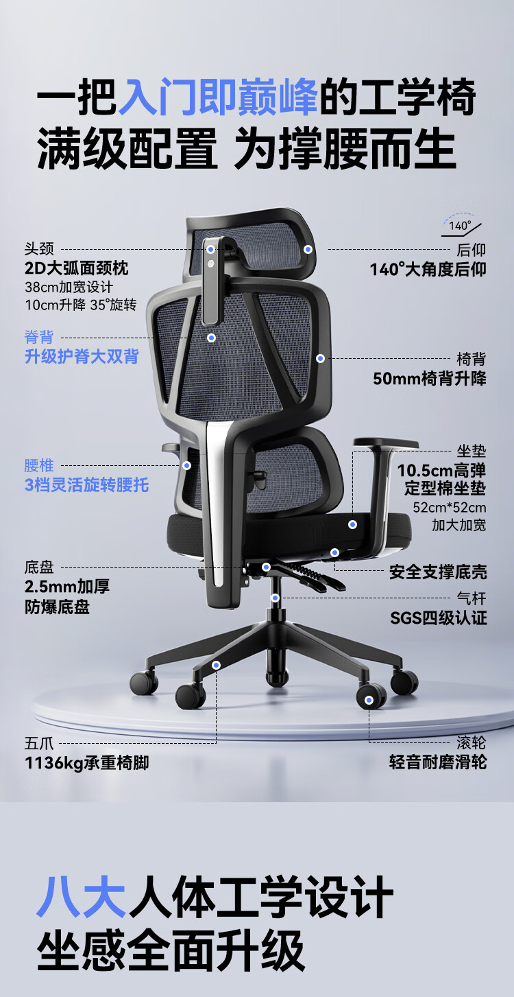 Totguard E1Pro人体工学椅办公电脑椅电竞成人椅 6向机械扶手5维悬浮撑腰