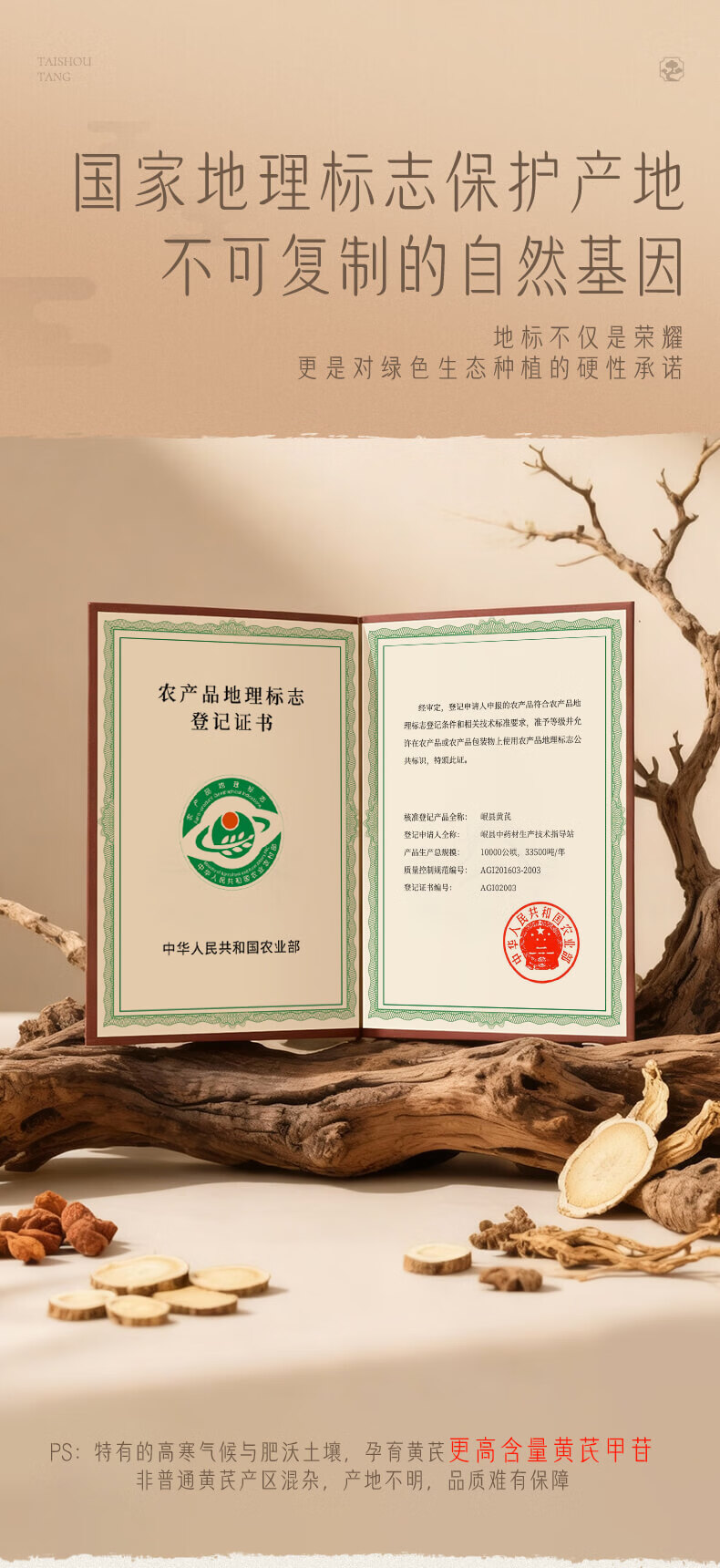太守堂 精选黄芪片250克(0.6-0.8cm) 岷县地标北芪中药材当归枸杞泡水