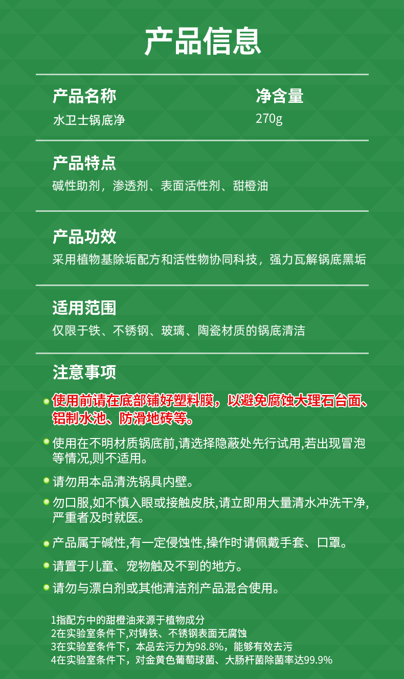水卫士锅底净270g*2 不锈钢清洁剂锅底除垢神器厨房清洁膏强力去污540g
