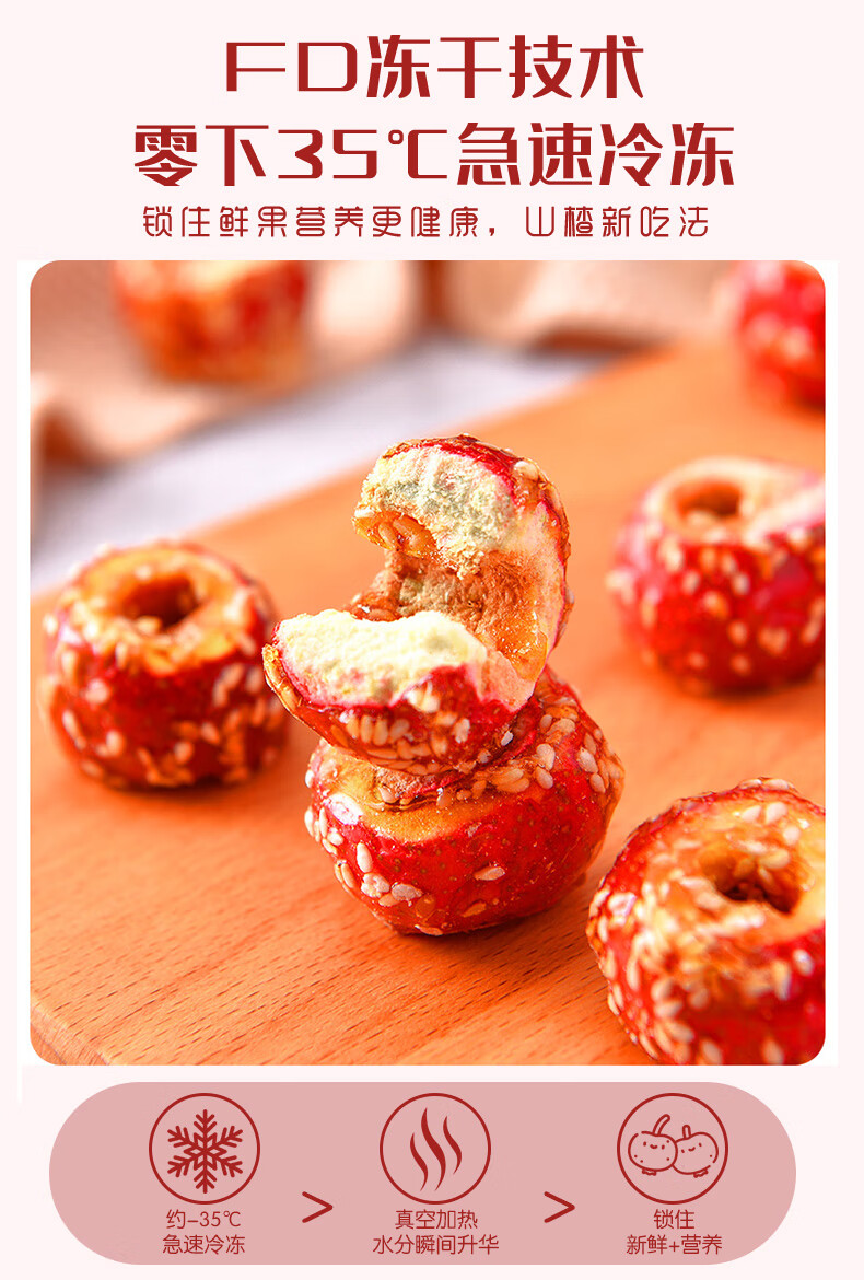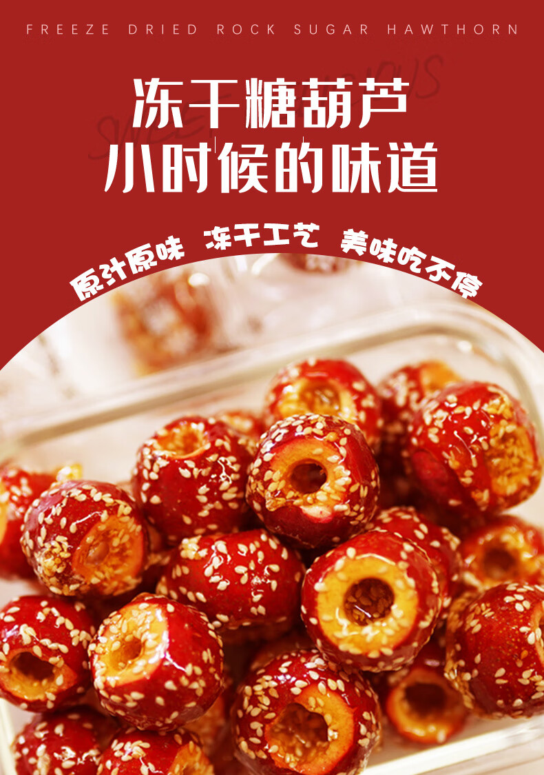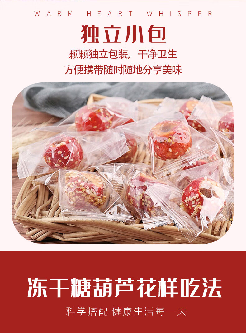 麦兮牧牧冻干山楂冰糖葫芦老北京特产空心山楂球儿童零食独立小包年货500g