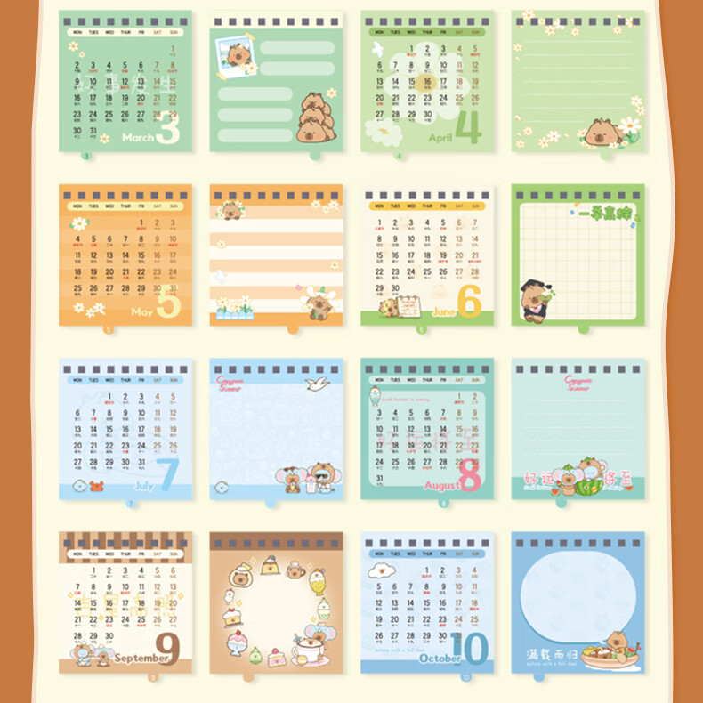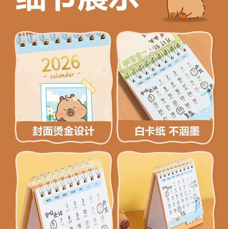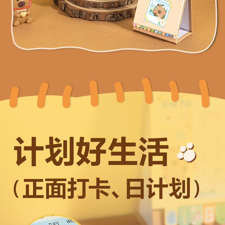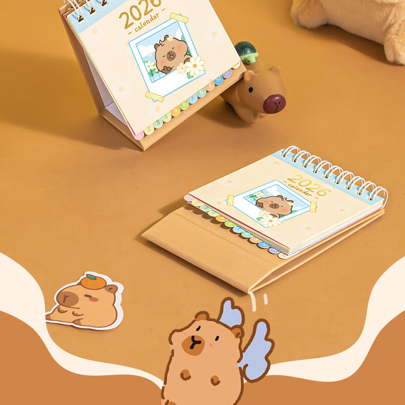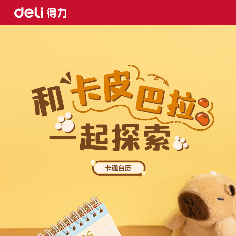 得力(deli)卡皮巴拉日历生活常用日历台历小号迷你款棕色BL216