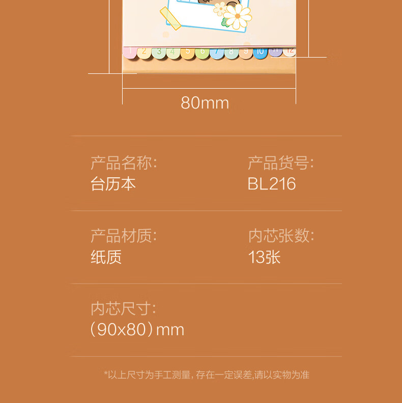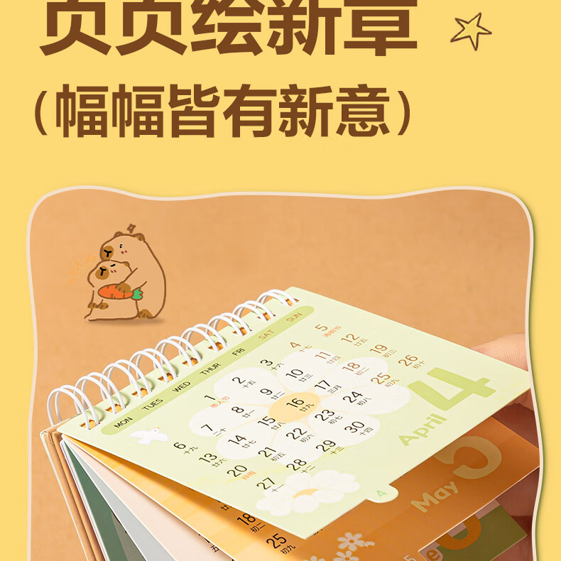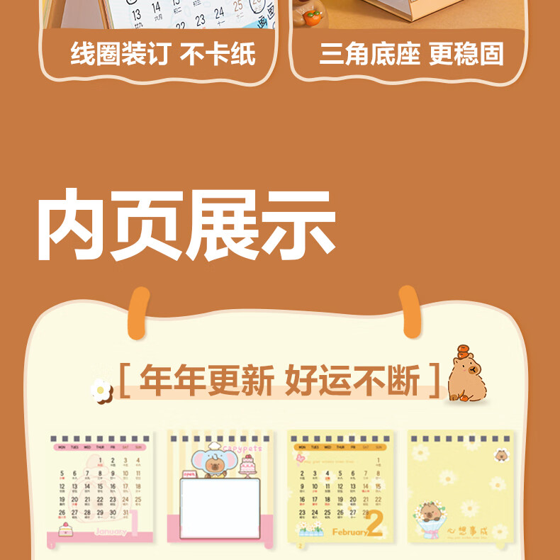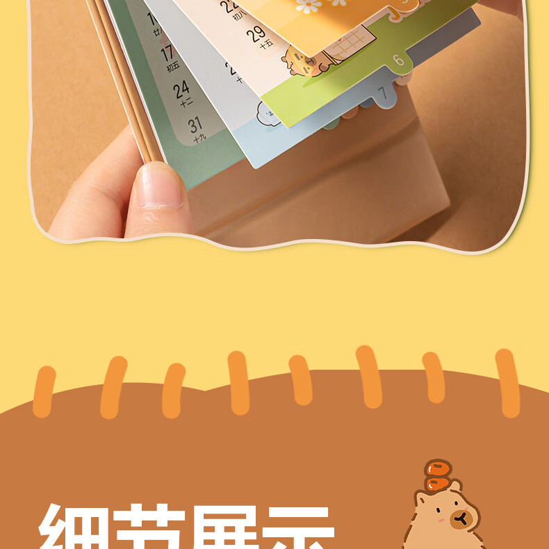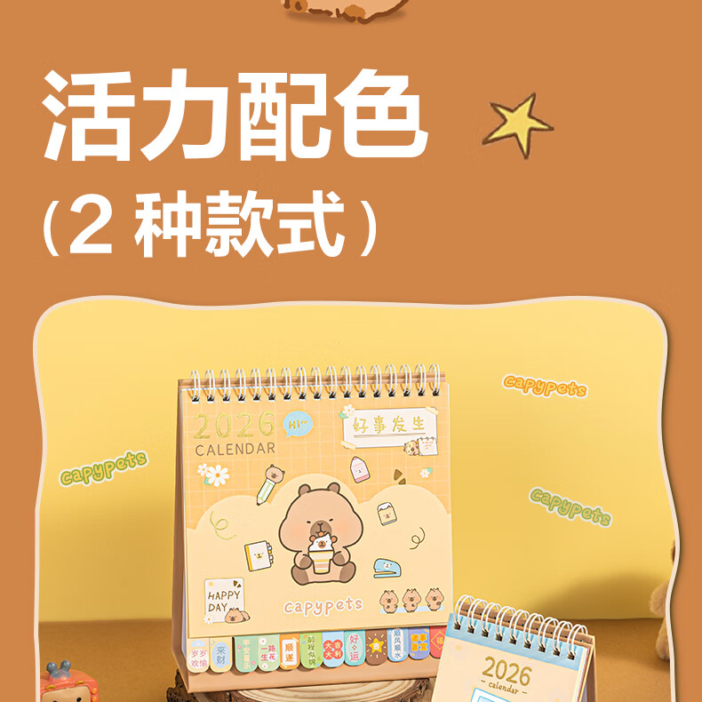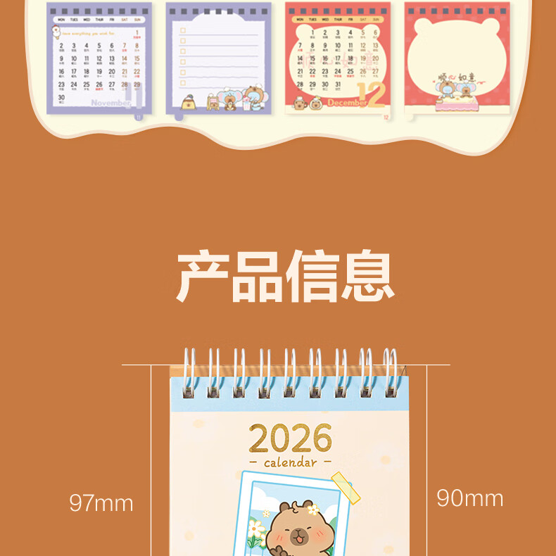 得力(deli)卡皮巴拉日历生活常用日历台历小号迷你款棕色BL216