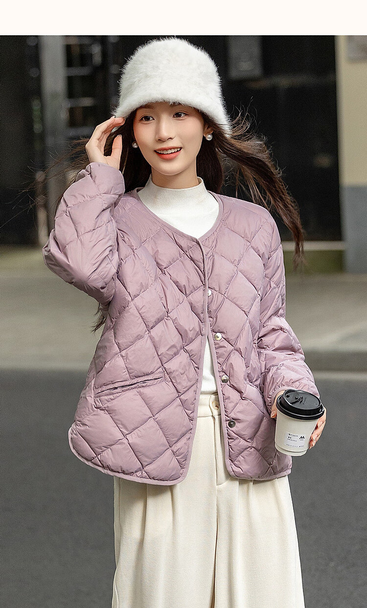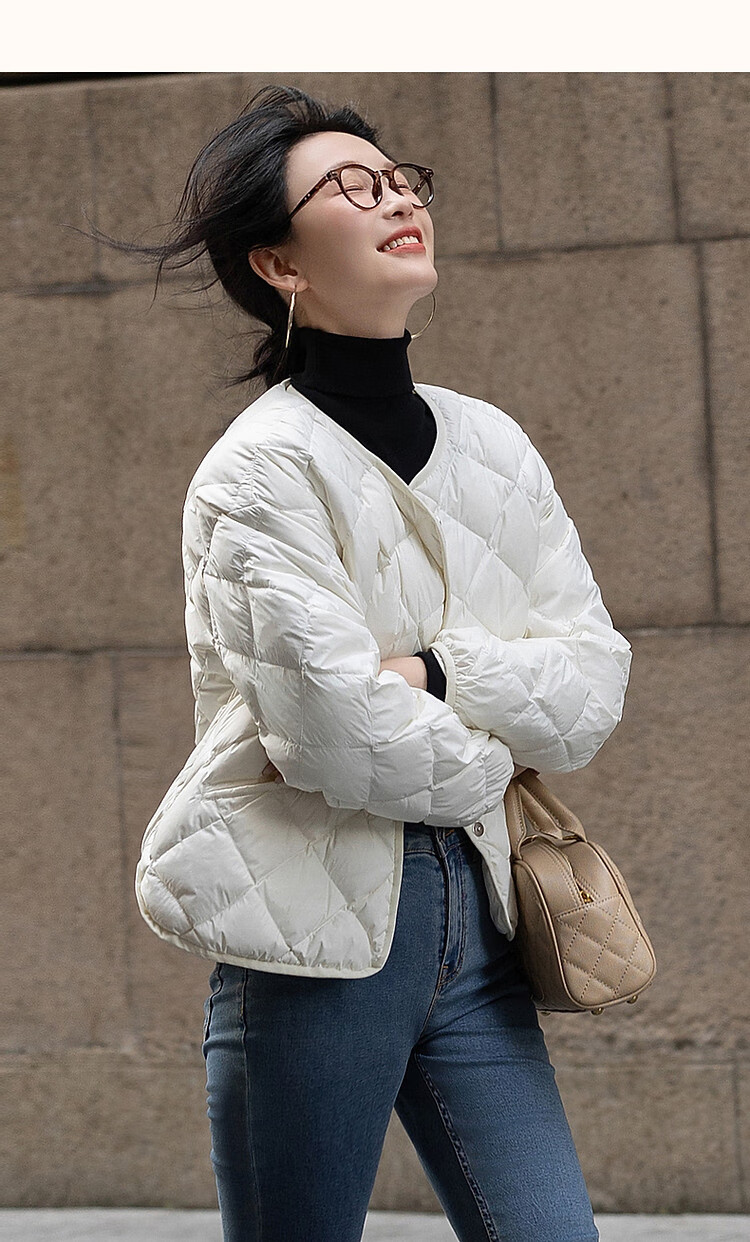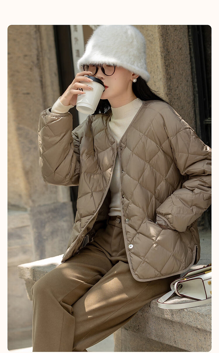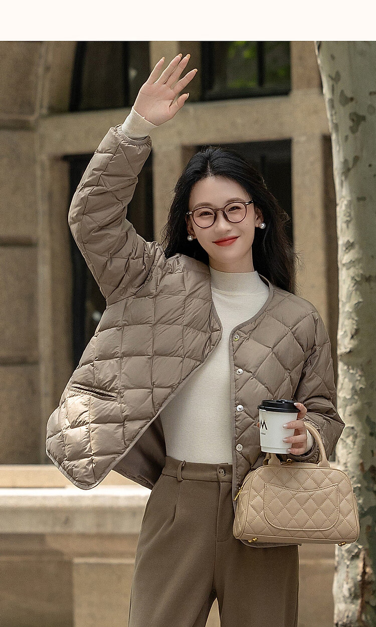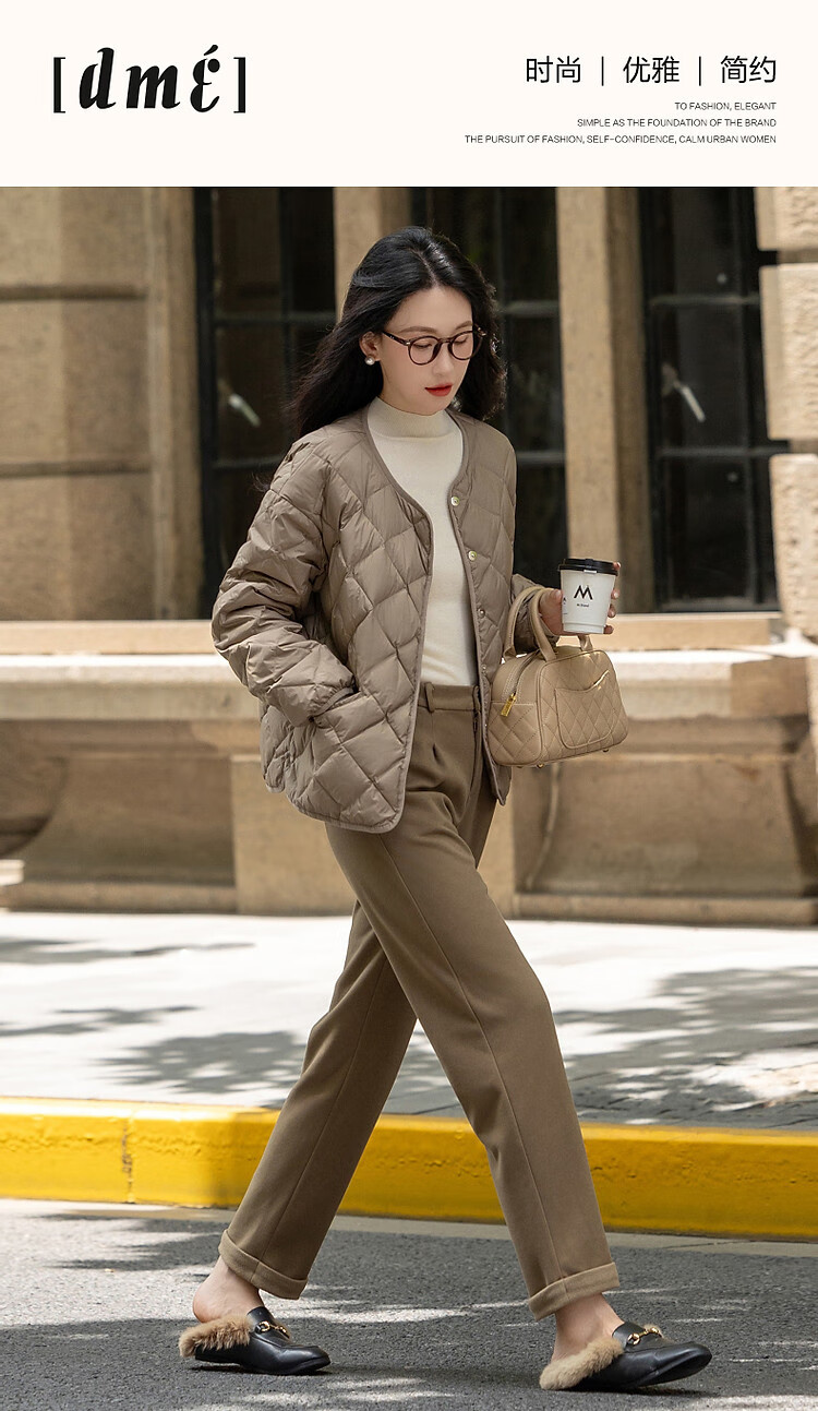 德玛纳【轻量高保暖】冬季轻奢90鸭绒圆领长袖小蛮腰藏肉女式羽绒服