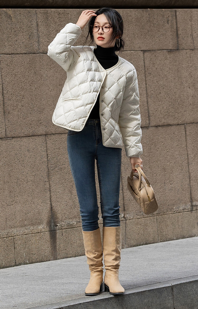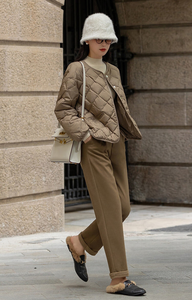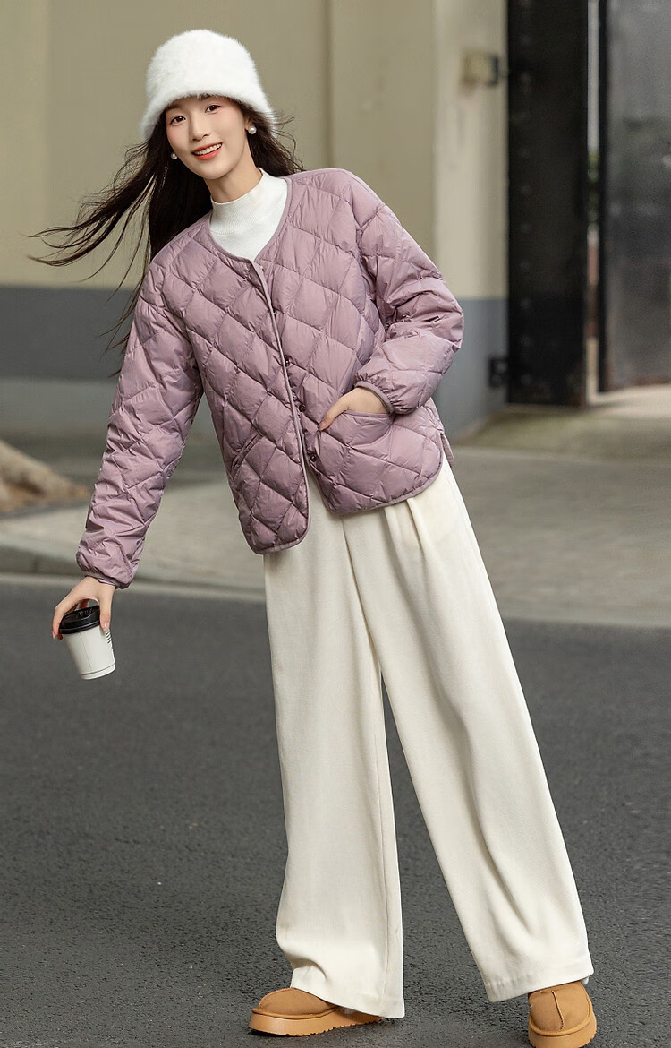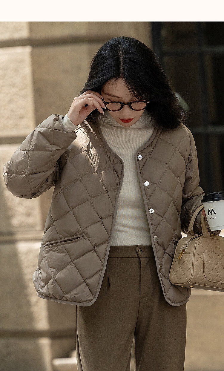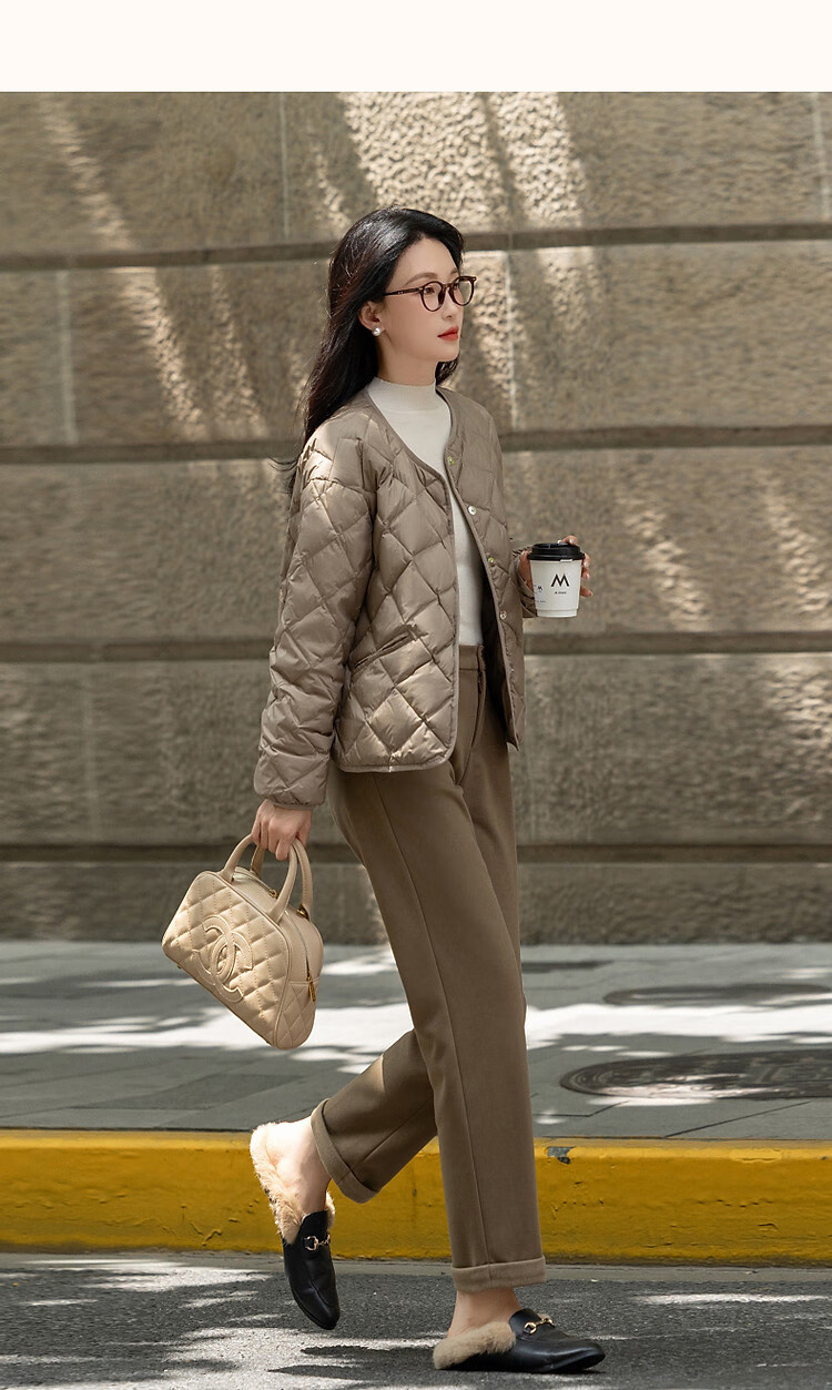 德玛纳【轻量高保暖】冬季轻奢90鸭绒圆领长袖小蛮腰藏肉女式羽绒服