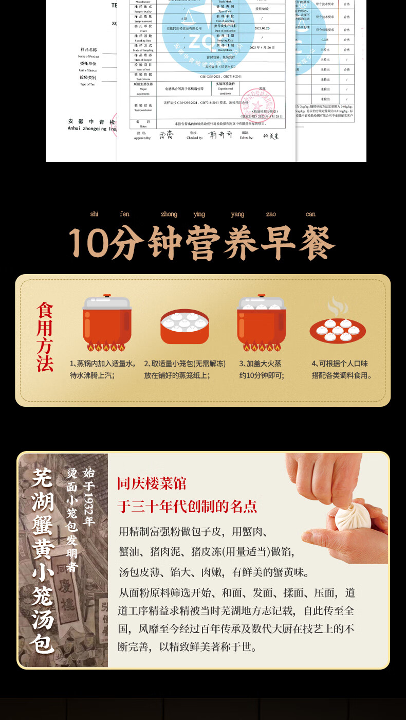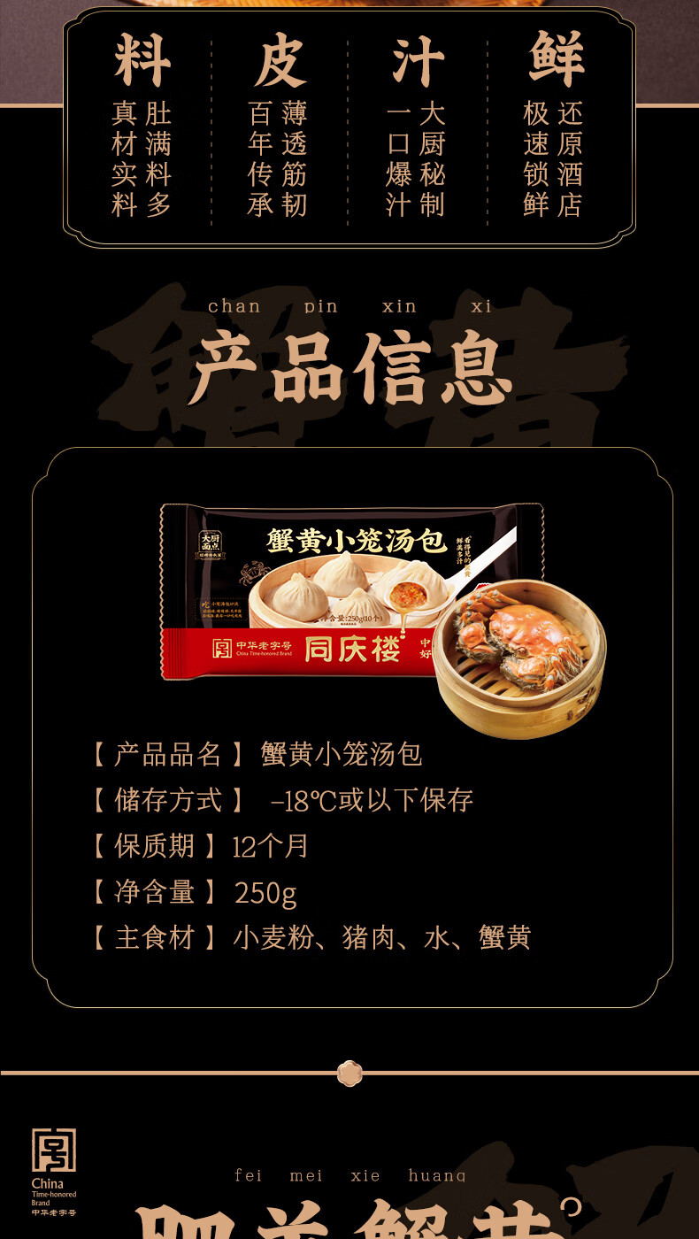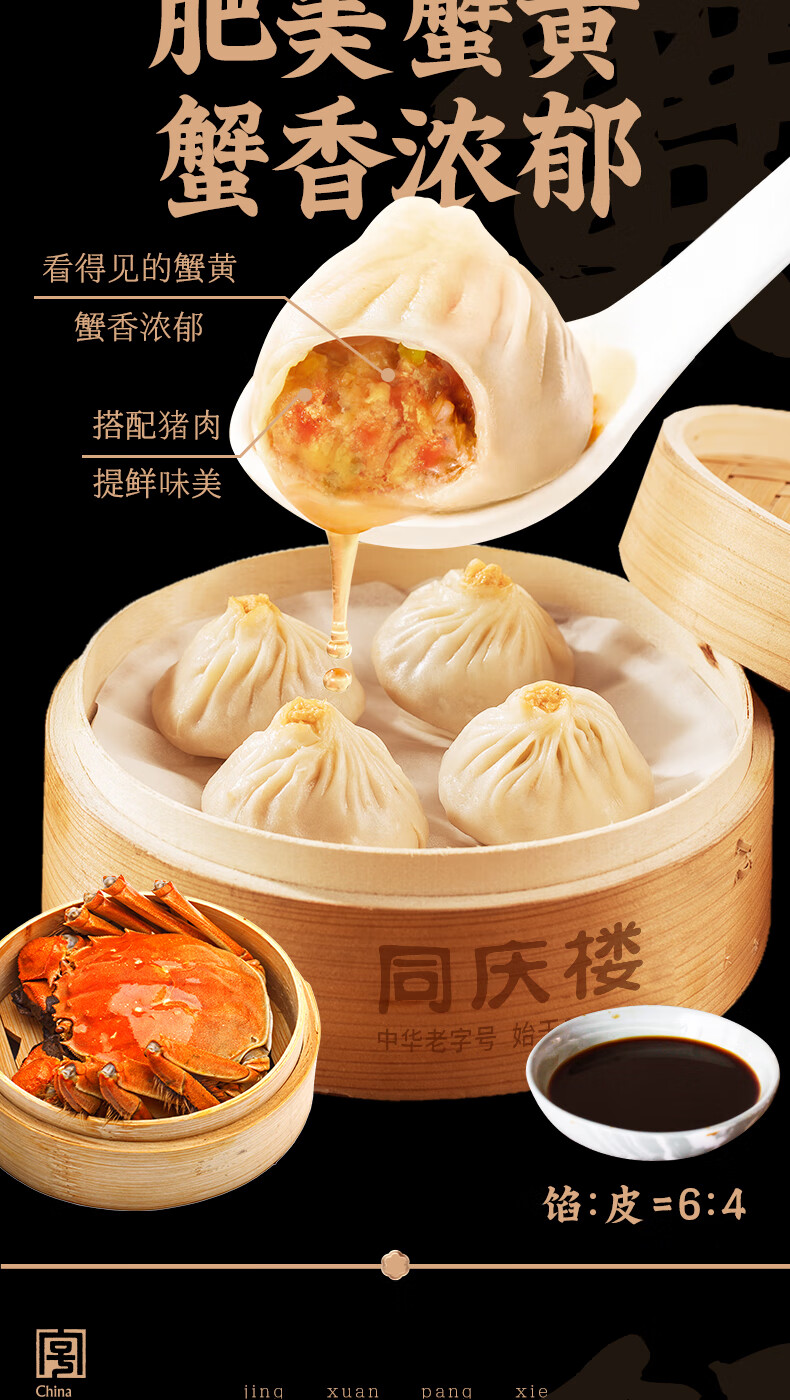 同庆楼蟹黄小笼包250g 10个 年货 早点夜宵灌汤包子 早餐半成品
