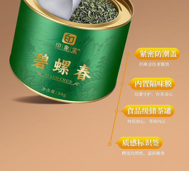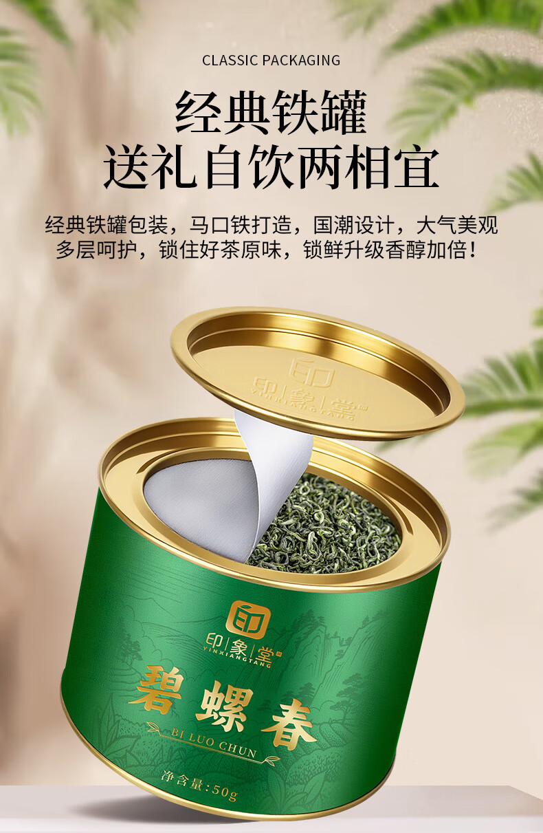 印象堂茶叶 2025新茶特级碧螺春绿茶罐装送人礼品送长辈 特级碧螺春绿铁罐 50g*1罐