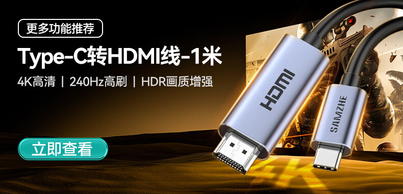 山泽Type-C转DP1.4线雷电4/5转换器USB-C转接头8K60/2K360Hz投屏适用手机苹果16笔记本电脑接显示器1米