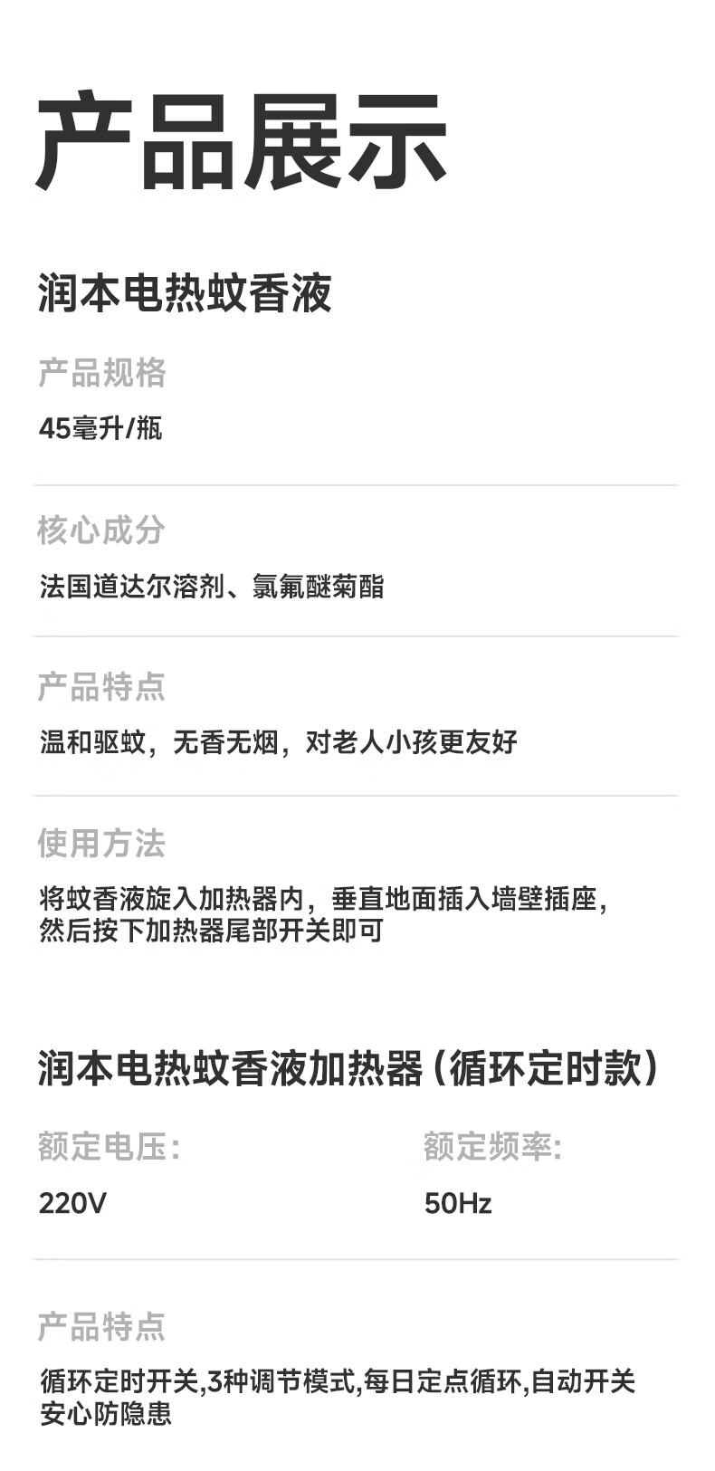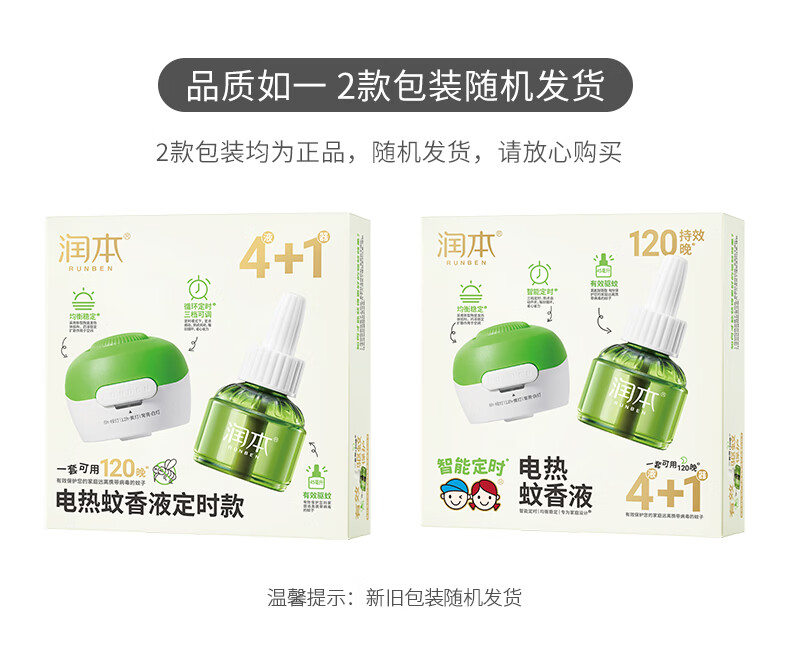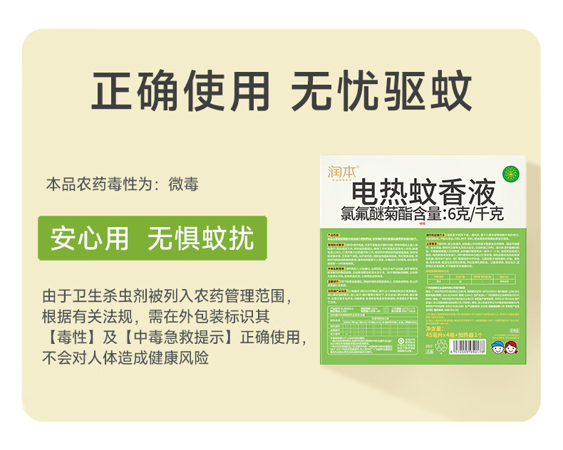 润本蚊香液电蚊香液驱蚊液45ml*4瓶+1个定时加热器驱蚊防蚊蚊香无香型