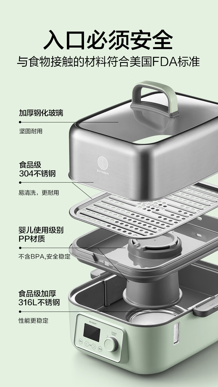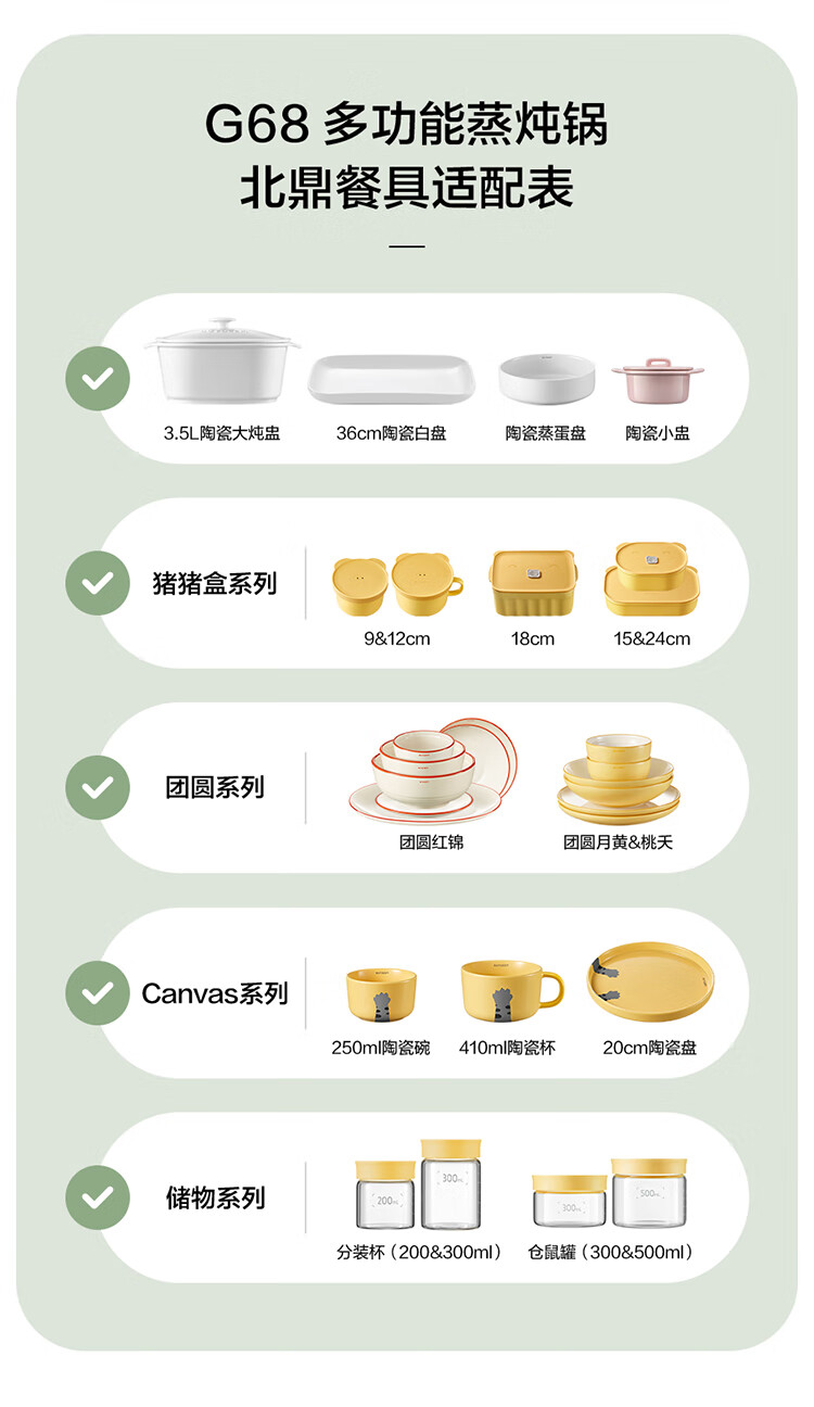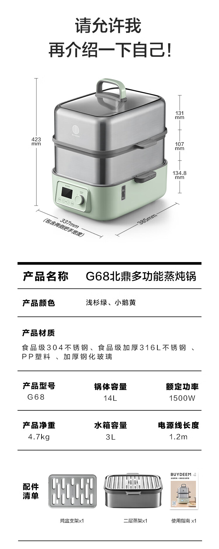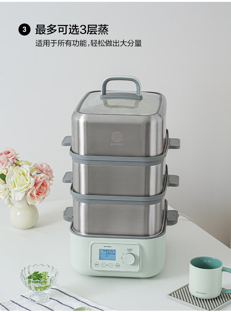 北鼎(Buydeem)电蒸锅蒸锅家用蒸炖锅不锈钢电炖锅蒸炖煮一体 大容量全自动定时预约多用途锅 14L 【小鹅黄】G68+大炖盅+蒸盘+饭盒