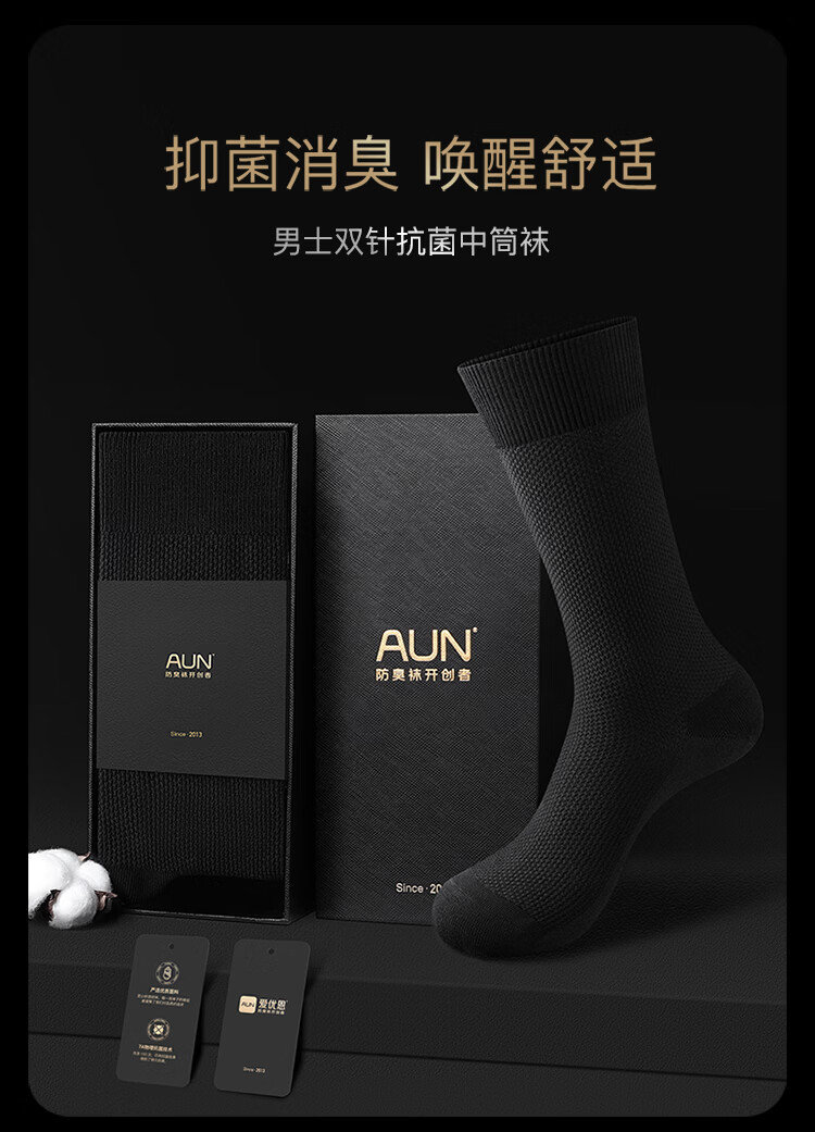 AUN长筒袜子男秋冬季7a抗菌防臭吸汗加厚款高筒新疆棉黑色男士长袜 3黑色 均码