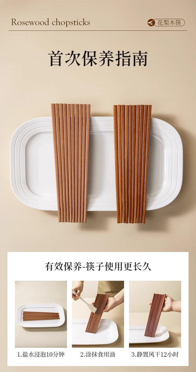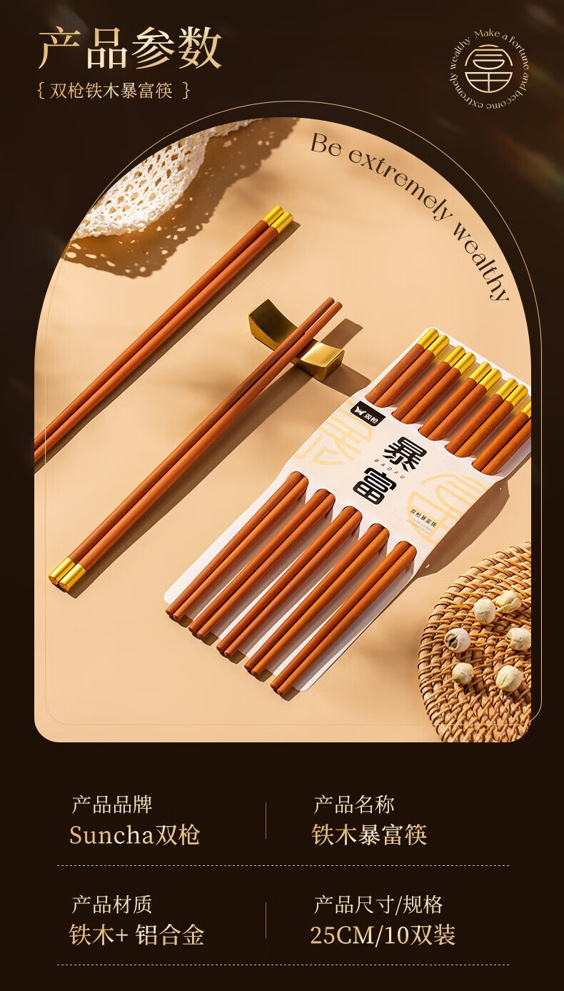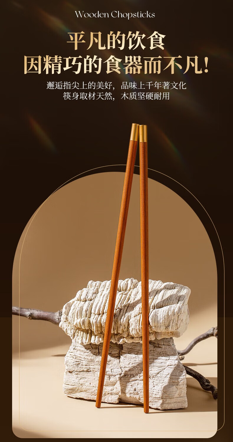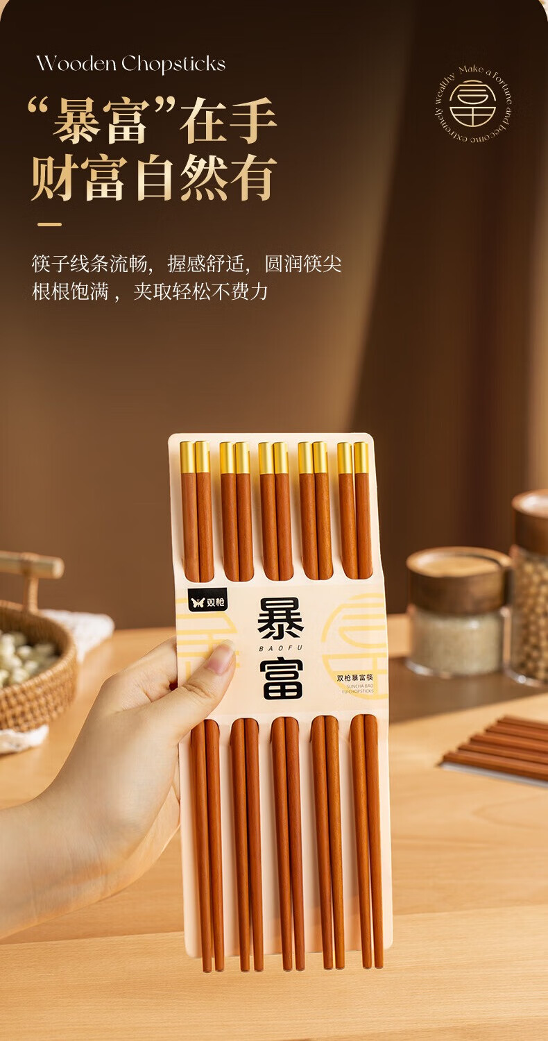 双枪暴富筷木筷子高档筷中式筷创意防霉无漆无蜡实木筷国潮筷 10双【花梨木筷】