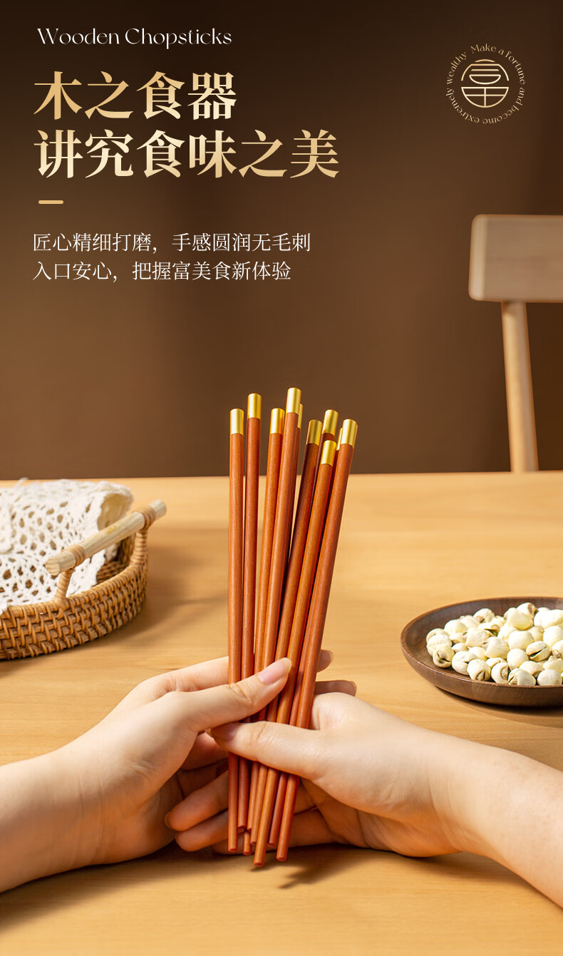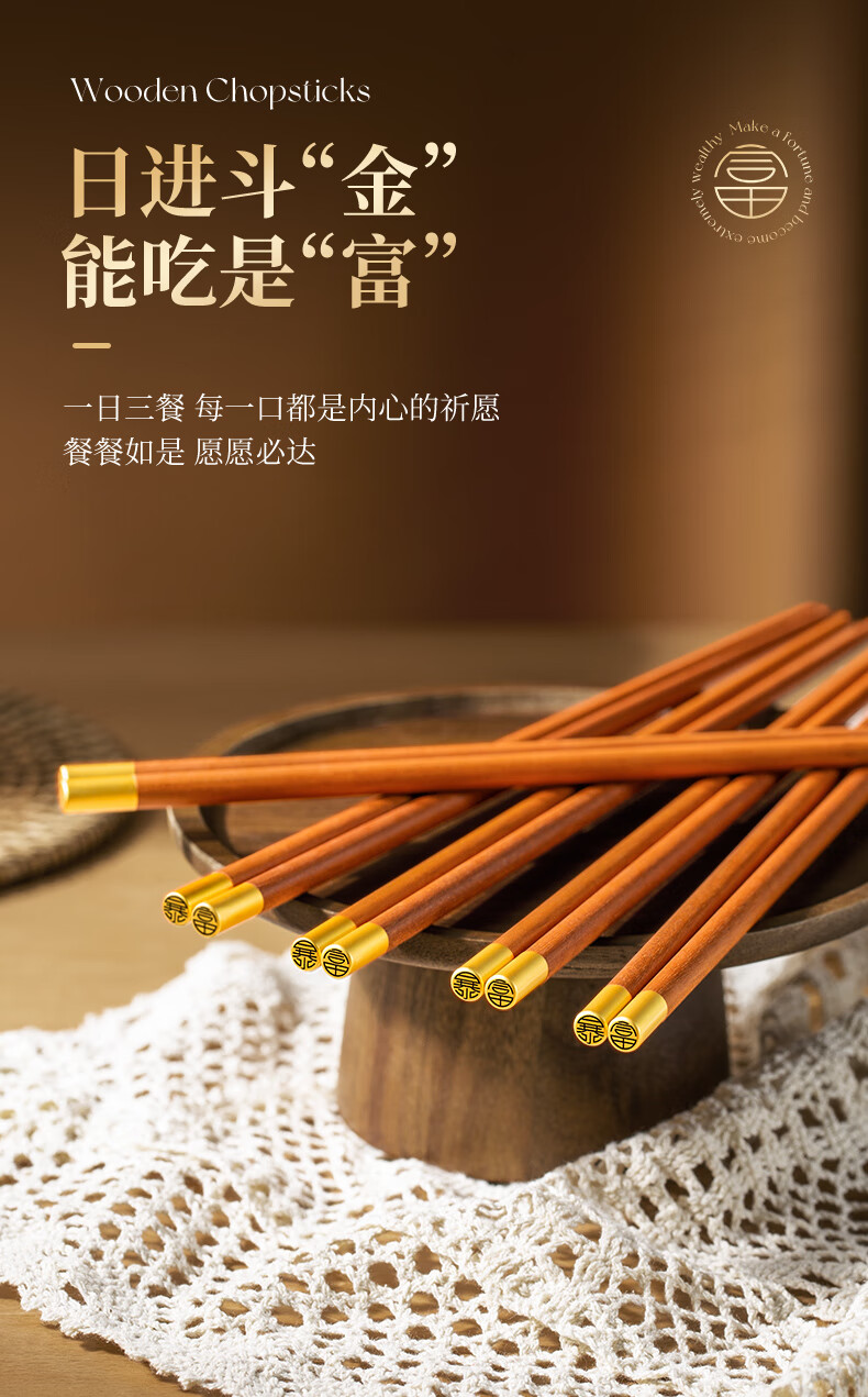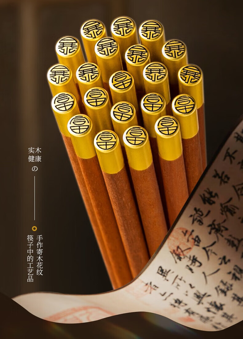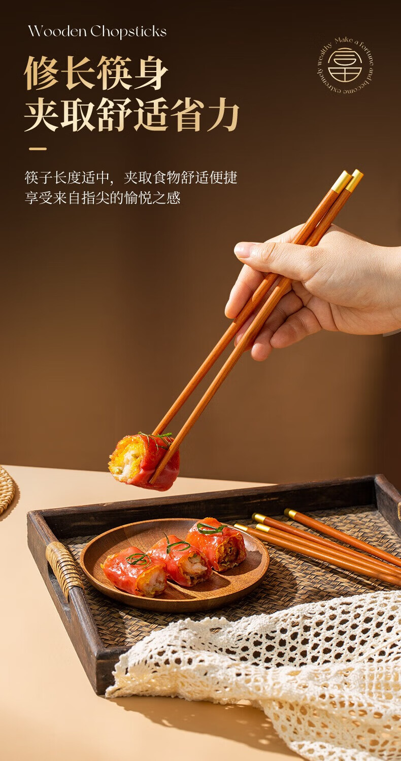 双枪暴富筷木筷子高档筷中式筷创意防霉无漆无蜡实木筷国潮筷 10双【花梨木筷】