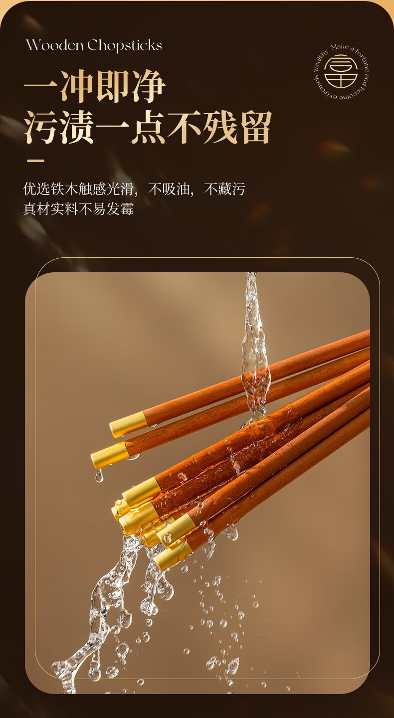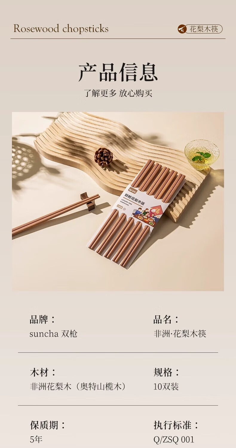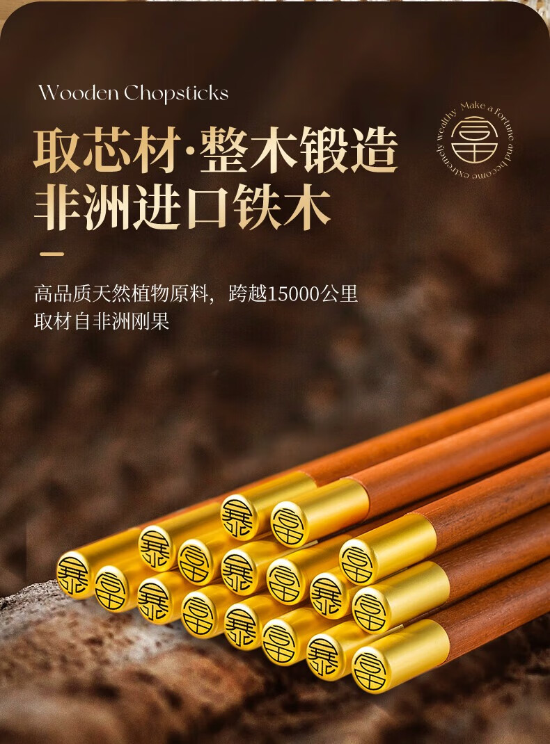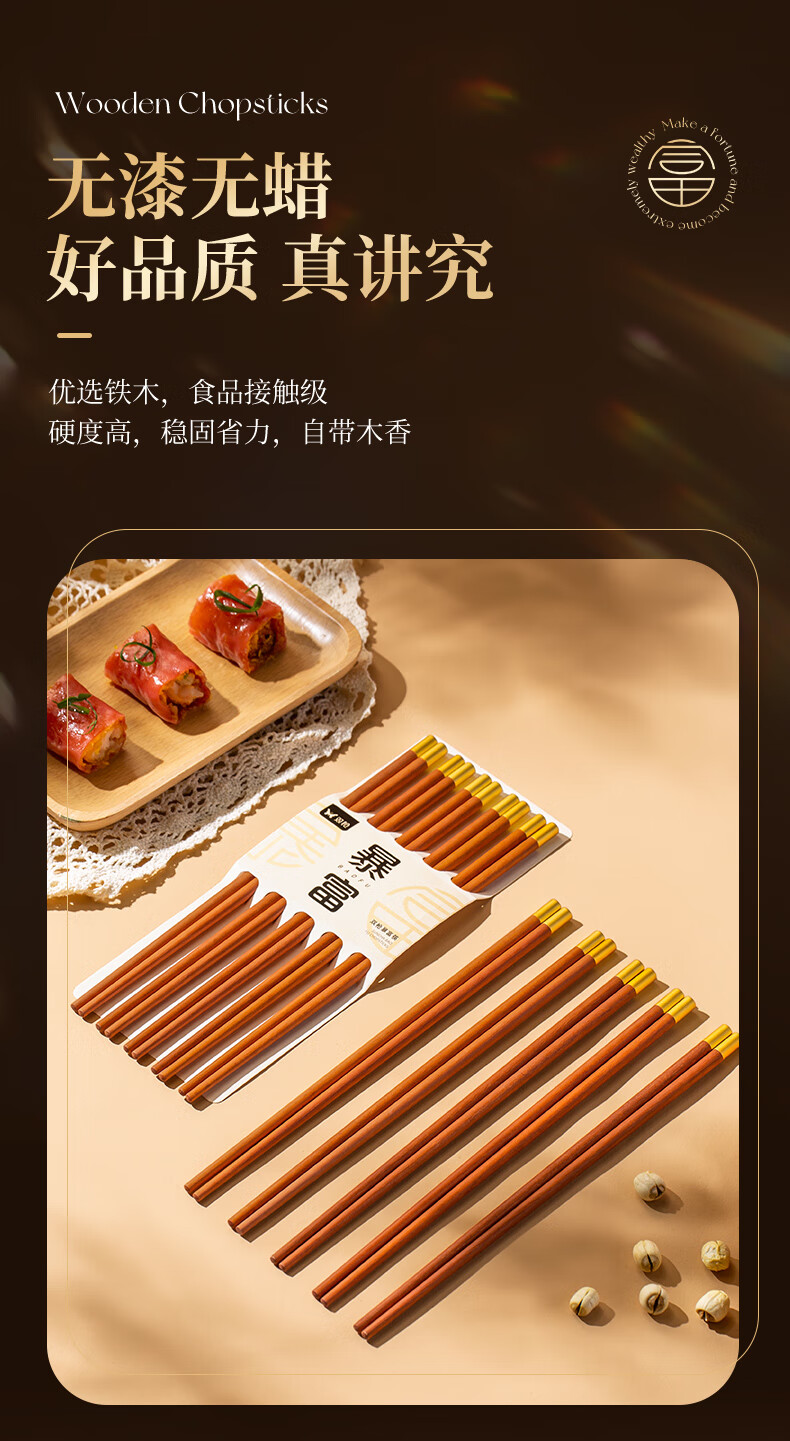 双枪暴富筷木筷子高档筷中式筷创意防霉无漆无蜡实木筷国潮筷 10双【花梨木筷】