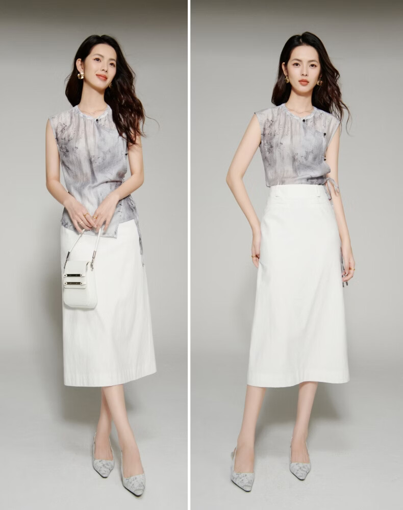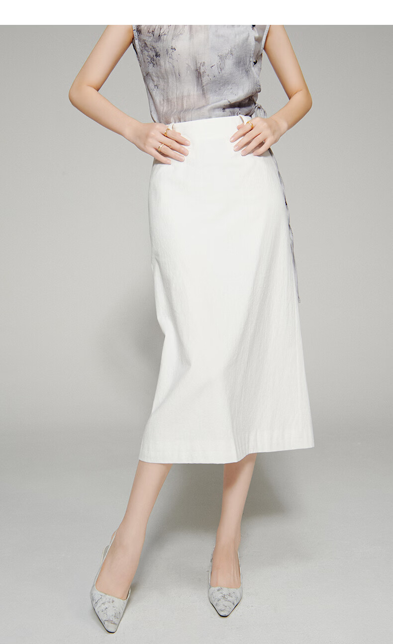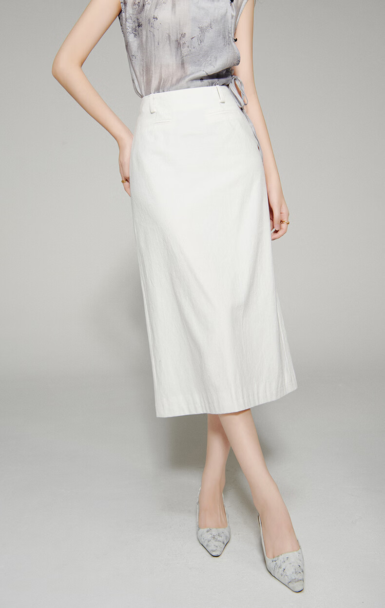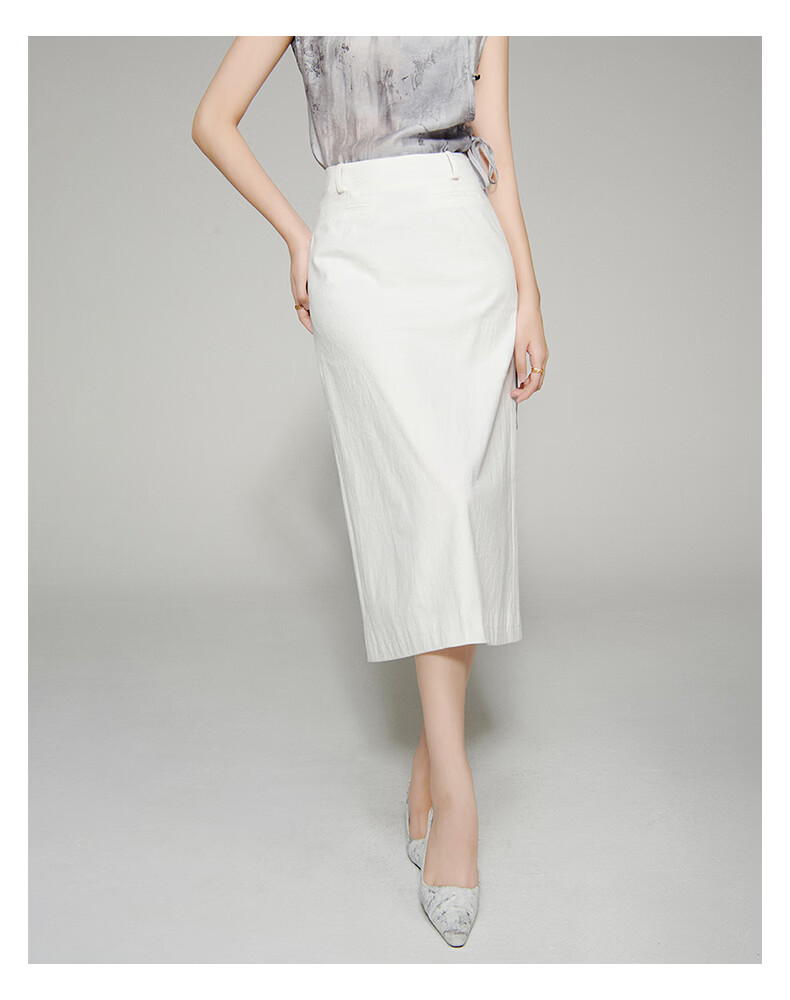 晚白【断码清仓】2026春款时尚纯色半裙舒适全棉气质通勤直筒中长裙 白色 XL
