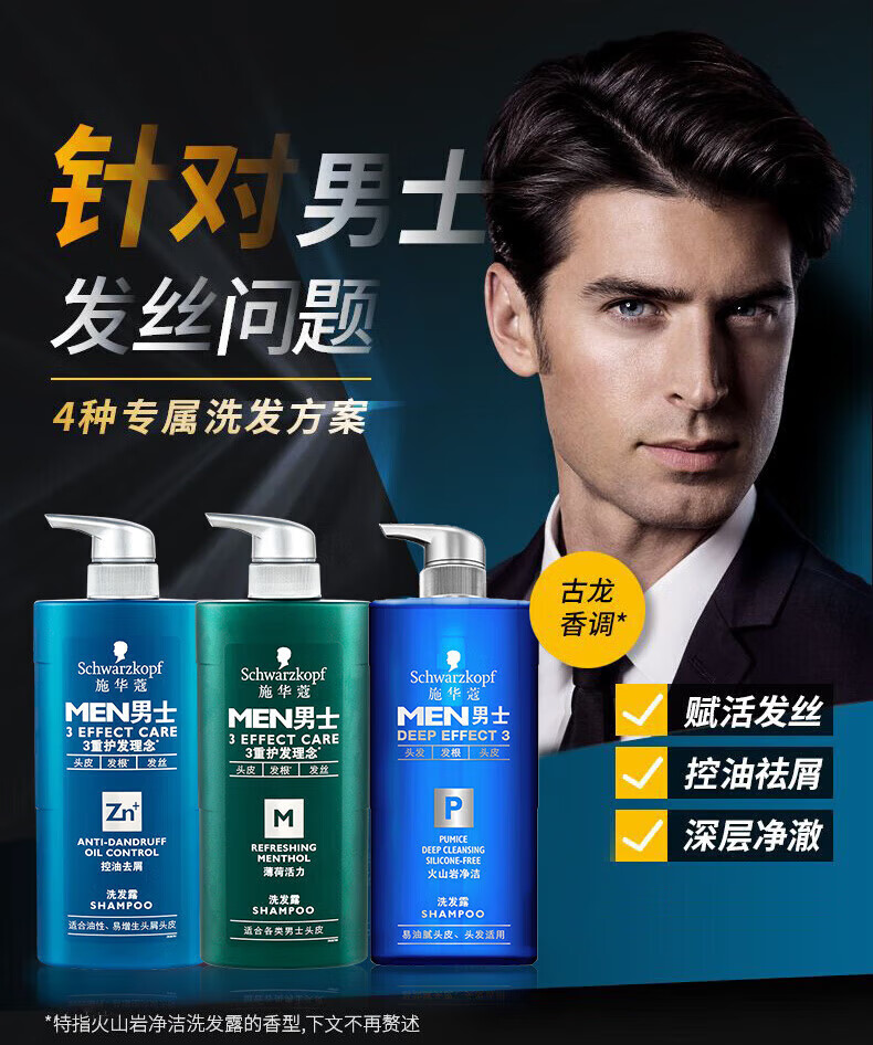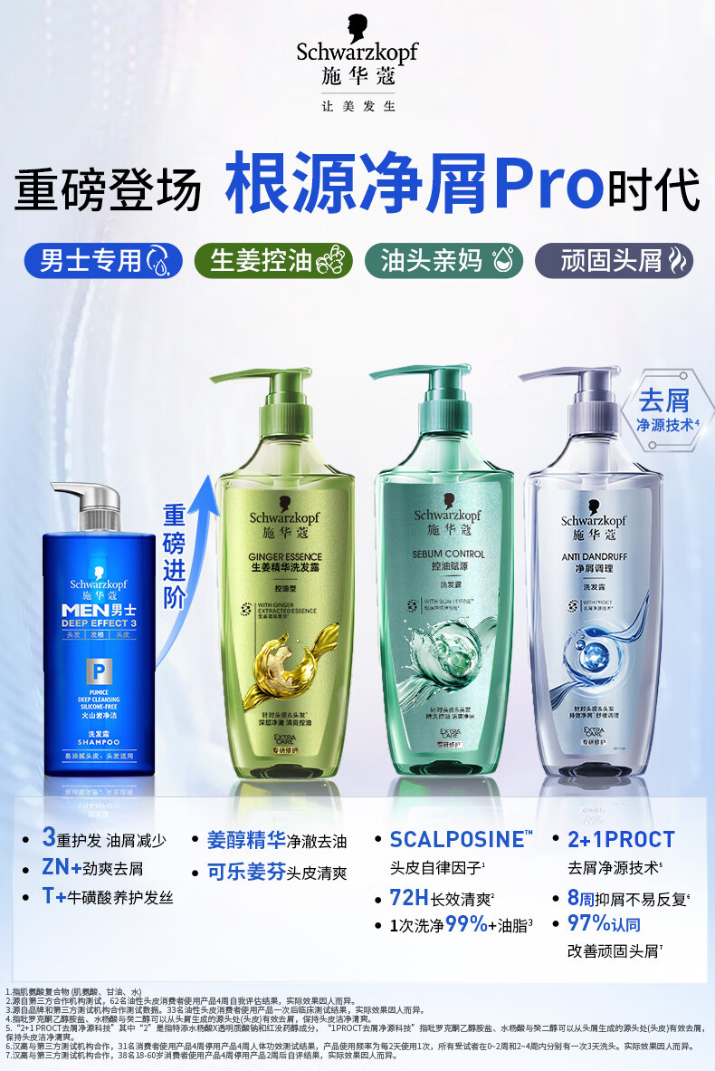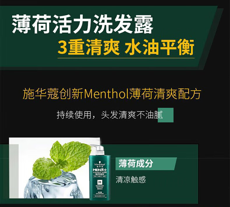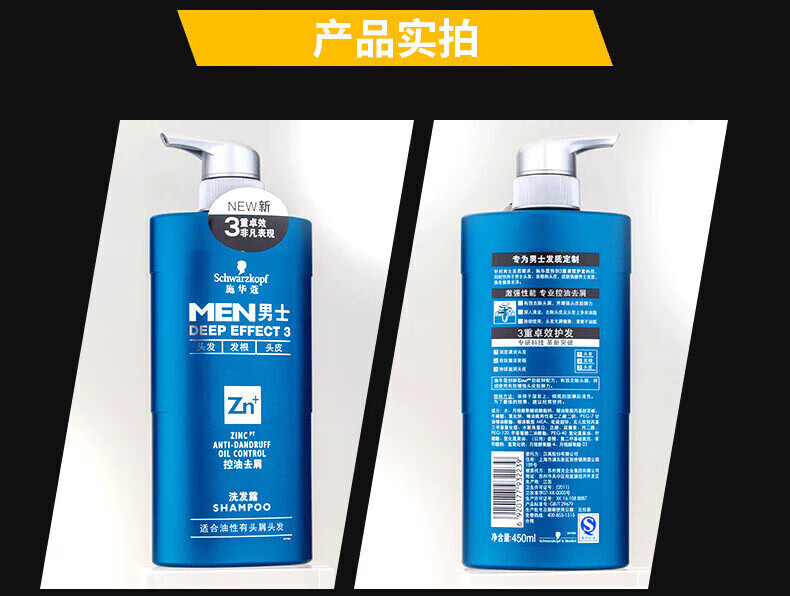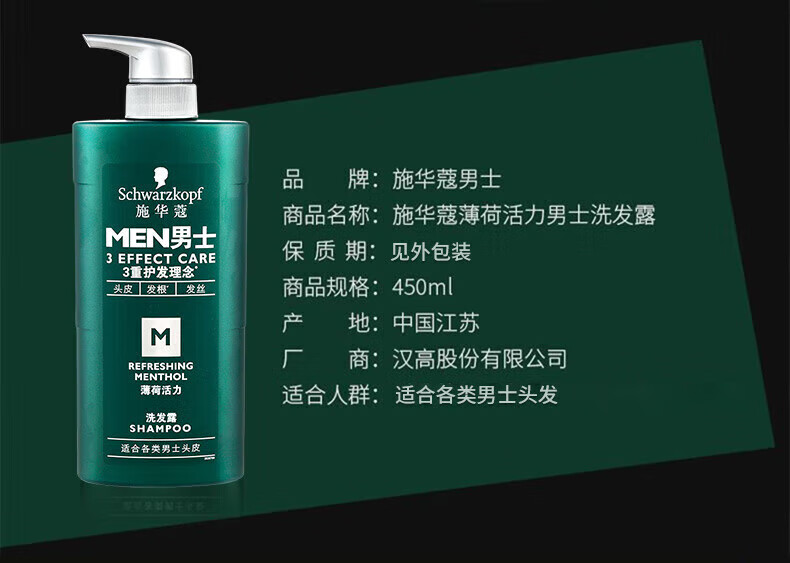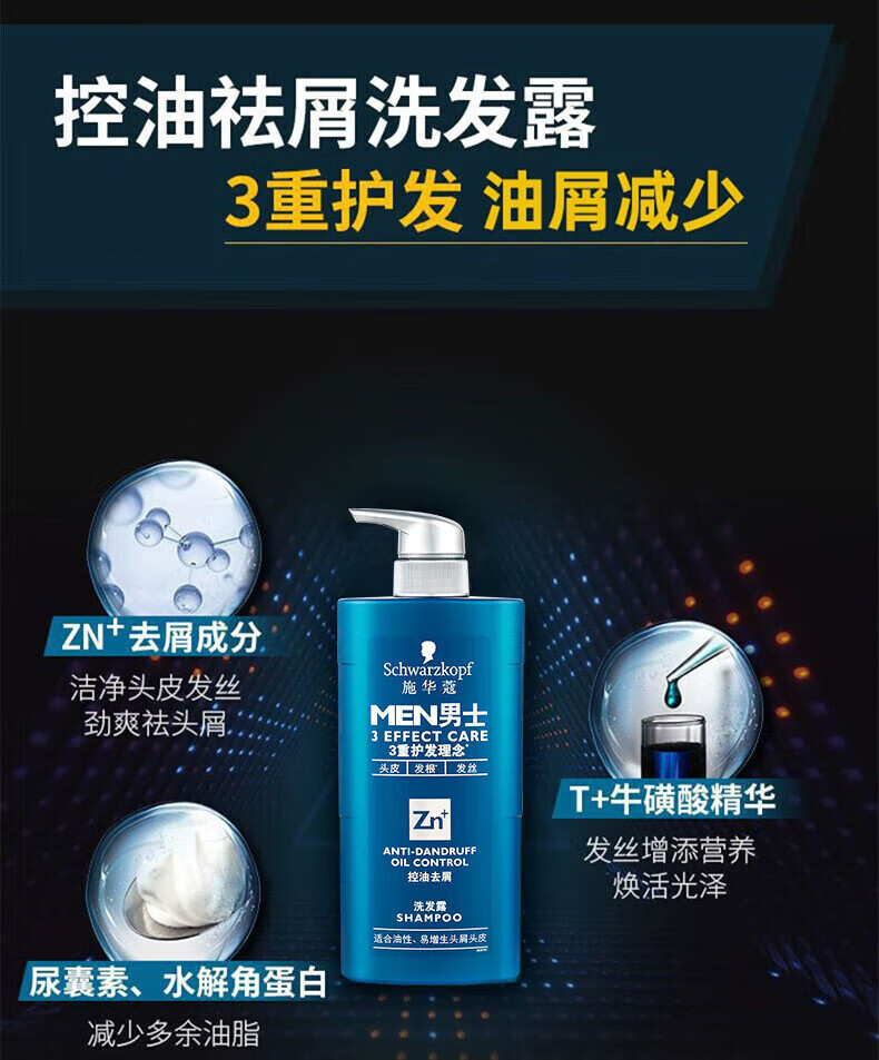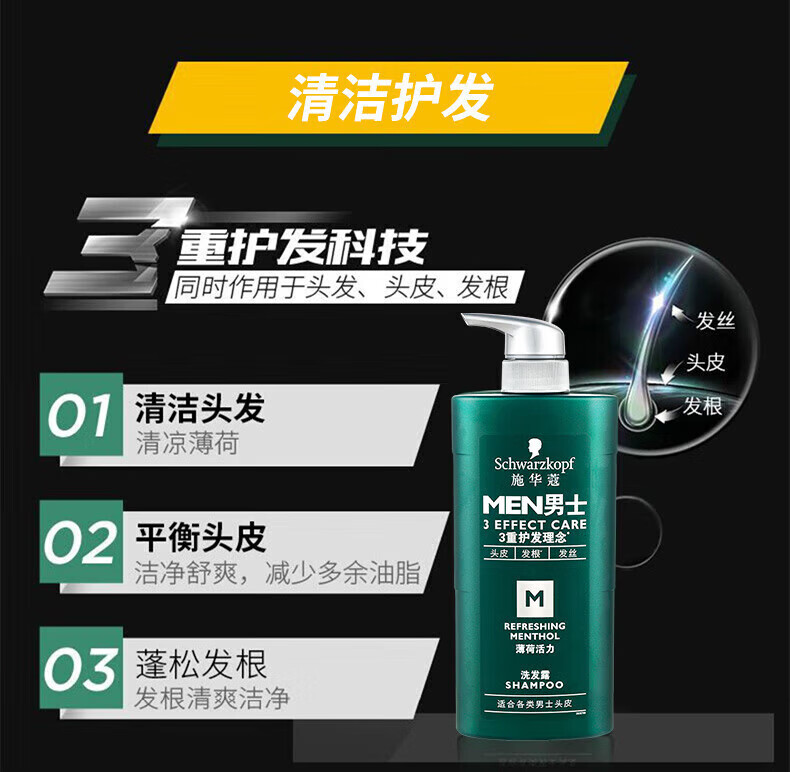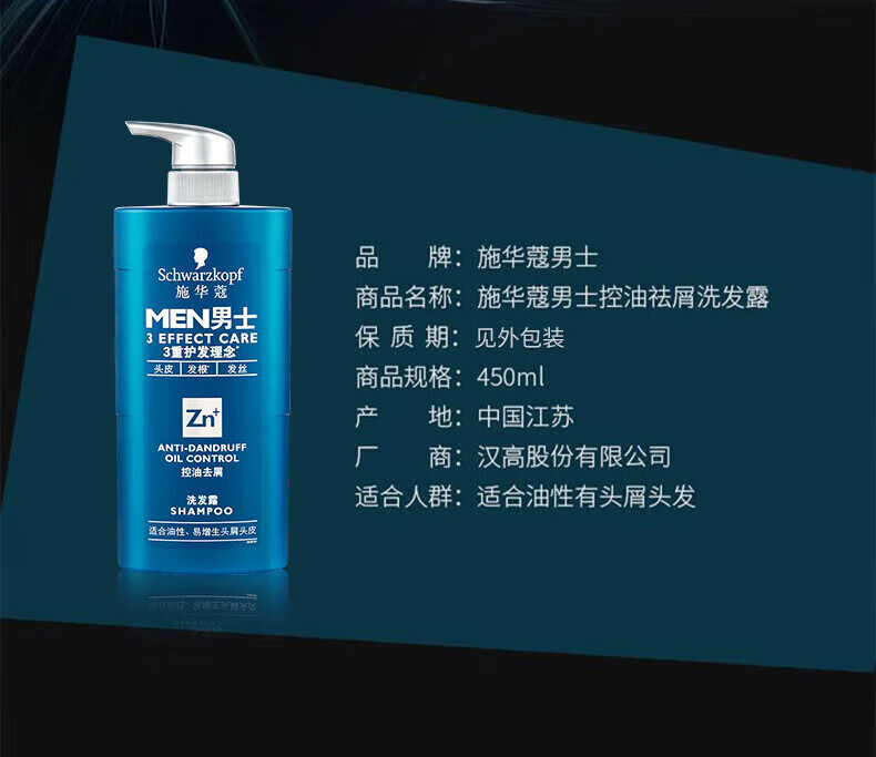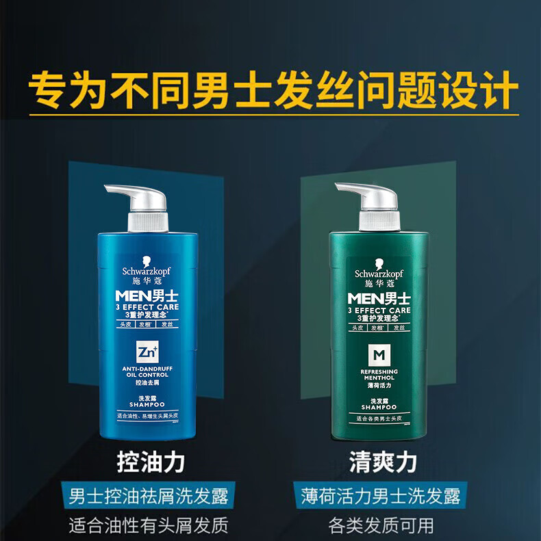 施华蔻(Schwarzkopf)男士控油去屑洗发露450ml(深层洁净 清爽控油)洗发水