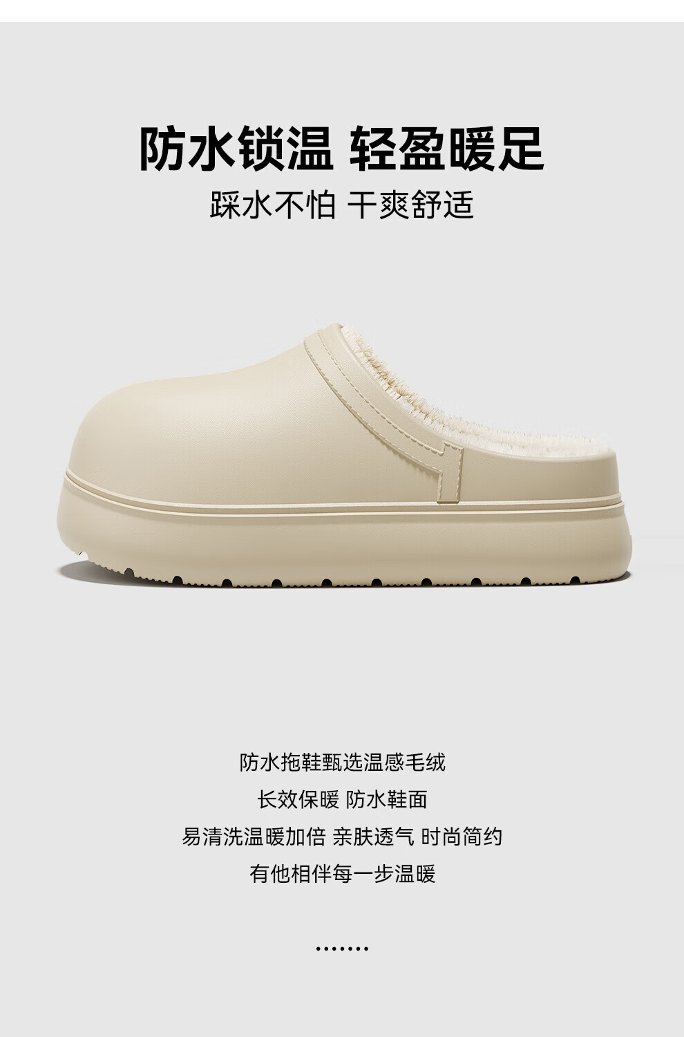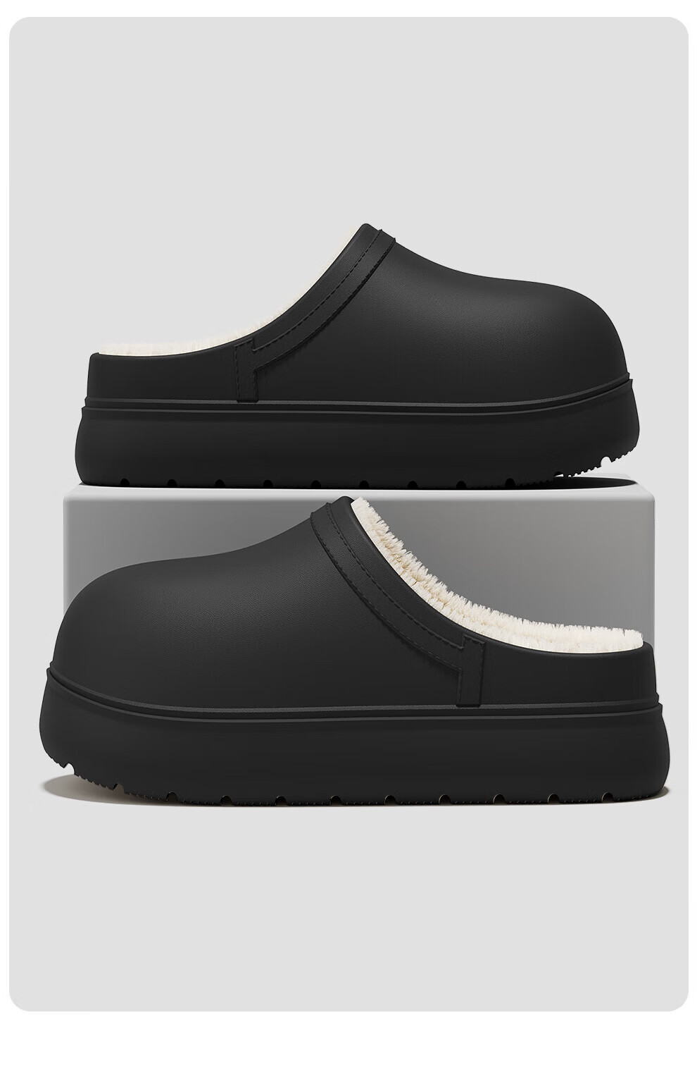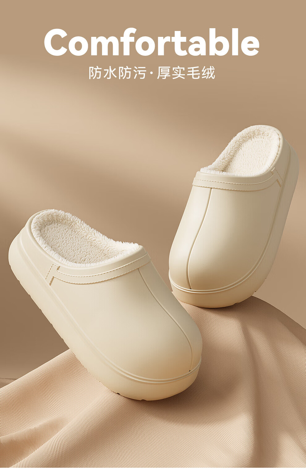 FZT防水棉拖鞋女士冬季2025新款毛绒保暖防滑防臭厚底棉鞋男外穿 黑色 36-37 适合35-36