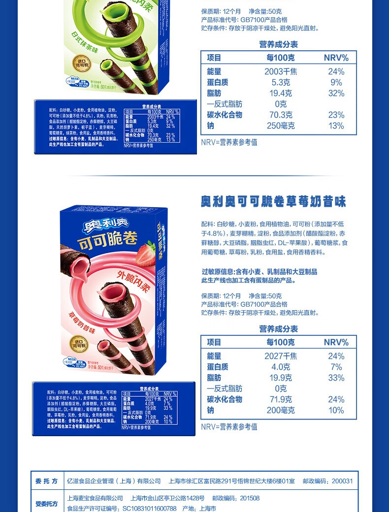 奥利奥(Oreo)可可脆卷 香草慕斯味威化饼干 休闲零食 50g(包装内容物随机)