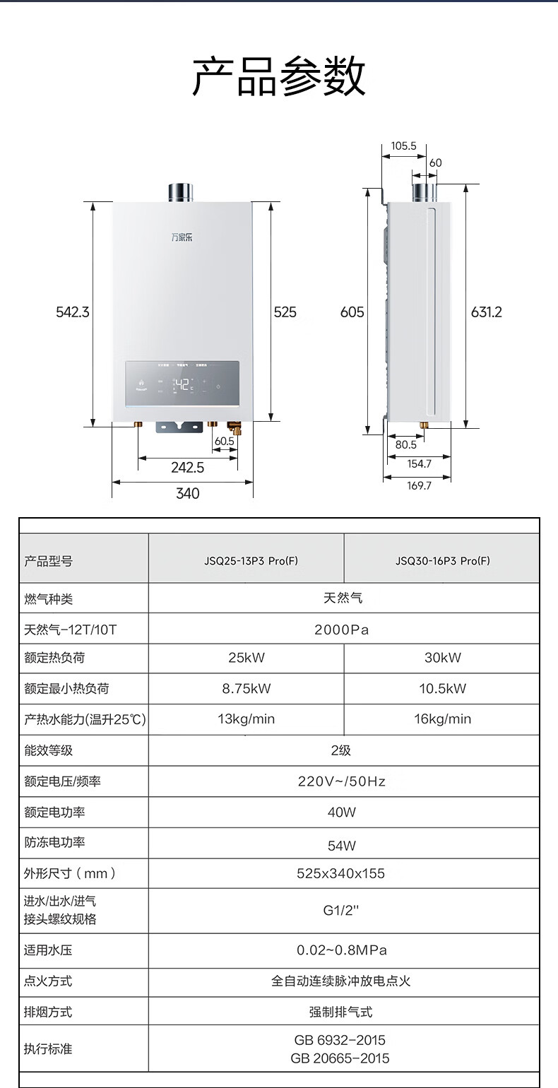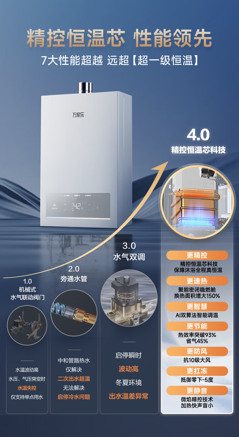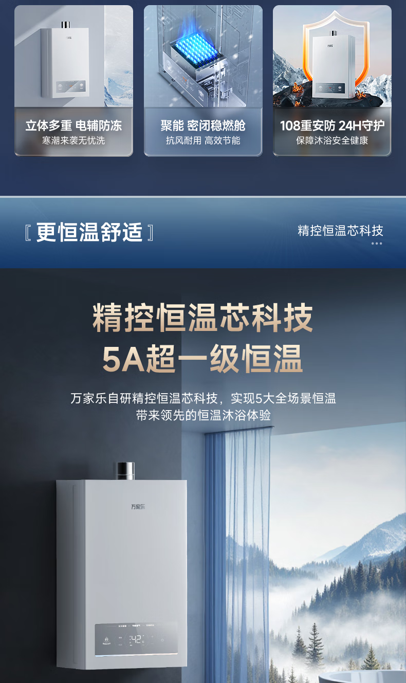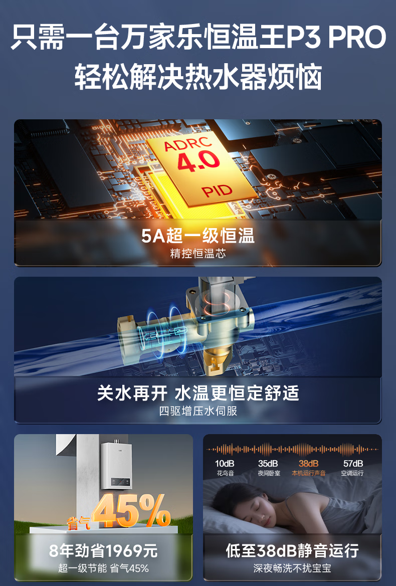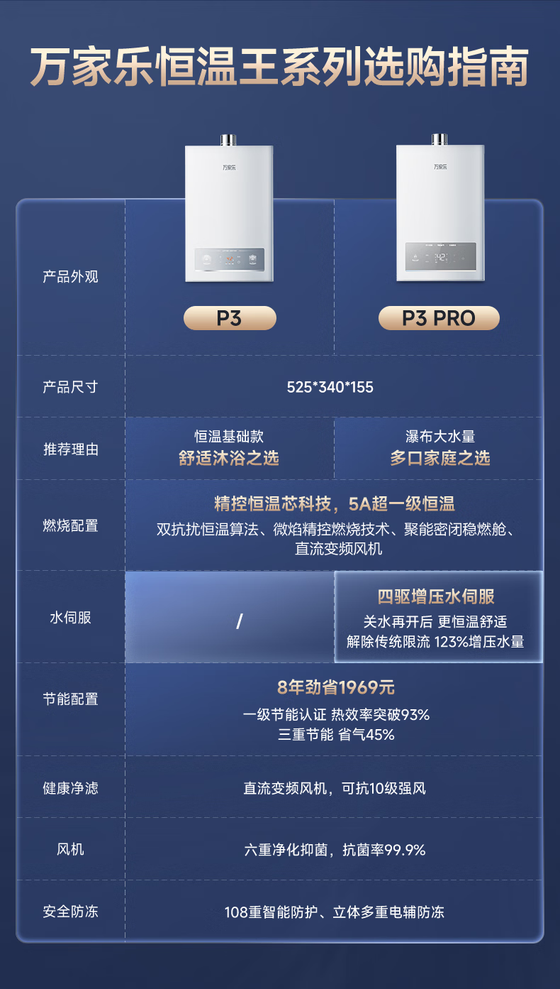 万家乐燃气热水器【恒温王P3·增压款】16升天然气一级节能水伺服一级恒温大水量防冻以旧换新P3PRO(F)