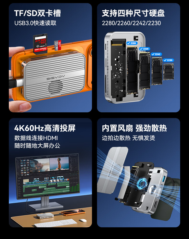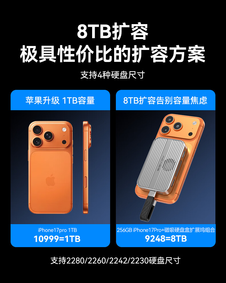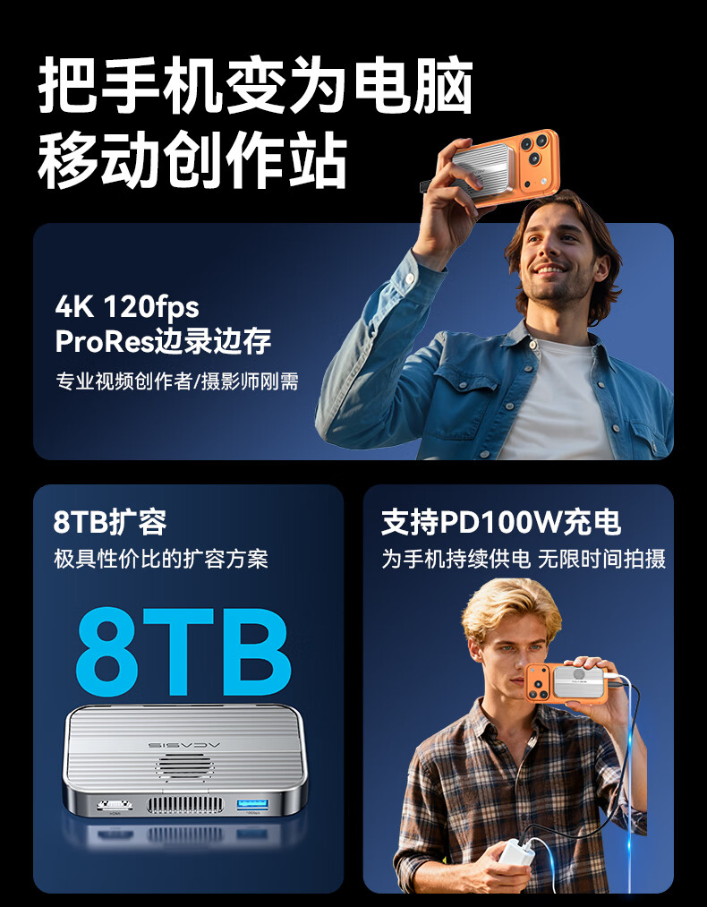阿卡西斯(acasis)磁吸硬盘盒扩展坞移动固态M.2 NVMe外置盒SSD适用苹果iPhone17Pro手机电脑扩容电子尿袋EC1401