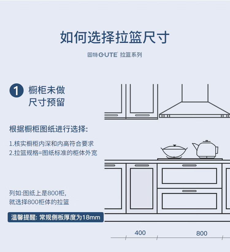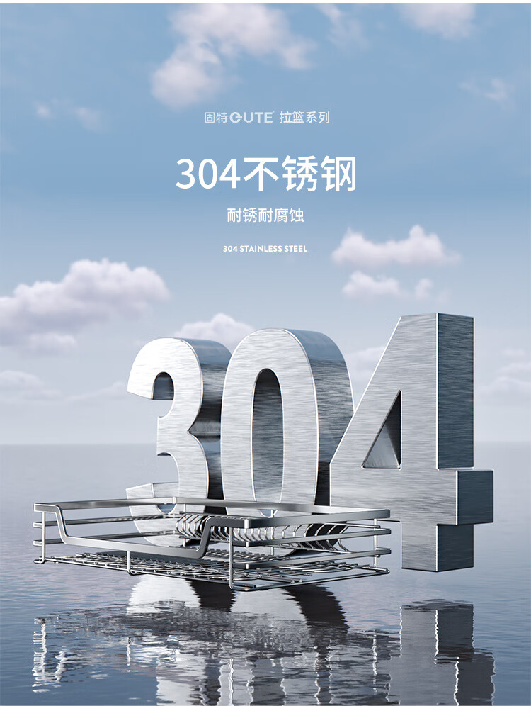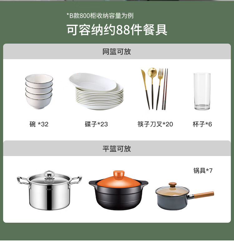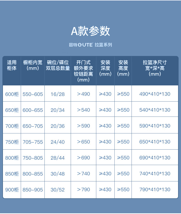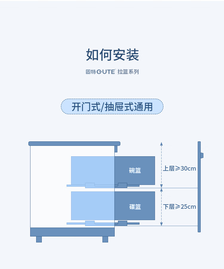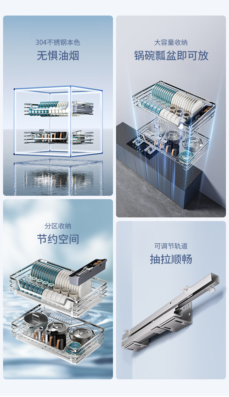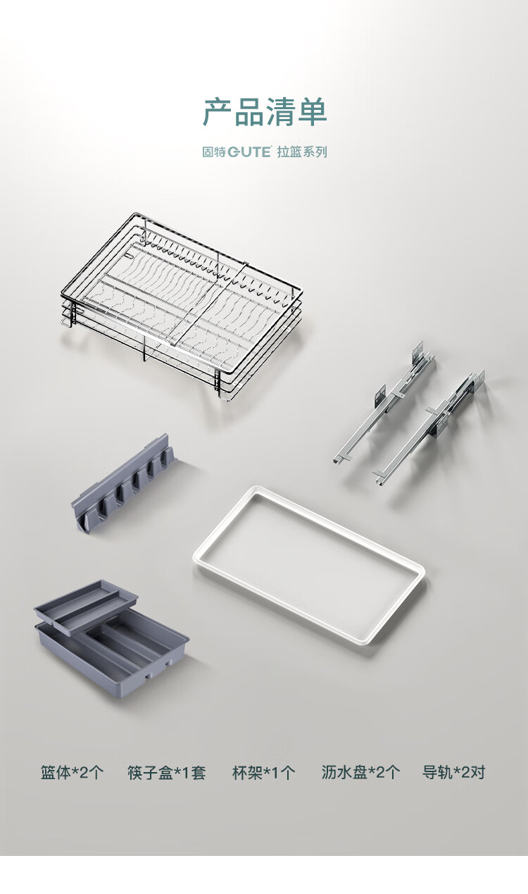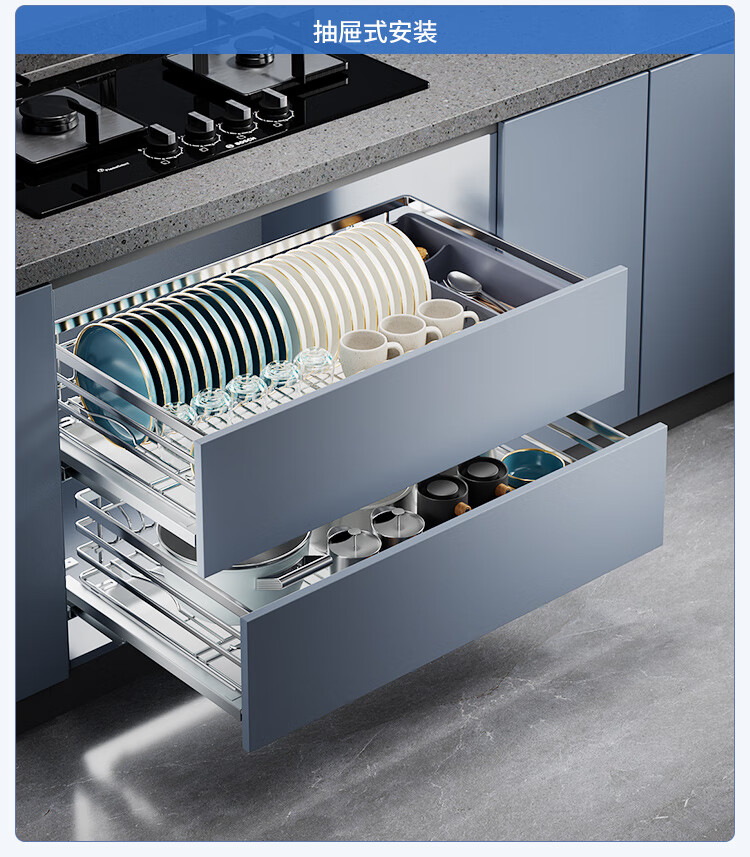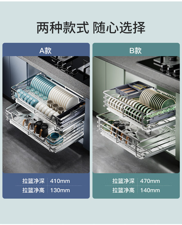 固特(GUTE)304不锈钢厨房拉篮橱柜双层抽屉式碗篮碗碟内放碗筷碗架 A款 304不锈钢【600柜】深度≥430 柜高≥550