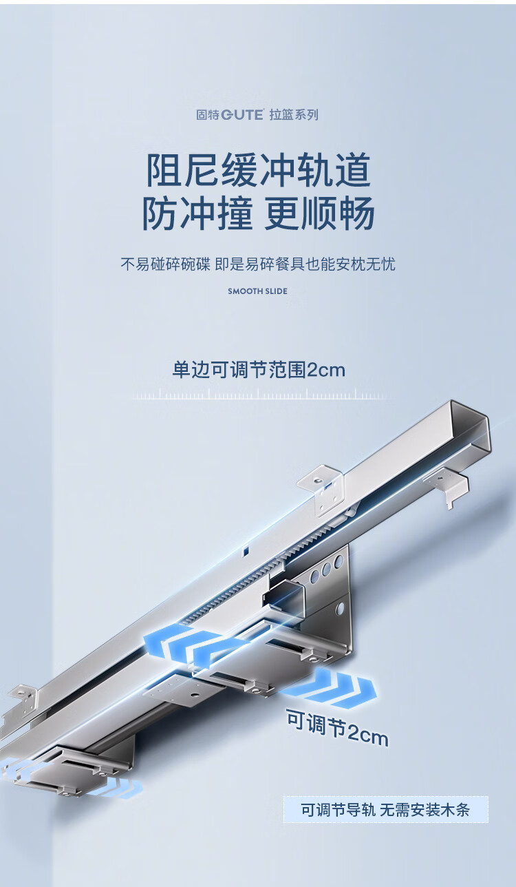 固特(GUTE)厨房吊柜下拉式橱柜缓冲拉篮升降拉篮收纳置物架调料篮 四档调节【玻璃款400柜】升降拉篮 缓冲降速