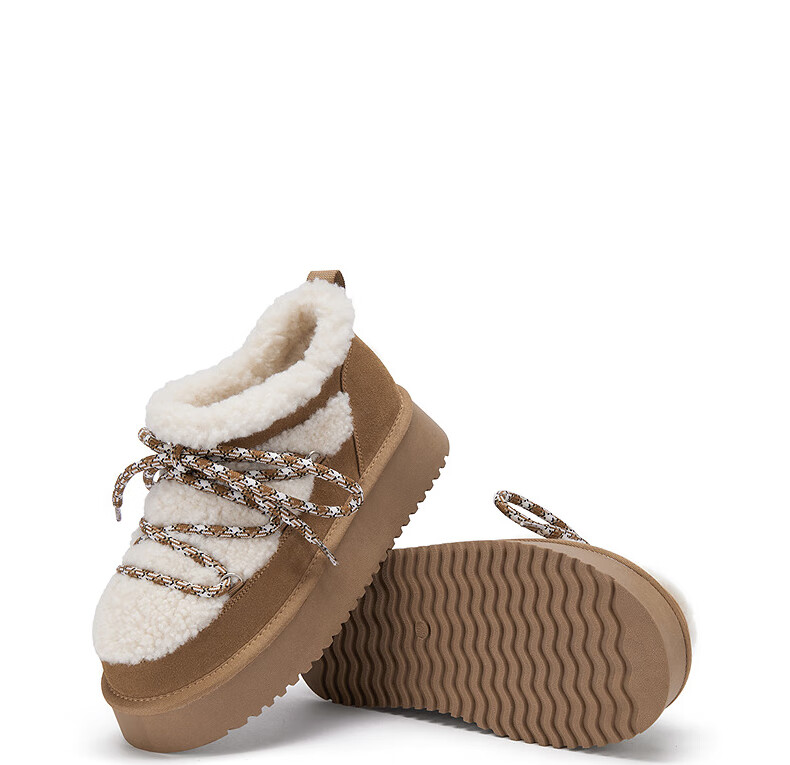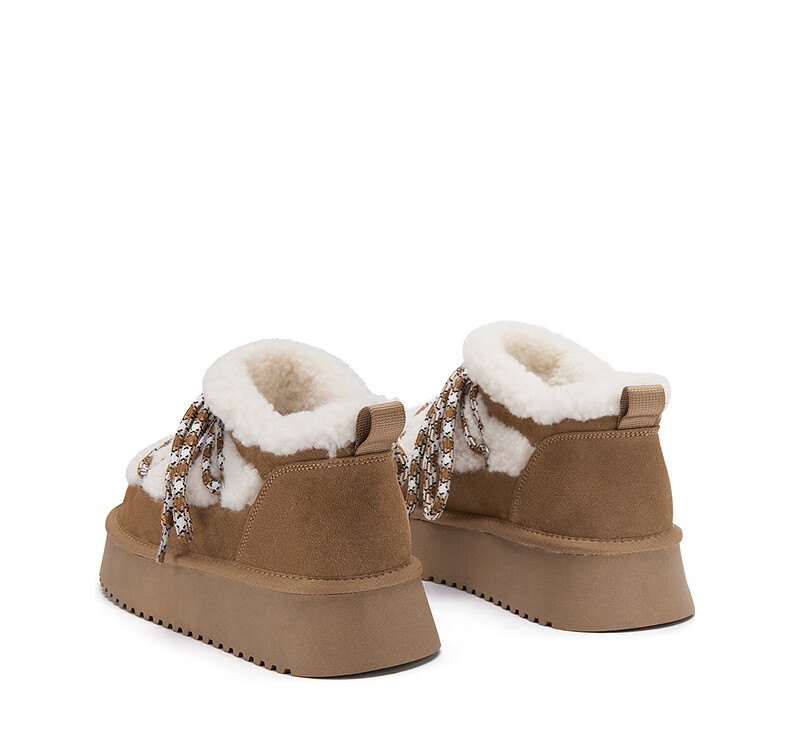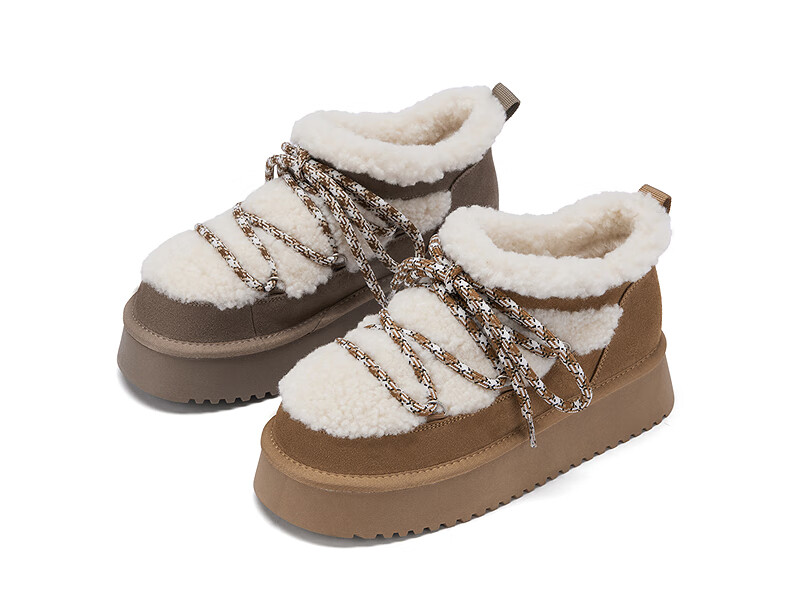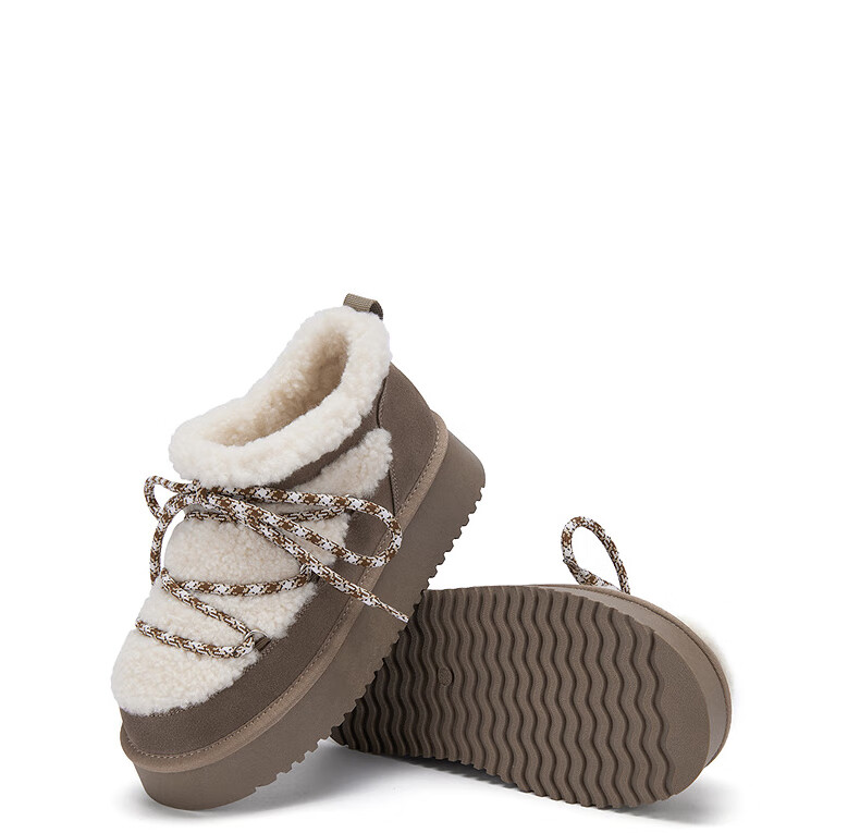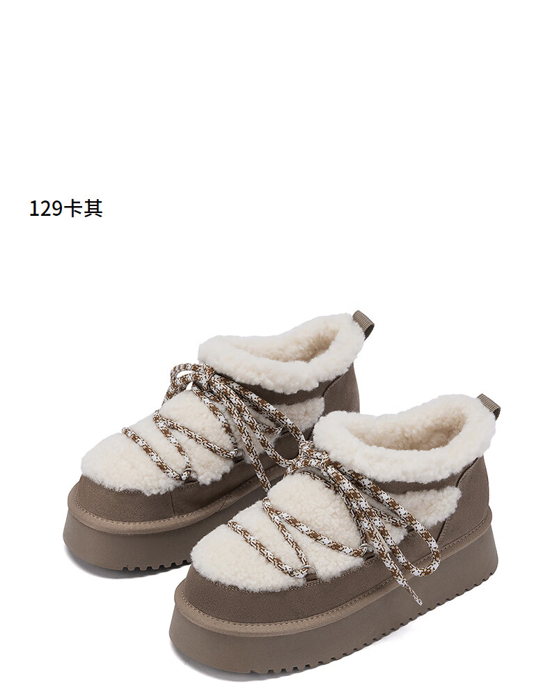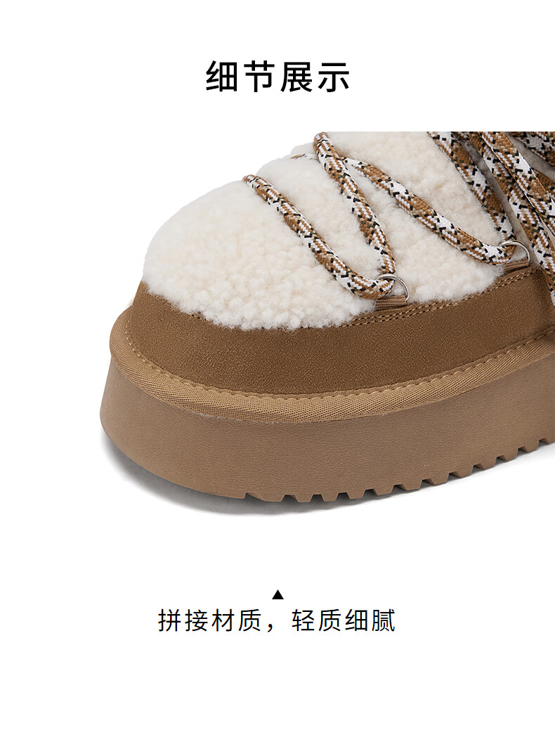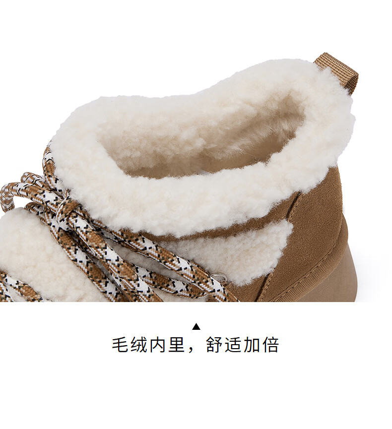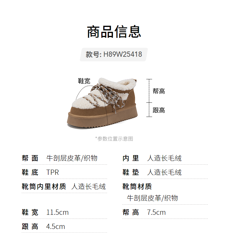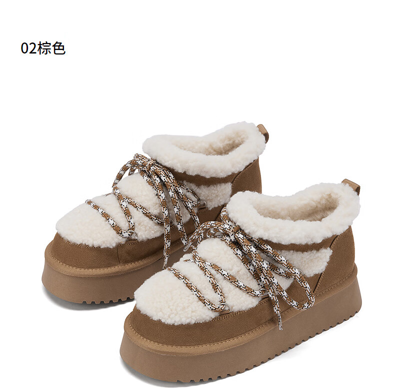 热风厚底雪地靴女2025年冬季新款百搭毛毛棉鞋小个子增高休闲鞋女 02棕色 34