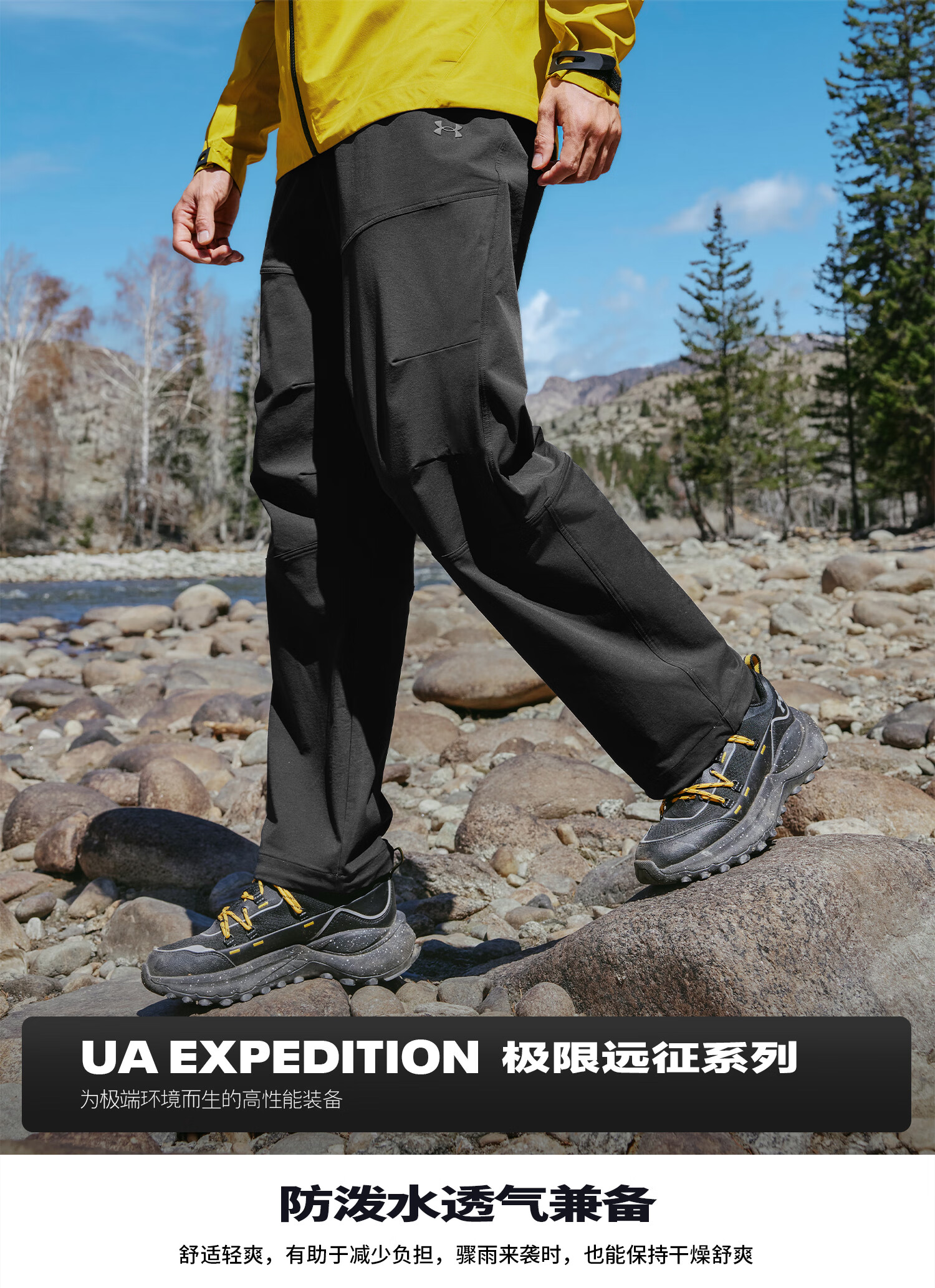 安德玛【谢霆锋同款】户外软壳裤男女防泼水防风 休闲透气长裤运动徒步 漫暮黑 L