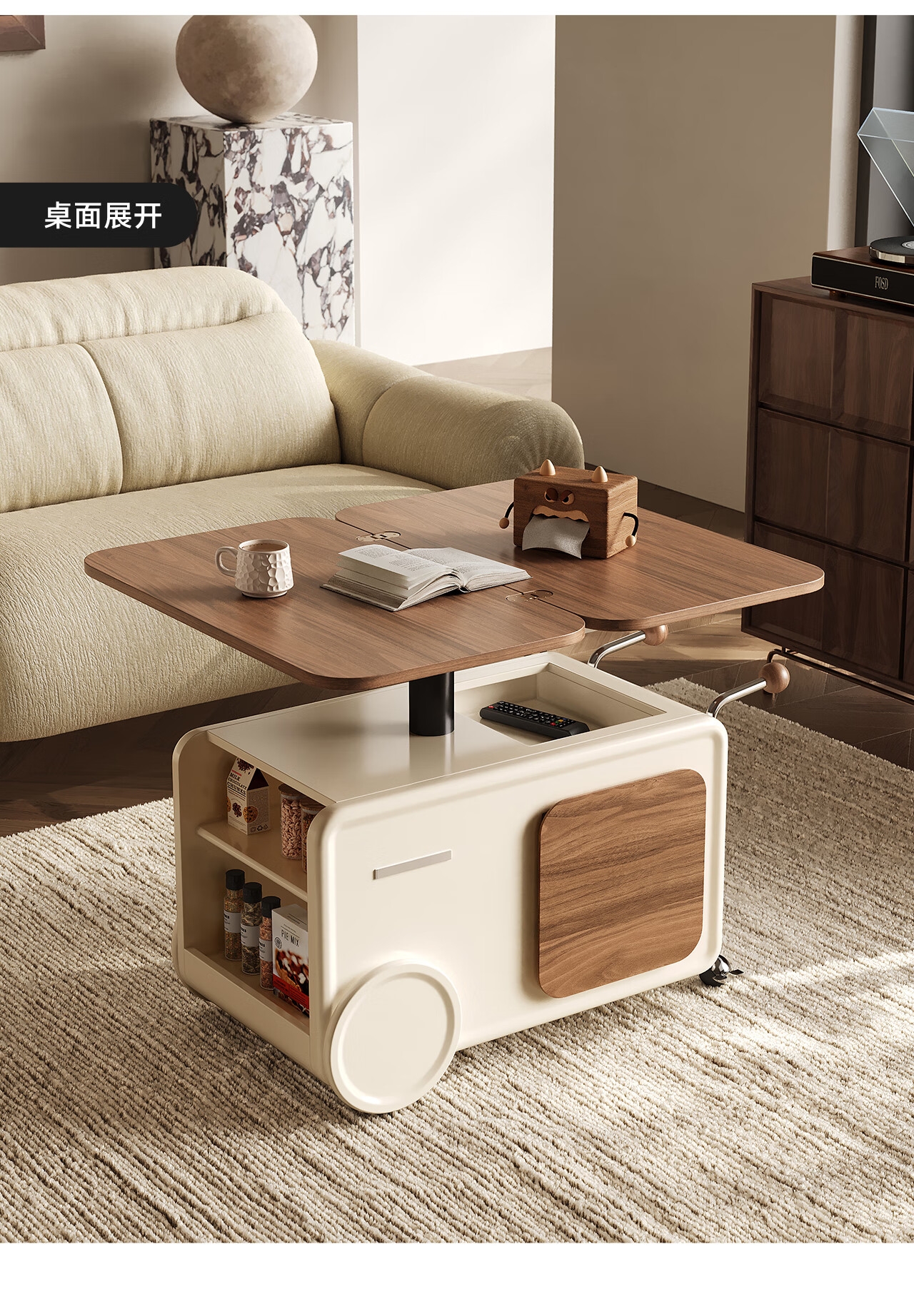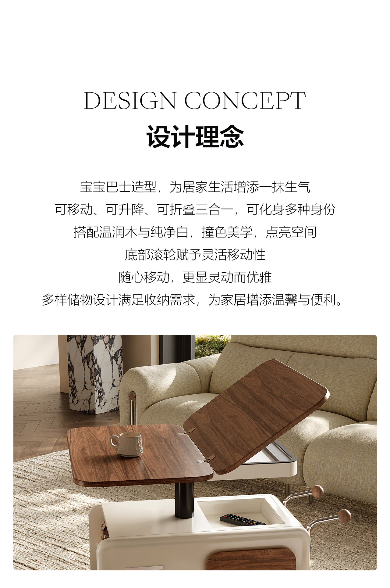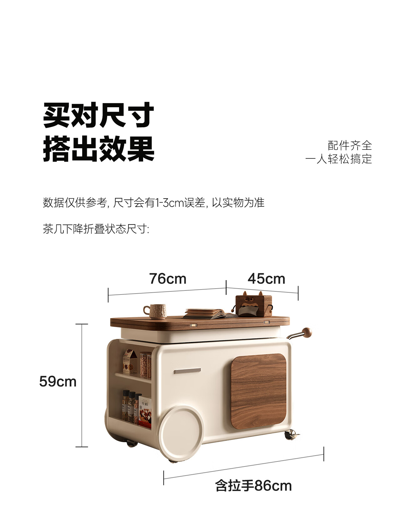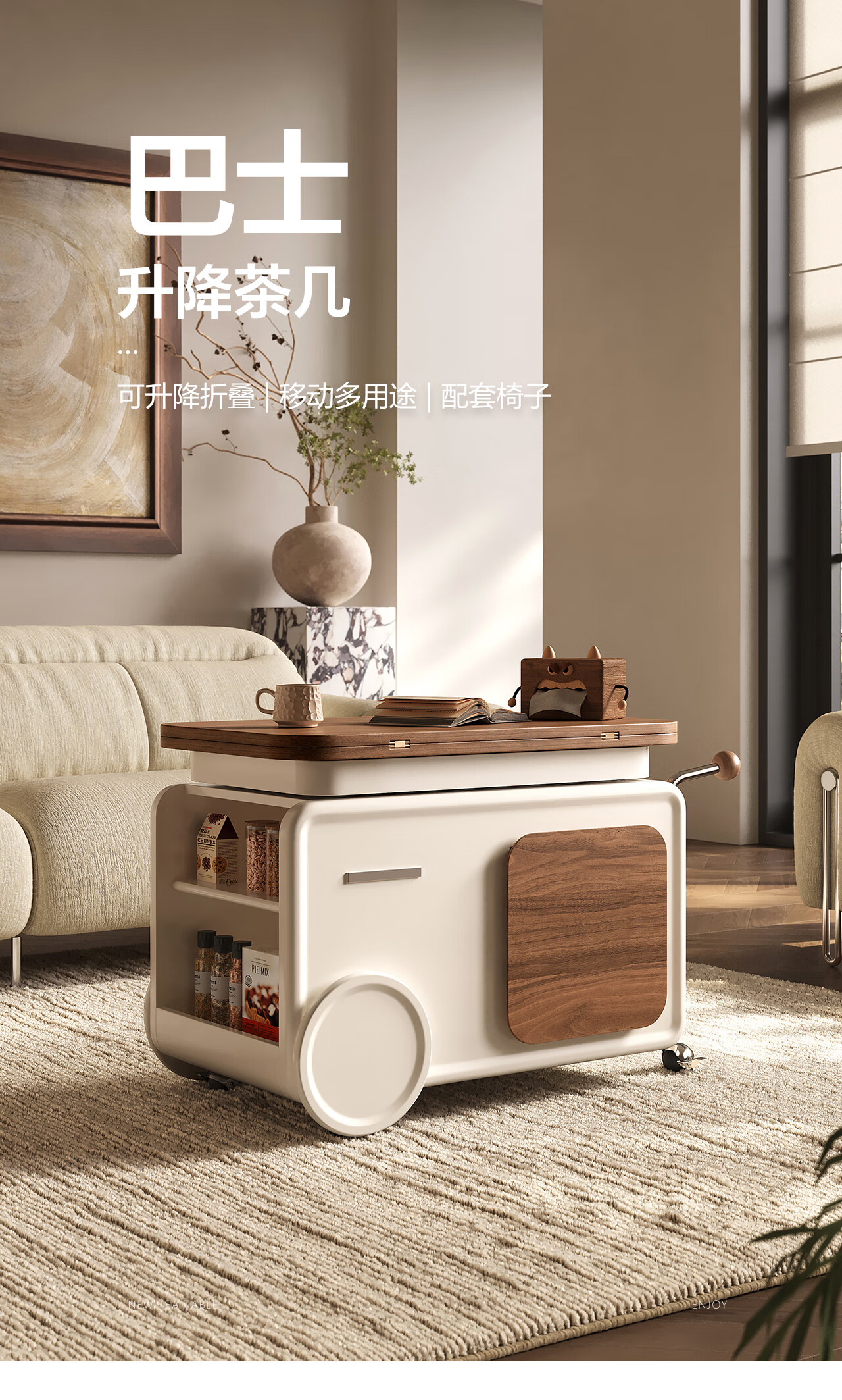 全慕(QUANMU)客厅茶几沙发边侧柜可移动升降折叠小户型实木2025年新款创意边几 巴士边几【折叠款-温润胡桃色】35天发货
