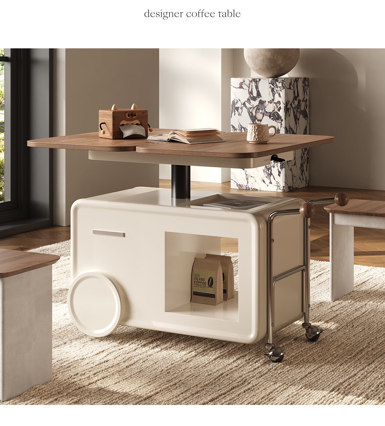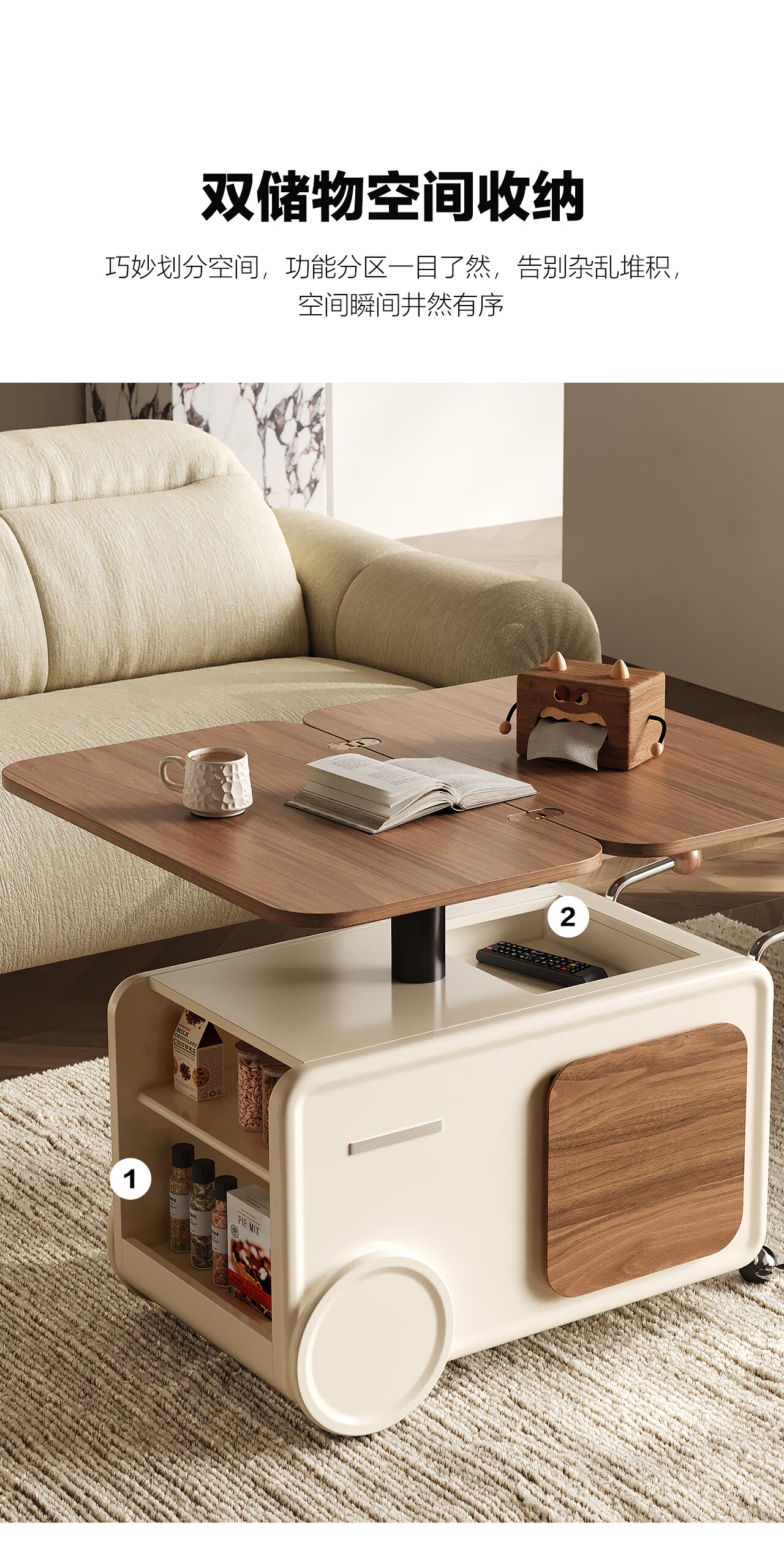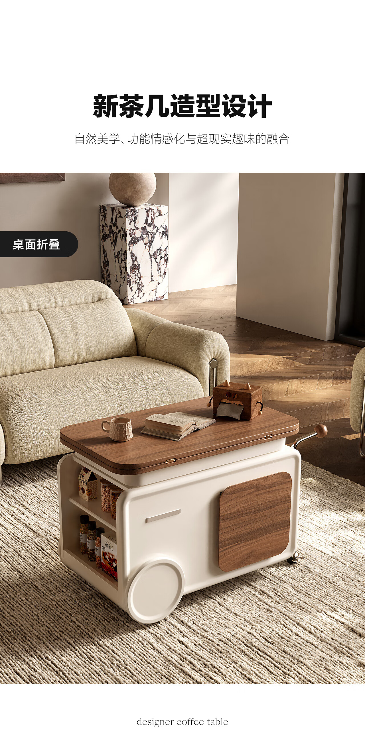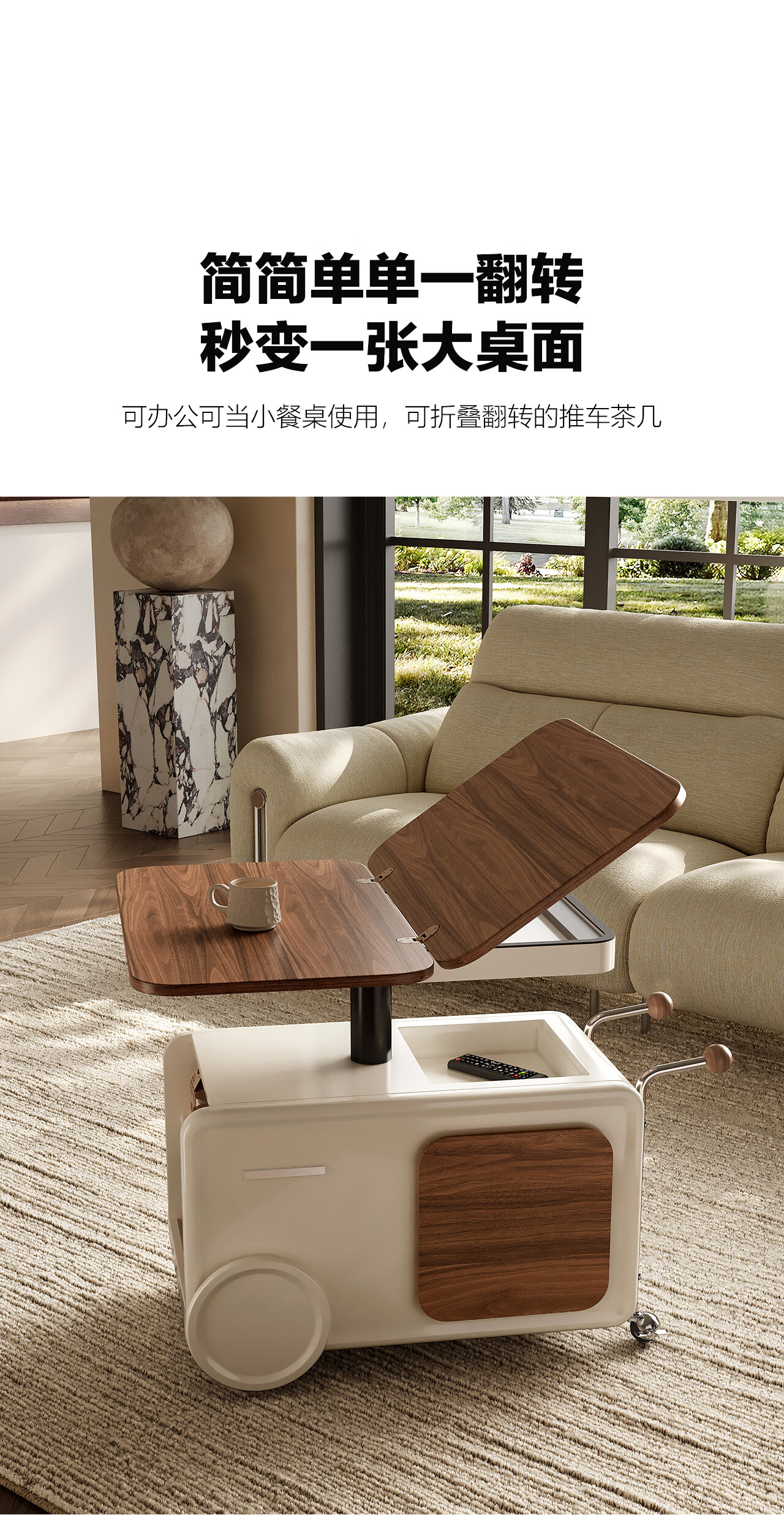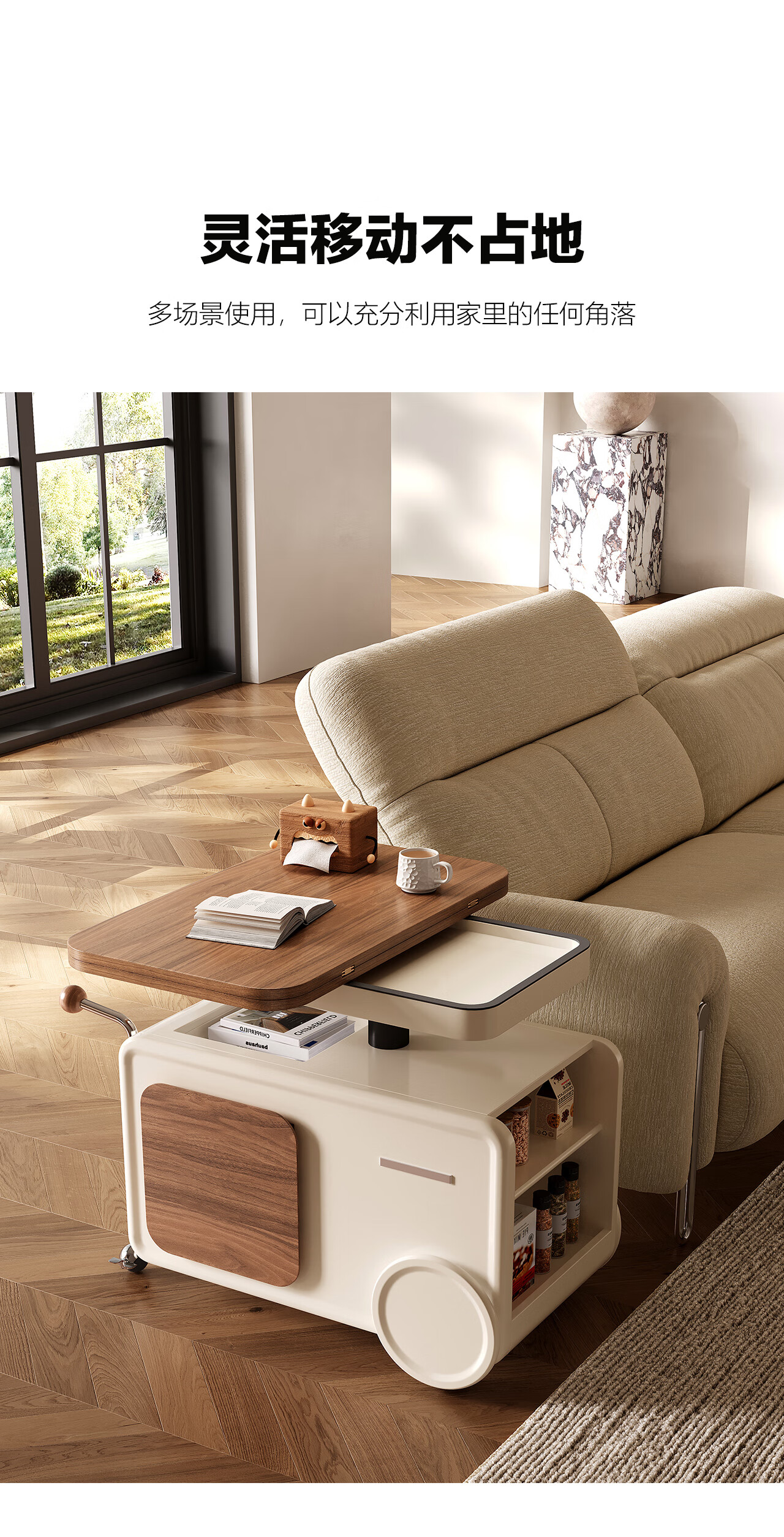 全慕(QUANMU)客厅茶几沙发边侧柜可移动升降折叠小户型实木2025年新款创意边几 巴士边几【折叠款-温润胡桃色】35天发货