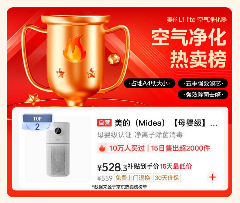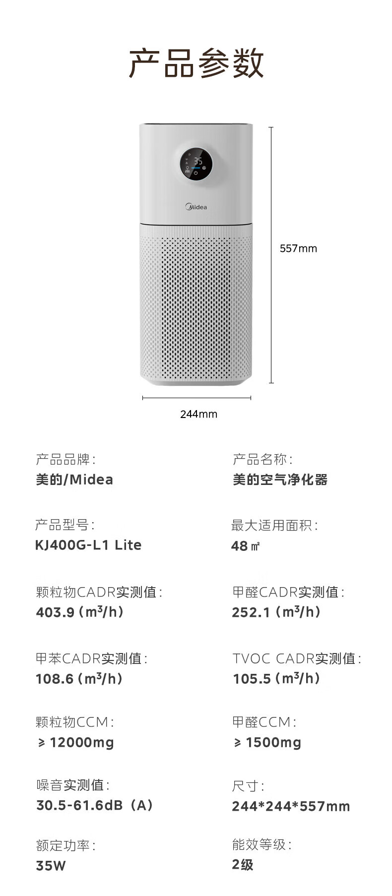 美的(Midea)【母婴级】空气净化器鼻炎家用除甲醛除烟味异味过敏原空气净化机森林家L1 Lite