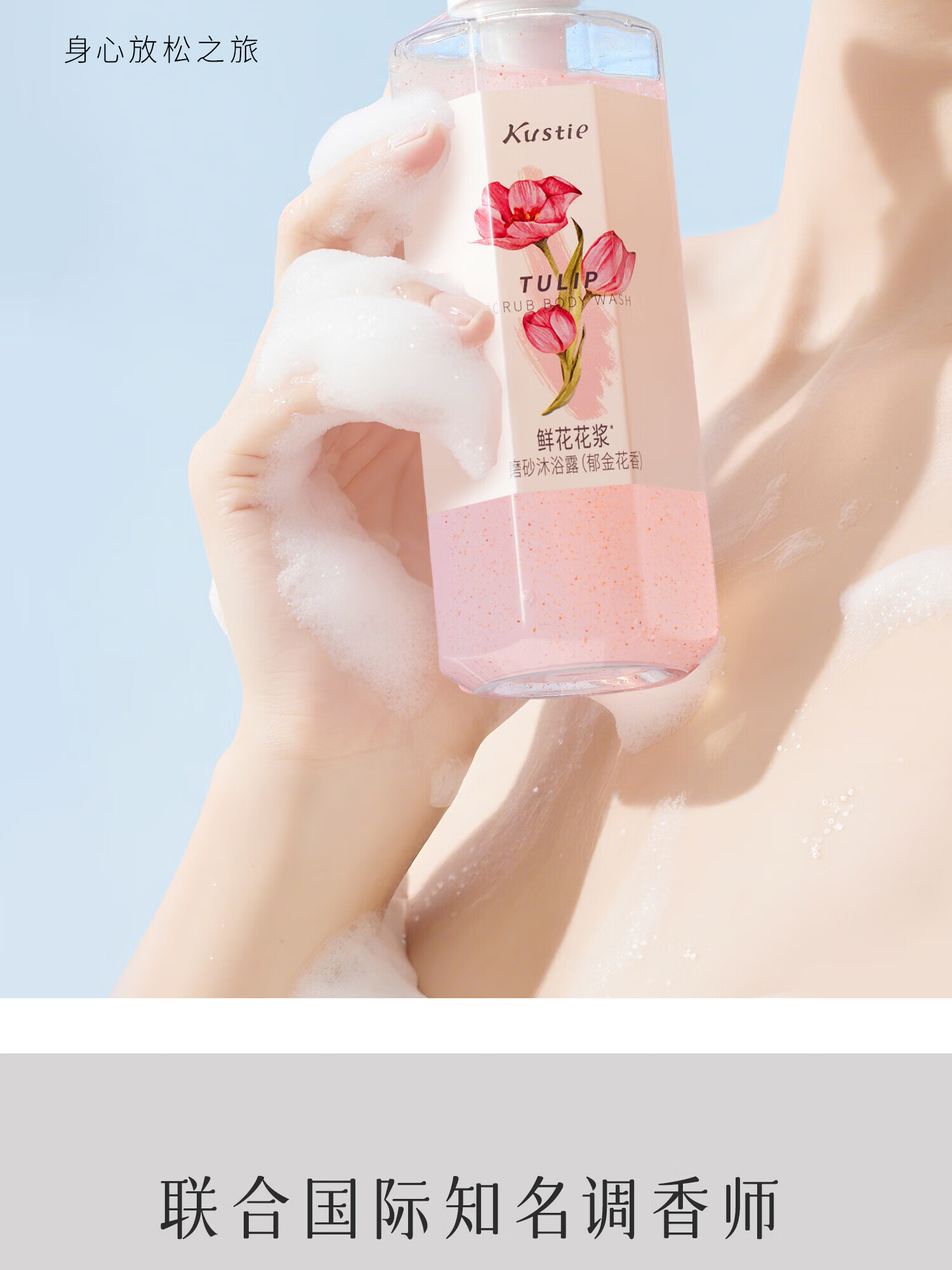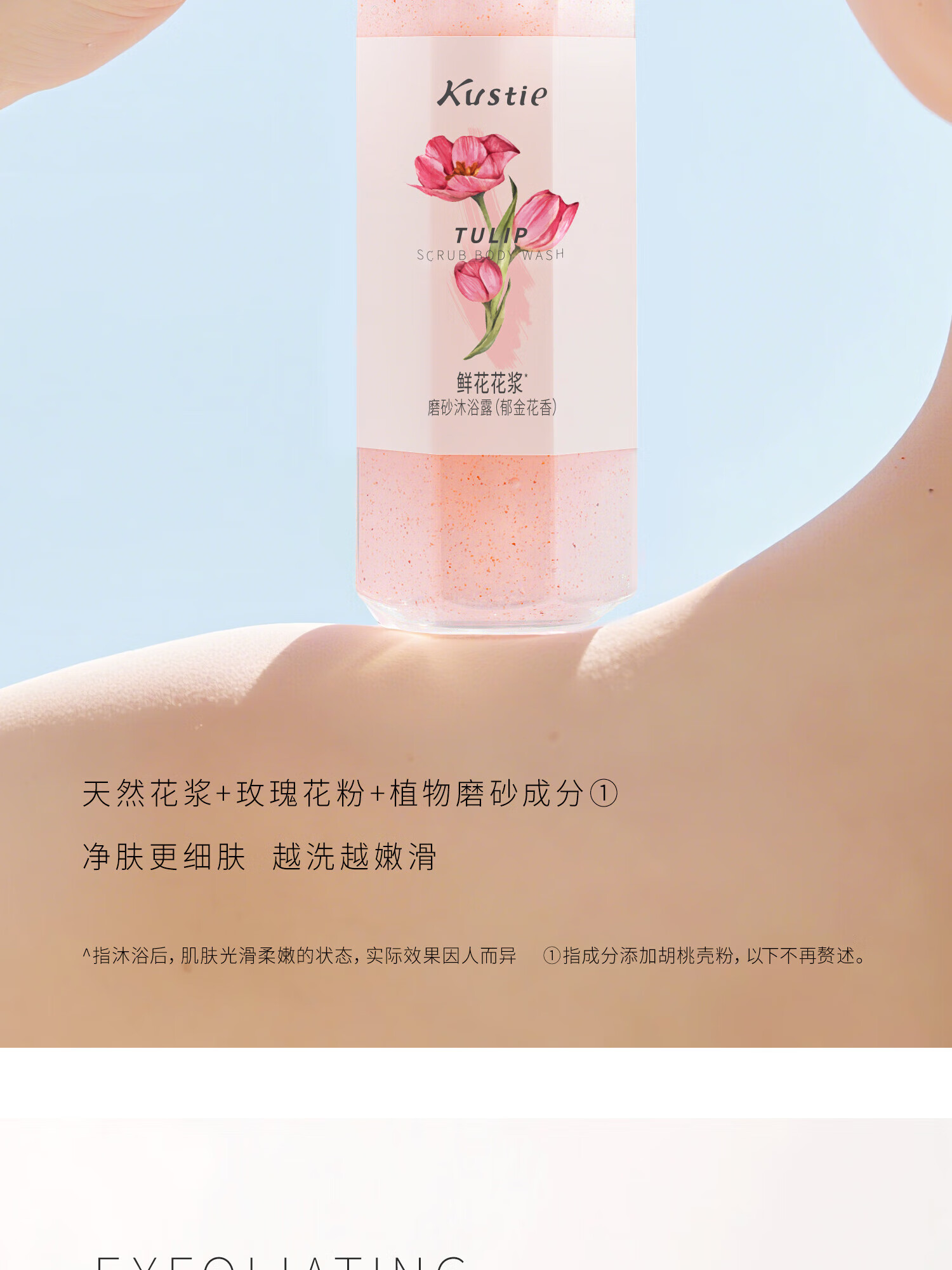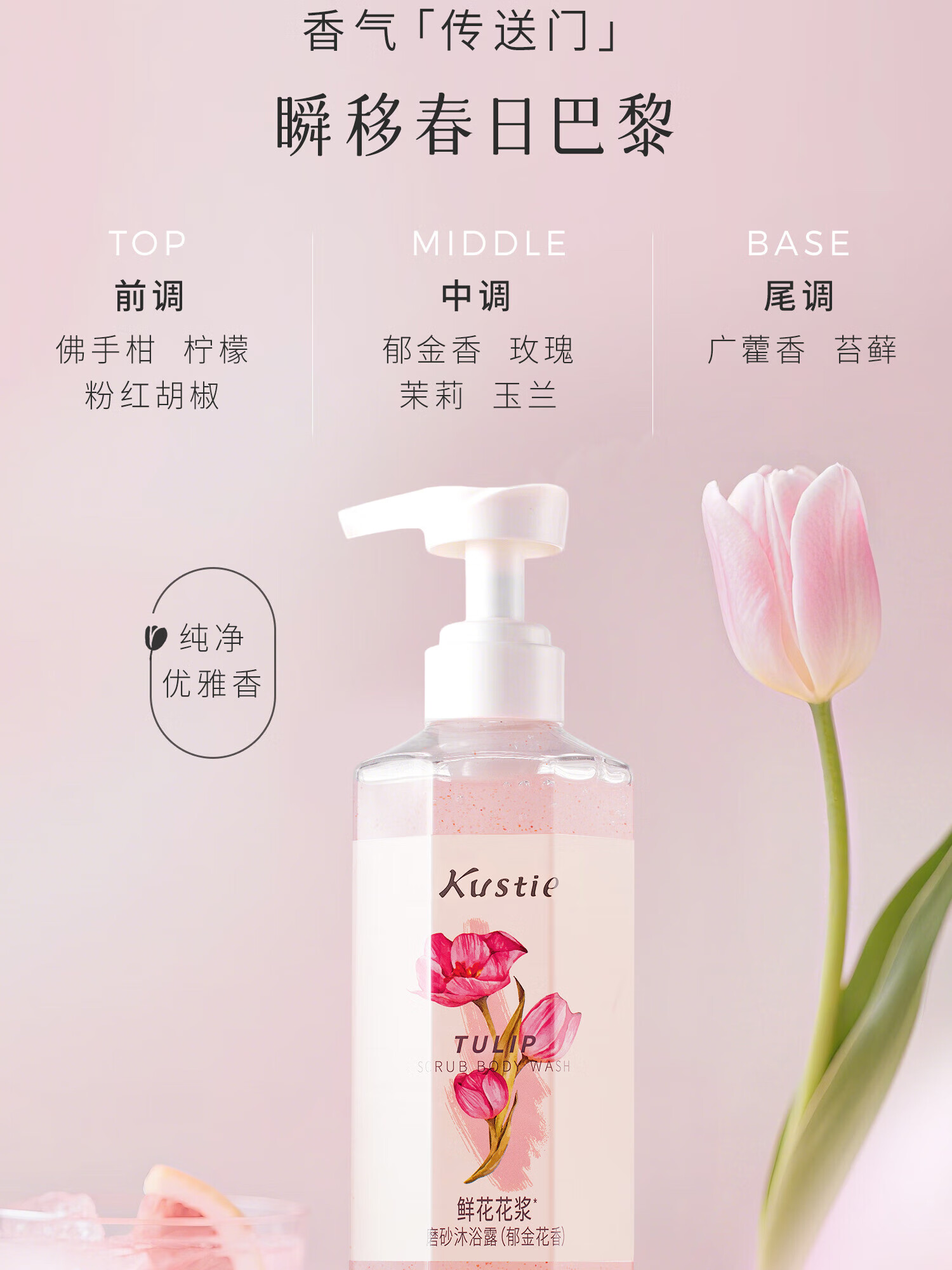 蔻斯汀(Kustie)郁金香花浆沐浴露磨砂膏去角质清洁二合一滋润香氛沫浴液春夏 【轻磨焕亮】郁金花香 磨砂沐浴露*450g
