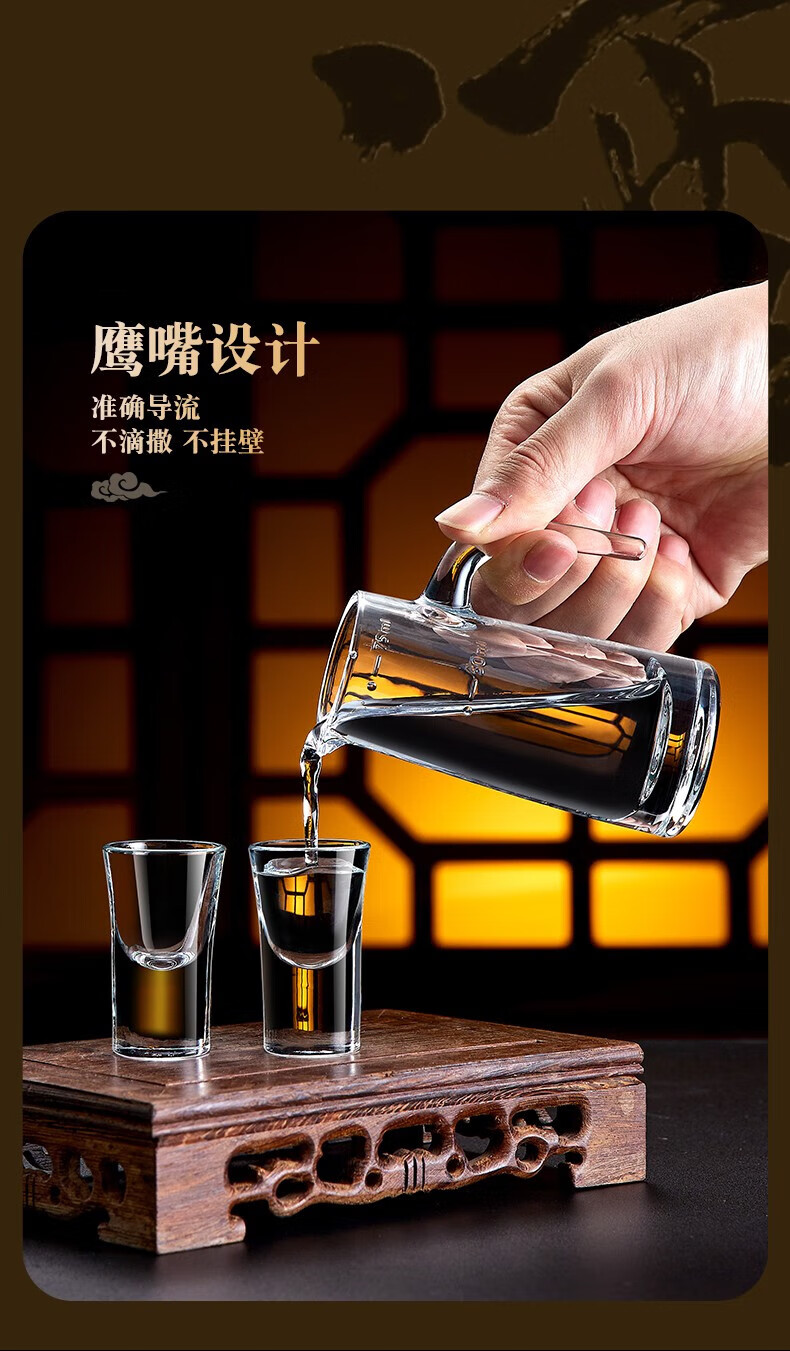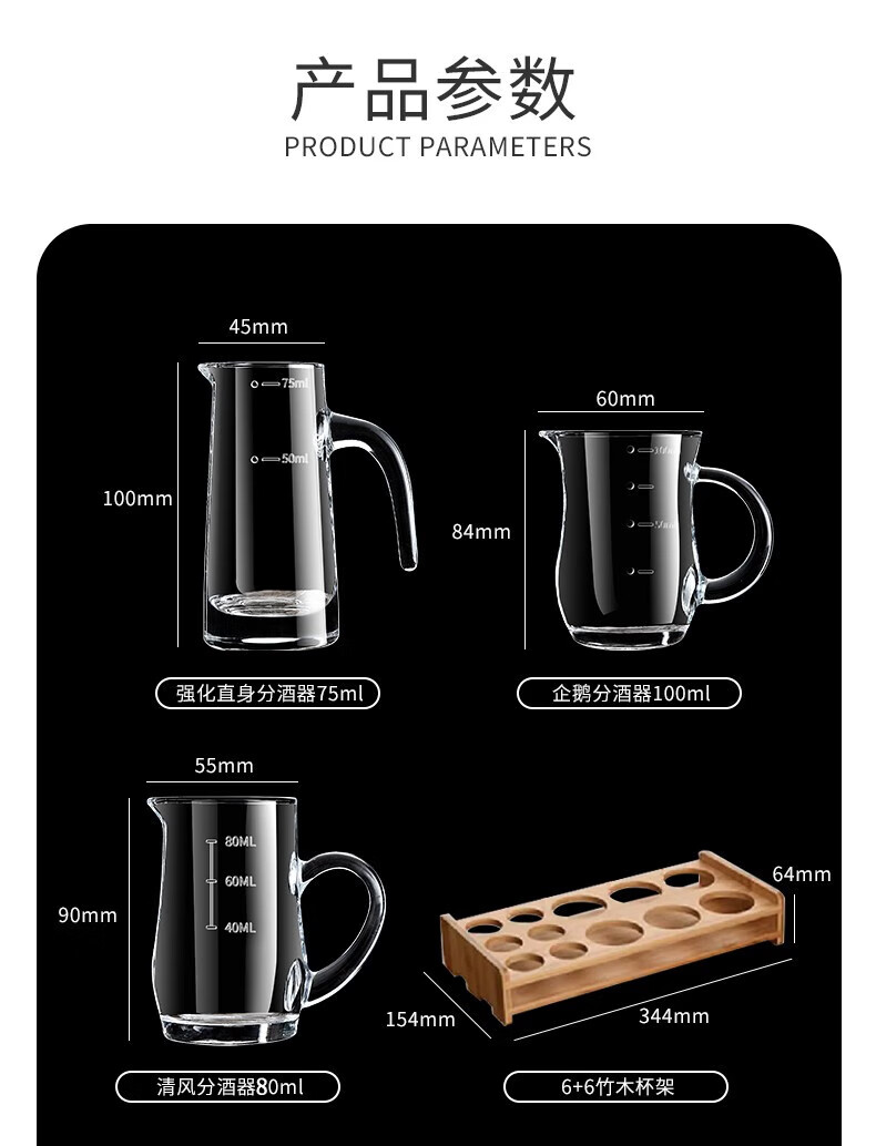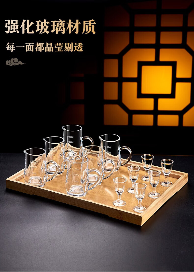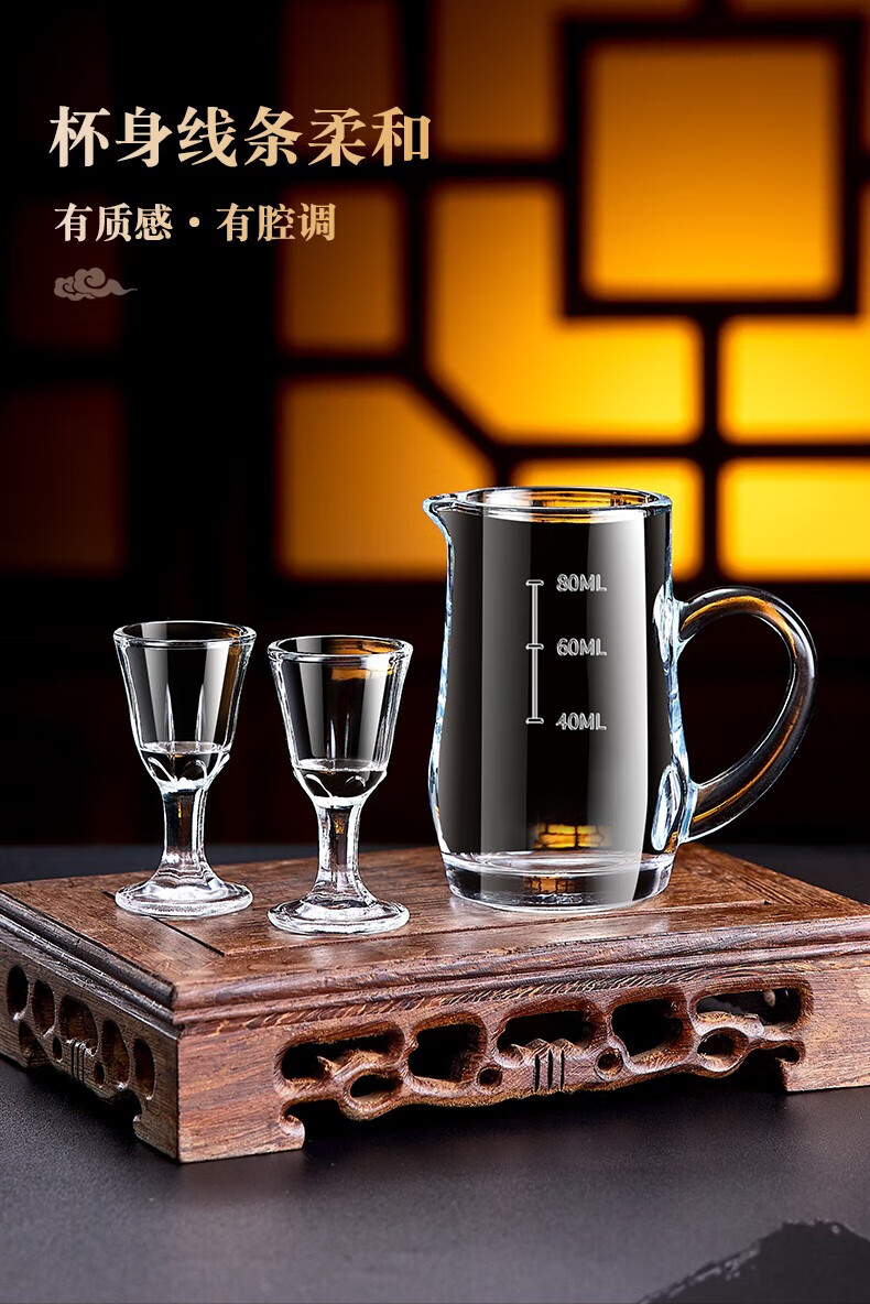 青苹果白酒杯分酒器一口杯高脚小酒杯刻度分酒壶玻璃套装 清风分酒器6壶6杯【强化加厚款】