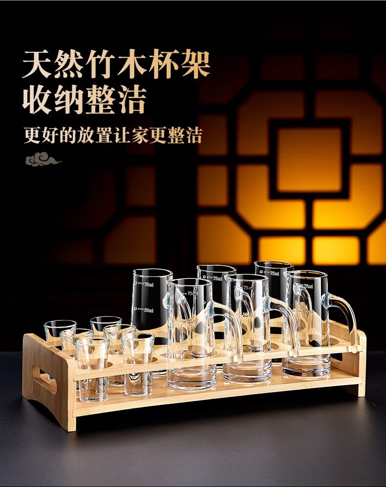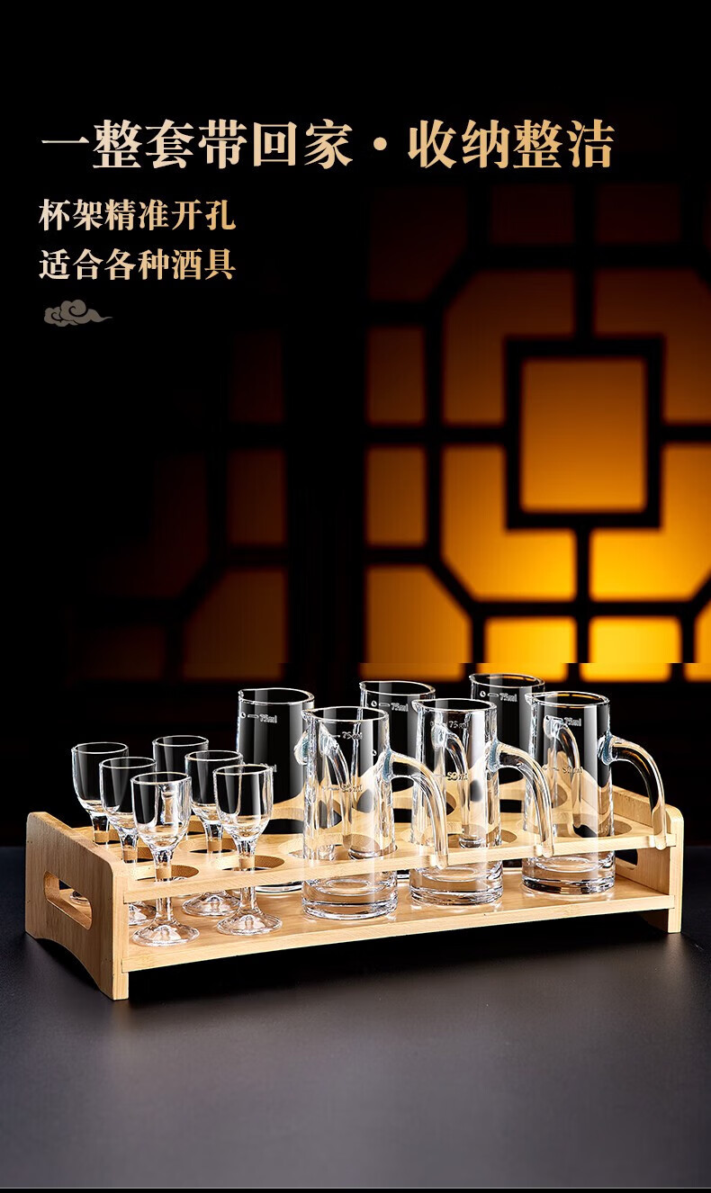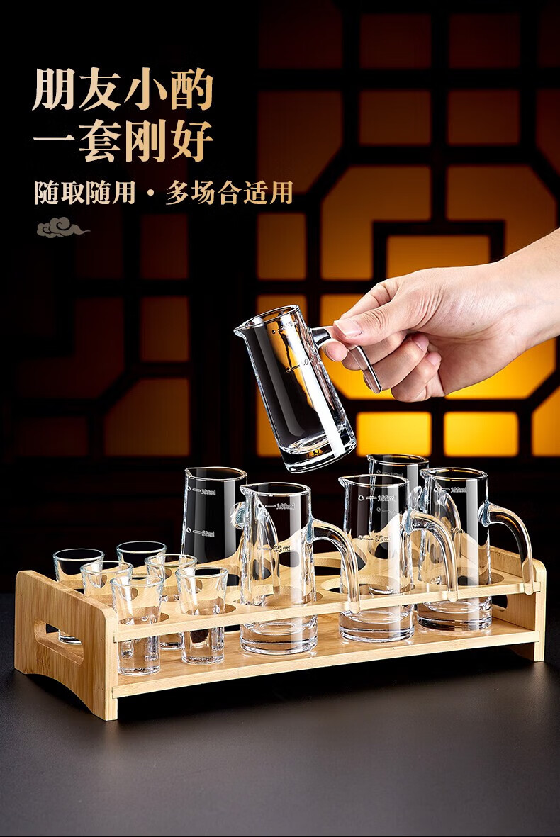 青苹果白酒杯分酒器一口杯高脚小酒杯刻度分酒壶玻璃套装 清风分酒器6壶6杯【强化加厚款】