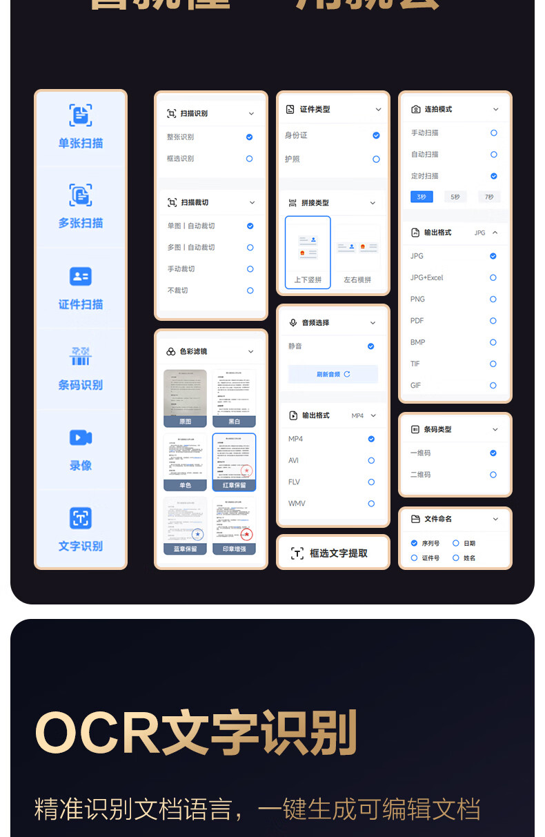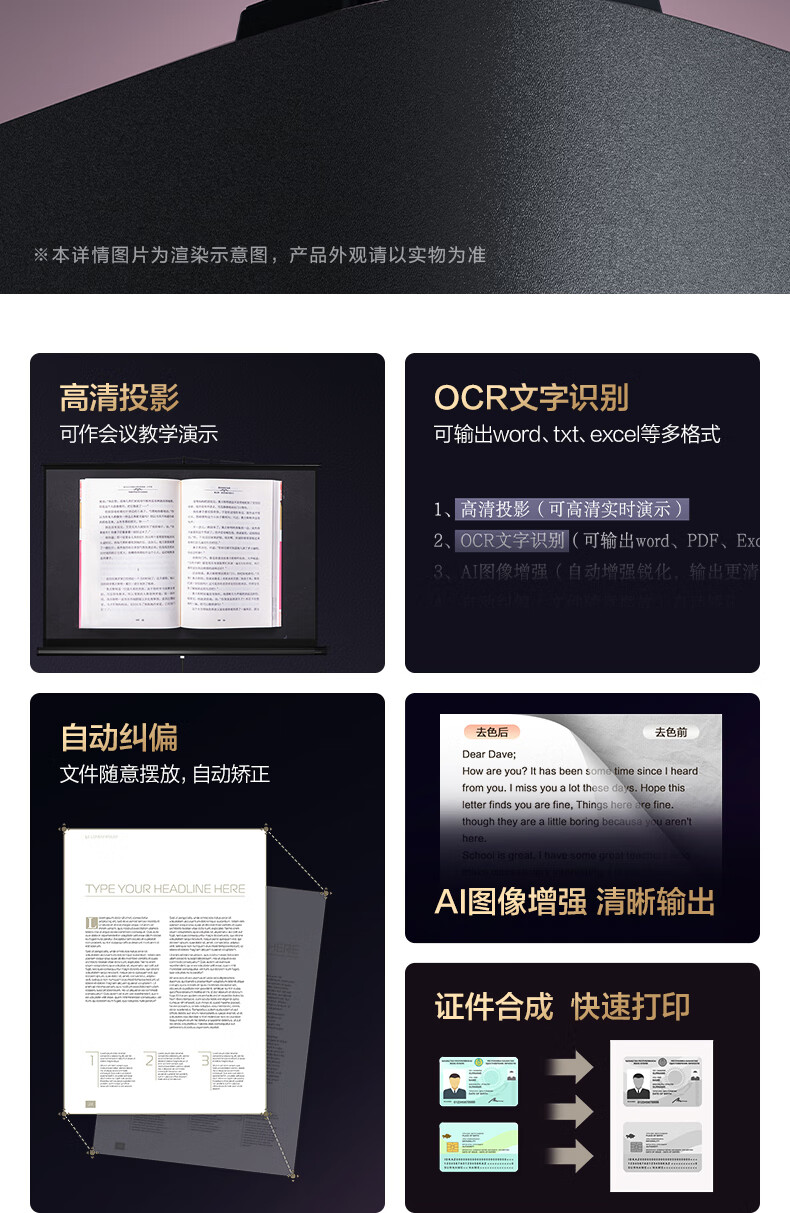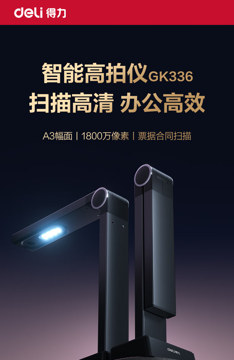 得力扫描仪 1800万像素高拍仪 照片办公文件高速自动连续 OCR文字识别AI增强可录视频 A3软底GK336