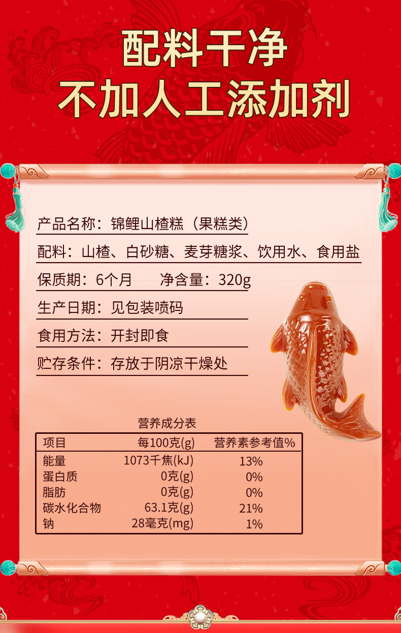 公社联盟0添加剂锦鲤山楂糕320g年年有鱼山楂鱼零食年货礼盒送礼 锦鲤山楂糕320g*2盒