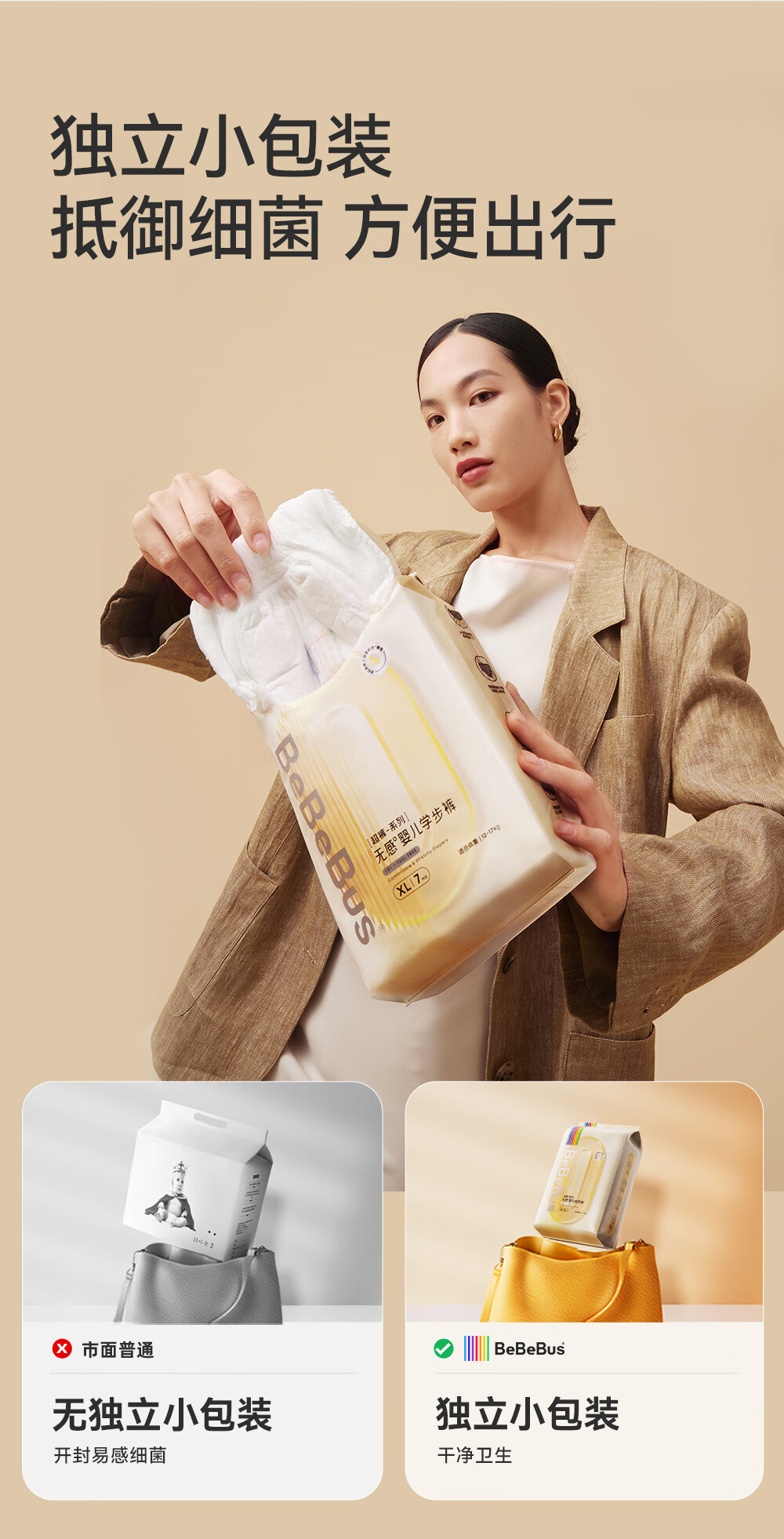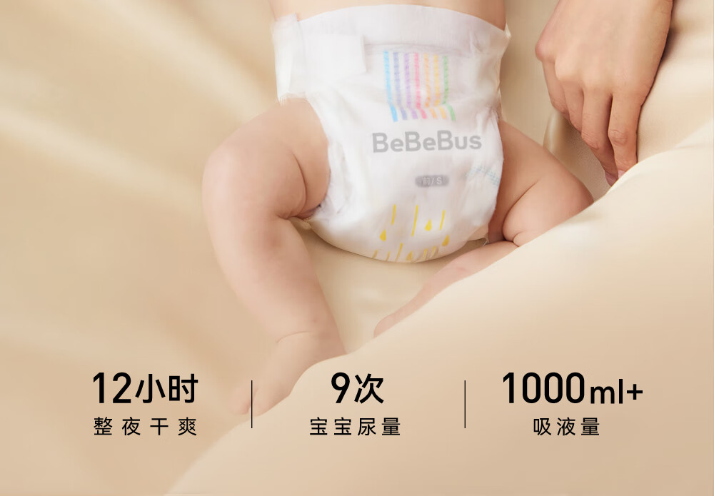bebebus超裤裸感尿不湿M4片(6-11kg)超薄透气大吸量试用装
