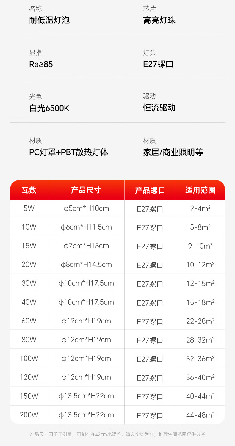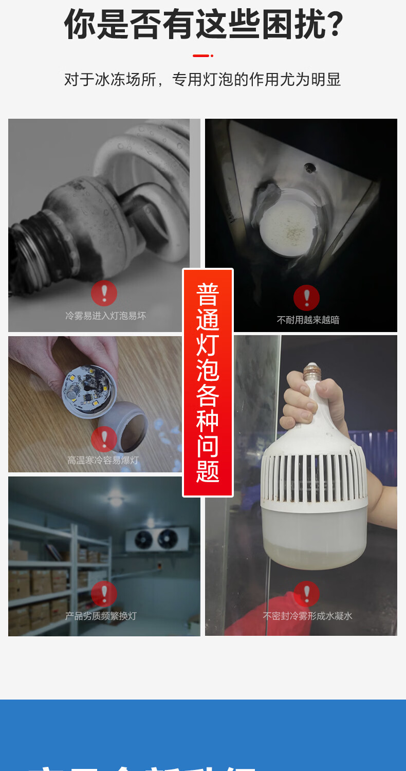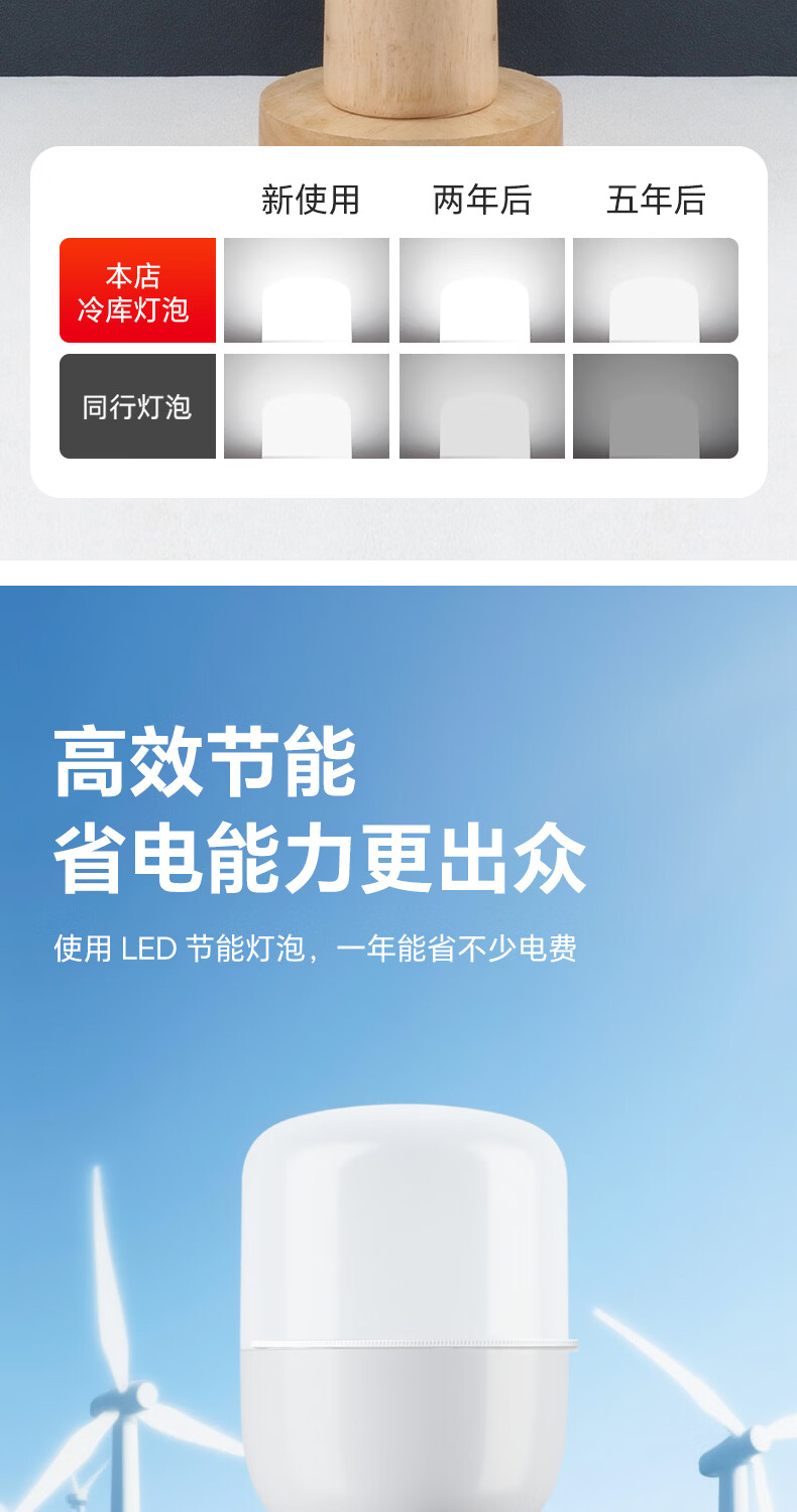 振牛冷库专用led灯泡大功率节能灯e27螺口超亮工厂仓库防水防潮灯泡 5W-冷库专用 防水防潮+旗舰品质