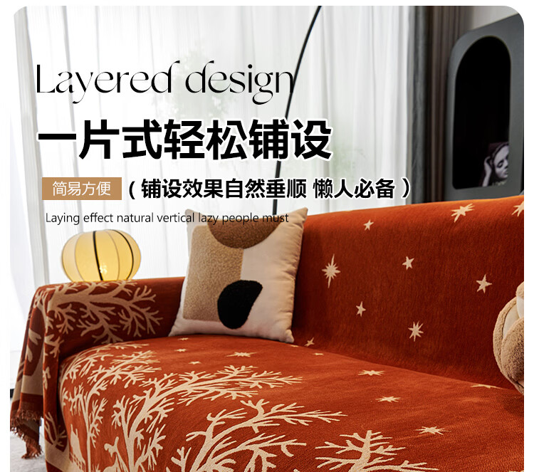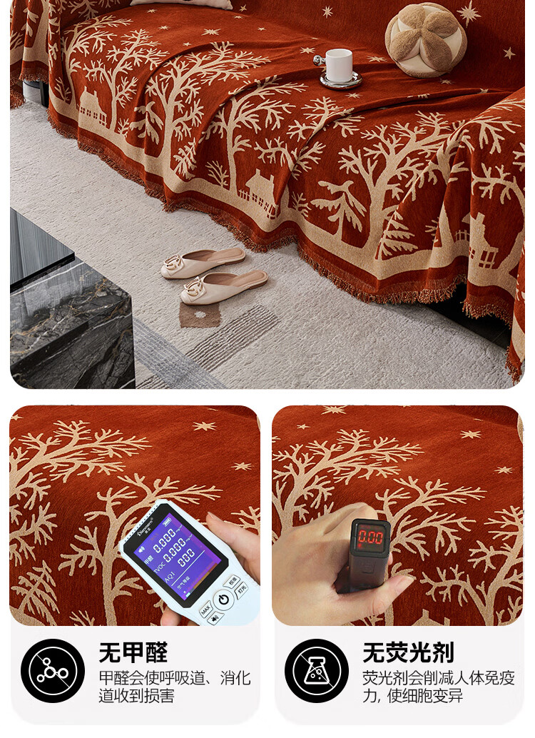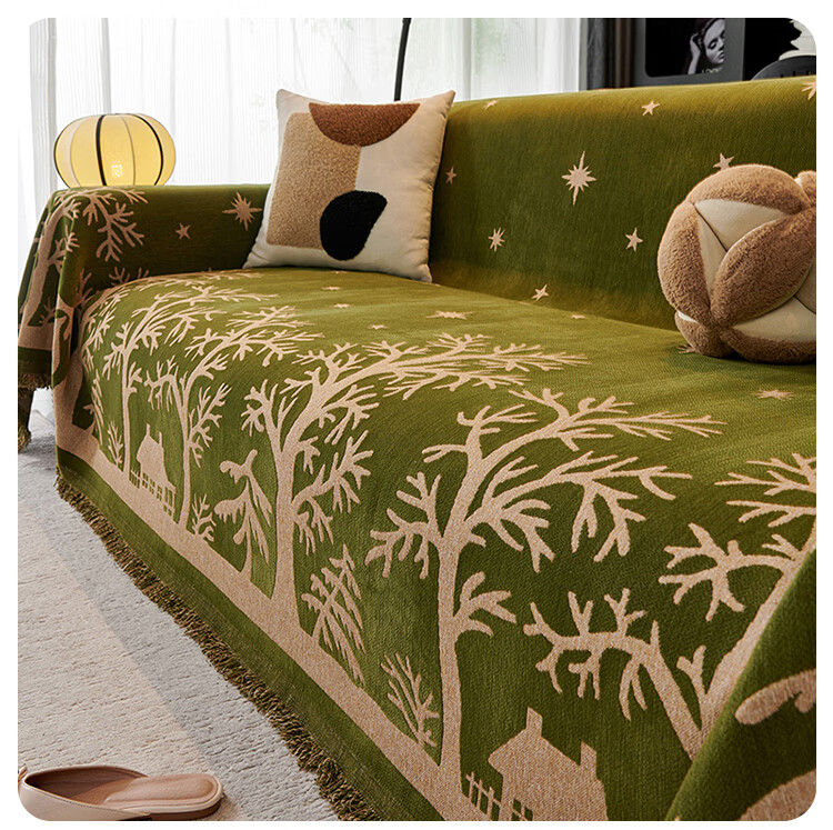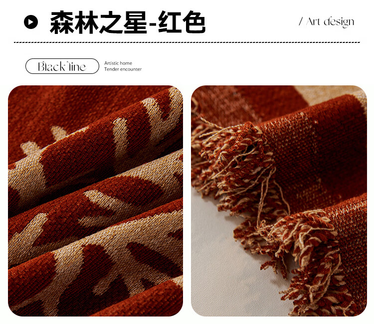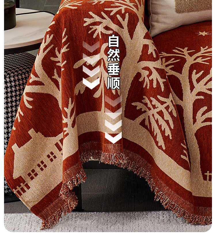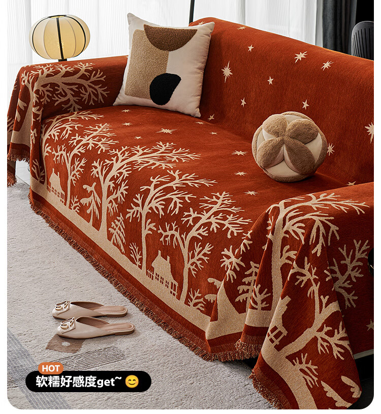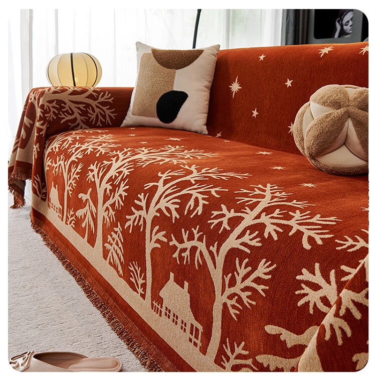 缔卓怡2026新款雪尼尔沙发盖布巾红色沙发毯子四季通用结婚沙发坐垫套 森林之星-红色 180cm*130cm (适用于单人位/脚踏)