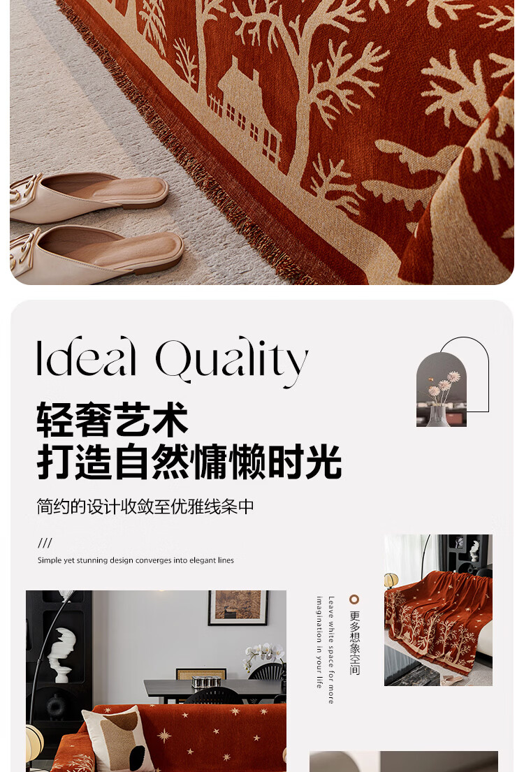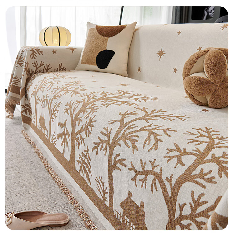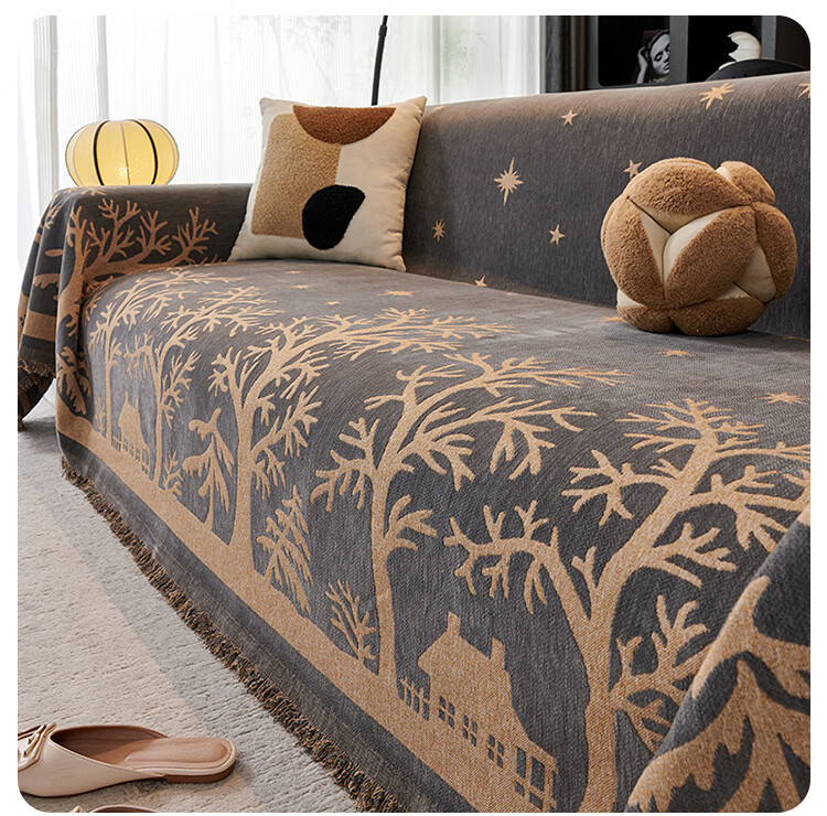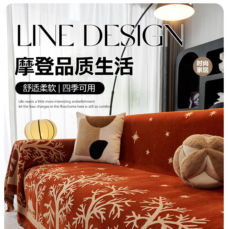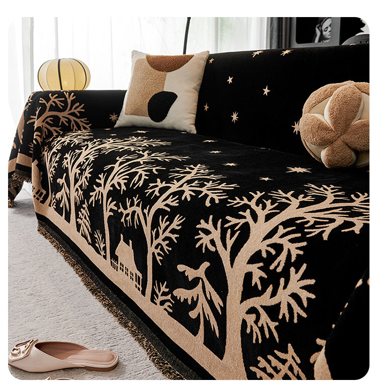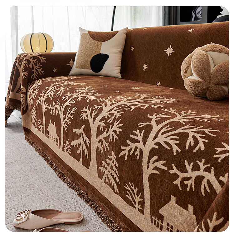 缔卓怡2026新款雪尼尔沙发盖布巾红色沙发毯子四季通用结婚沙发坐垫套 森林之星-红色 180cm*130cm (适用于单人位/脚踏)